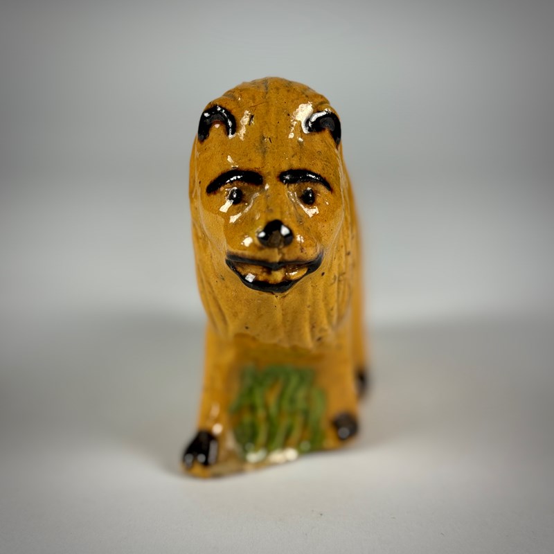 Late 19th Century Glazed Stoneware Lion Money Box, Excellent condition. Engaging, fun pose and expression. France, Circa 1890.
