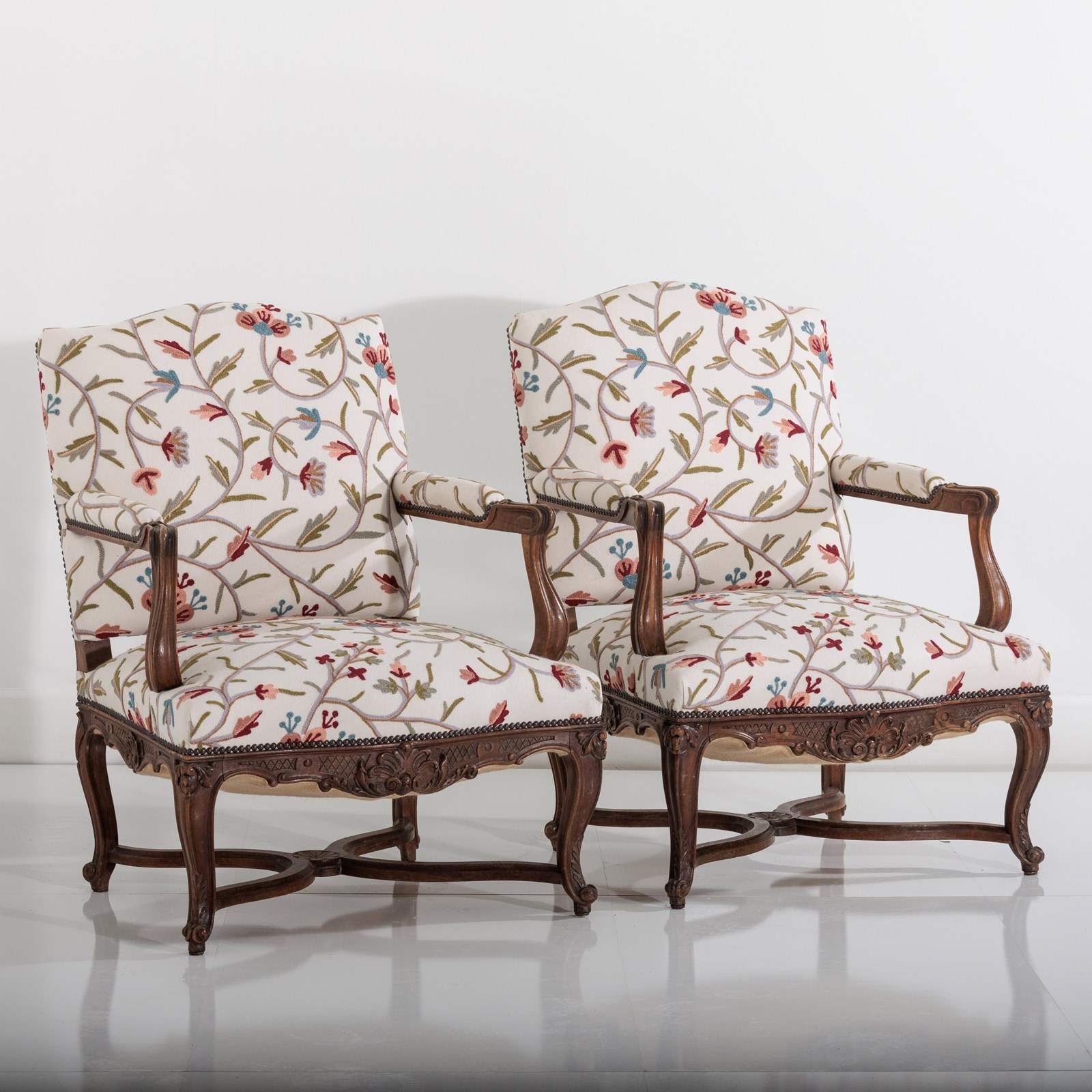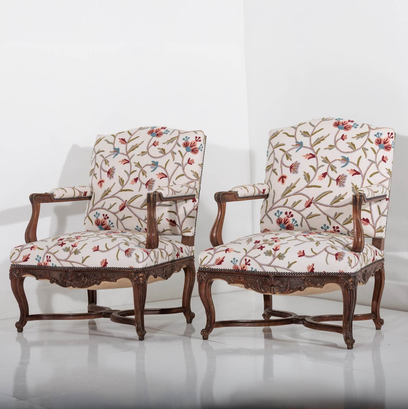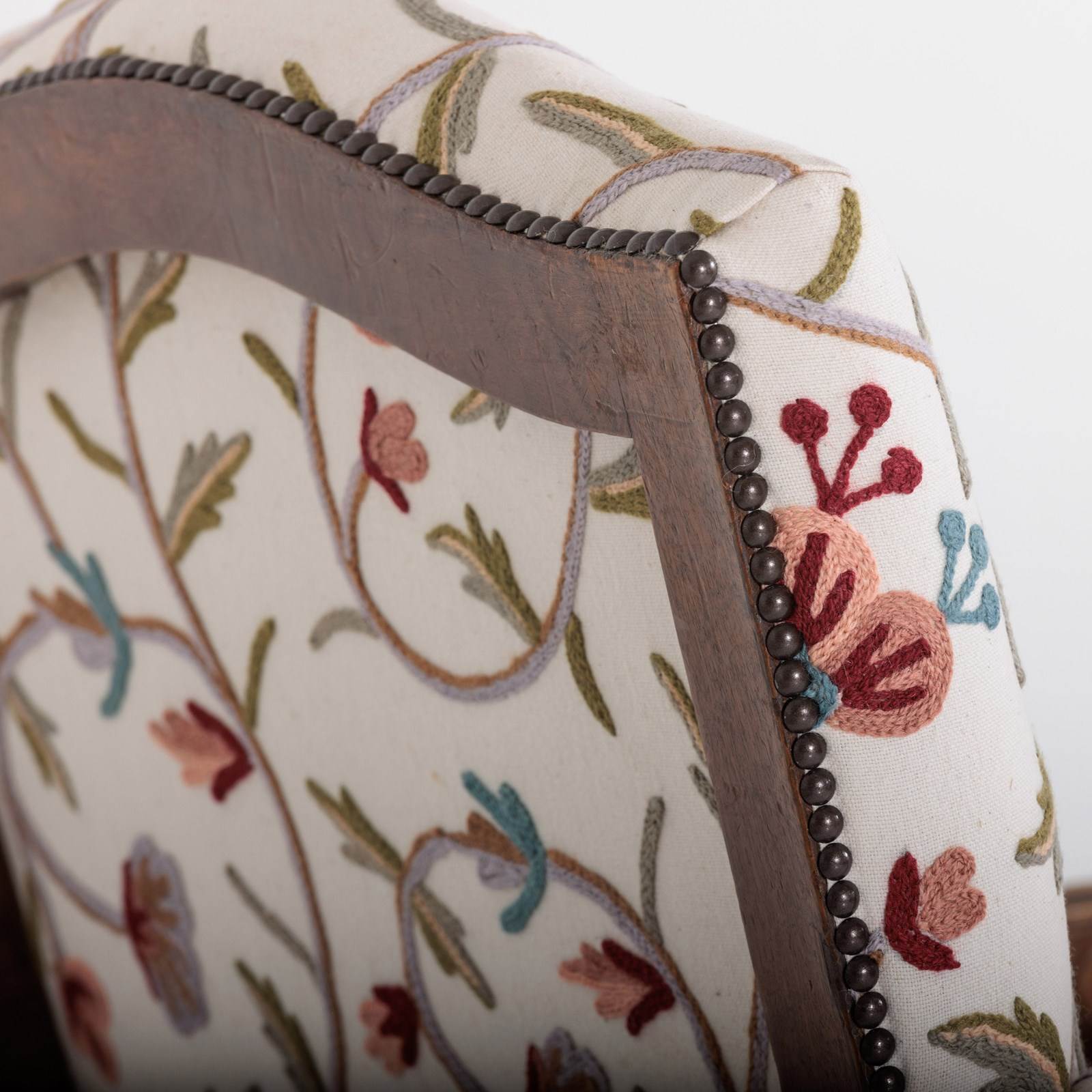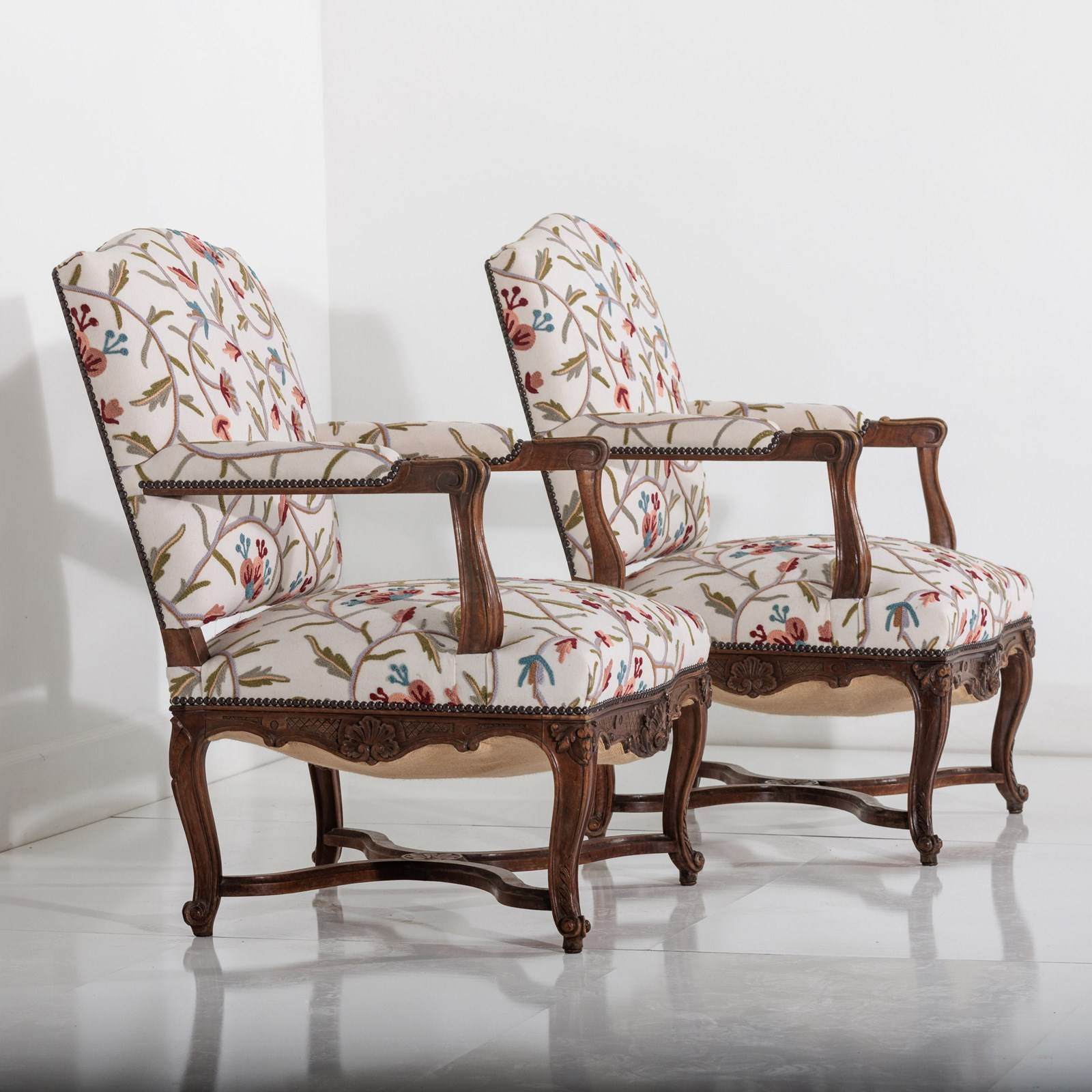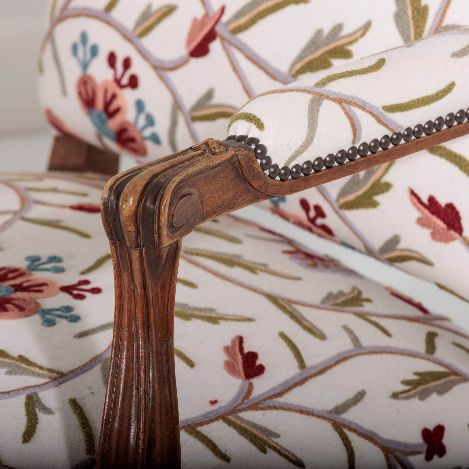 Pair Of 19Th Century Open Armchairs In Vintage Crewel Fabric