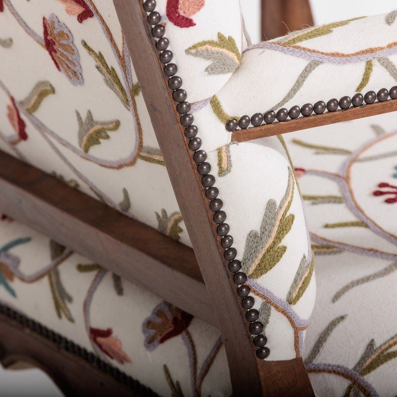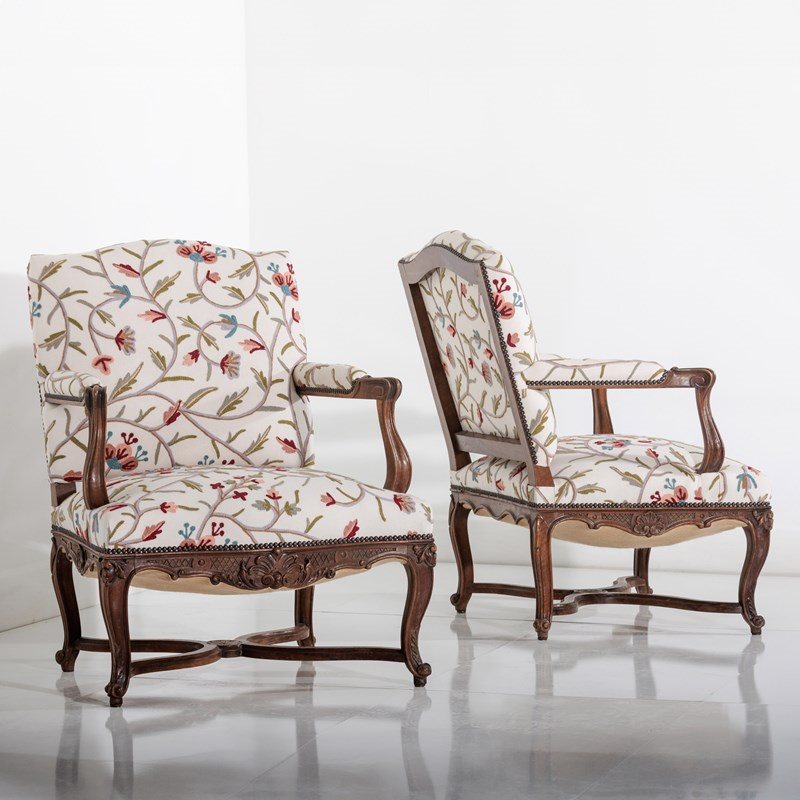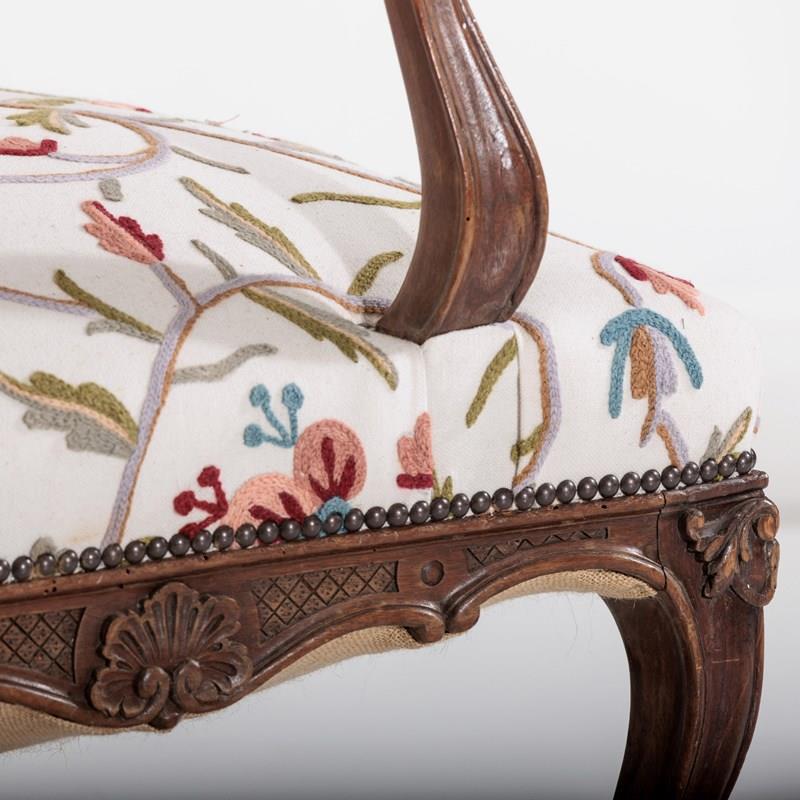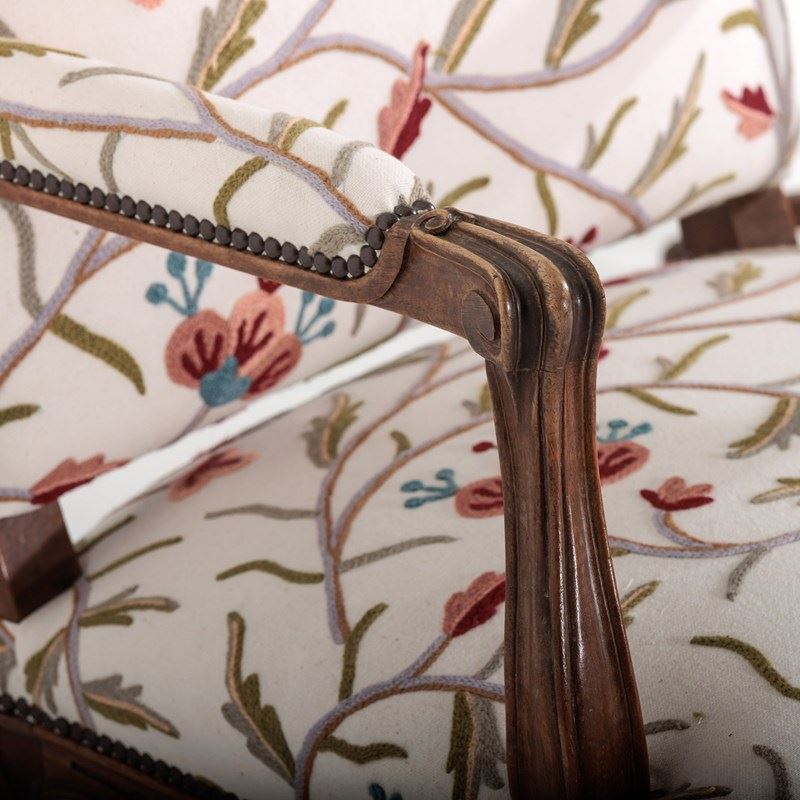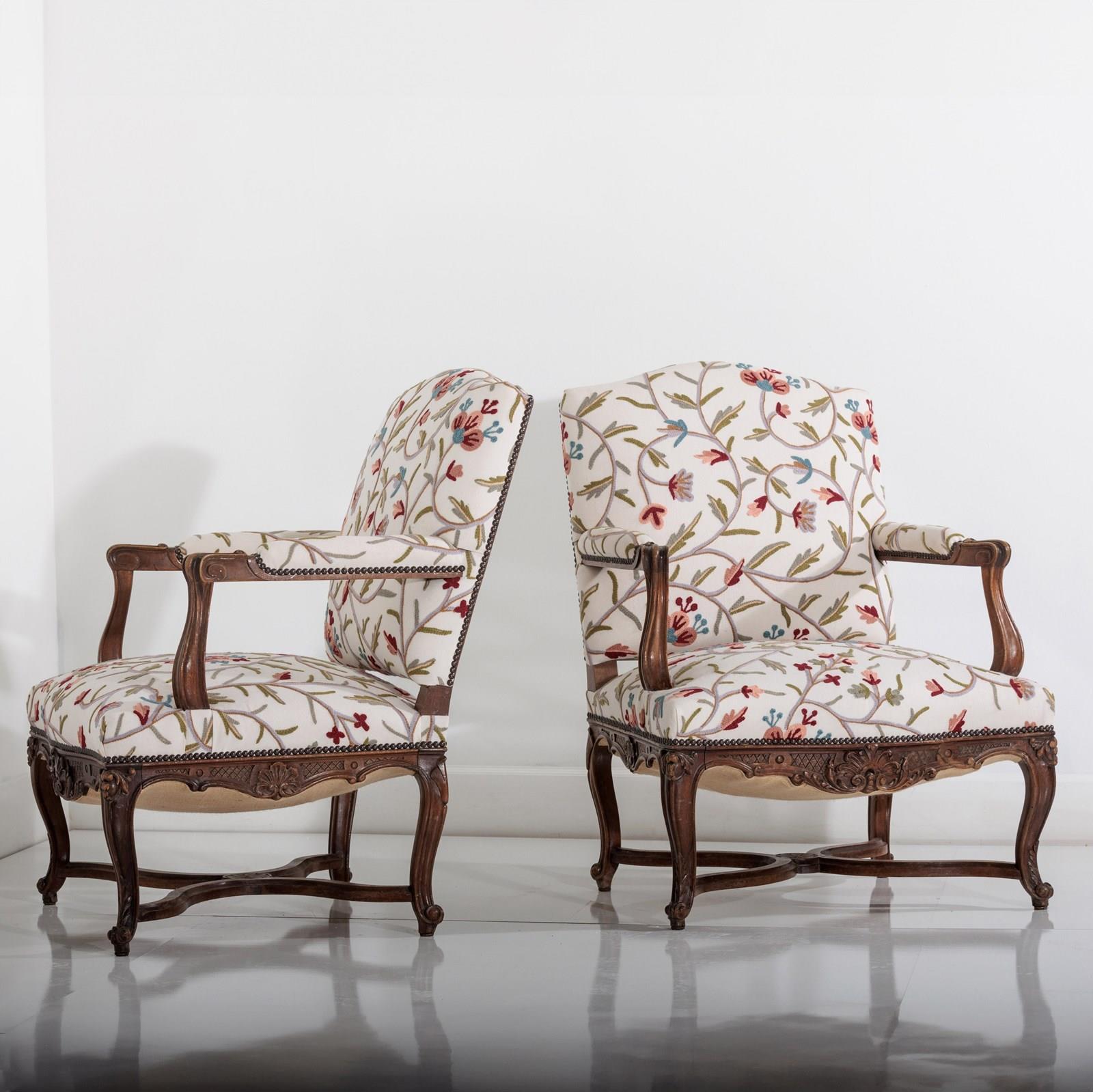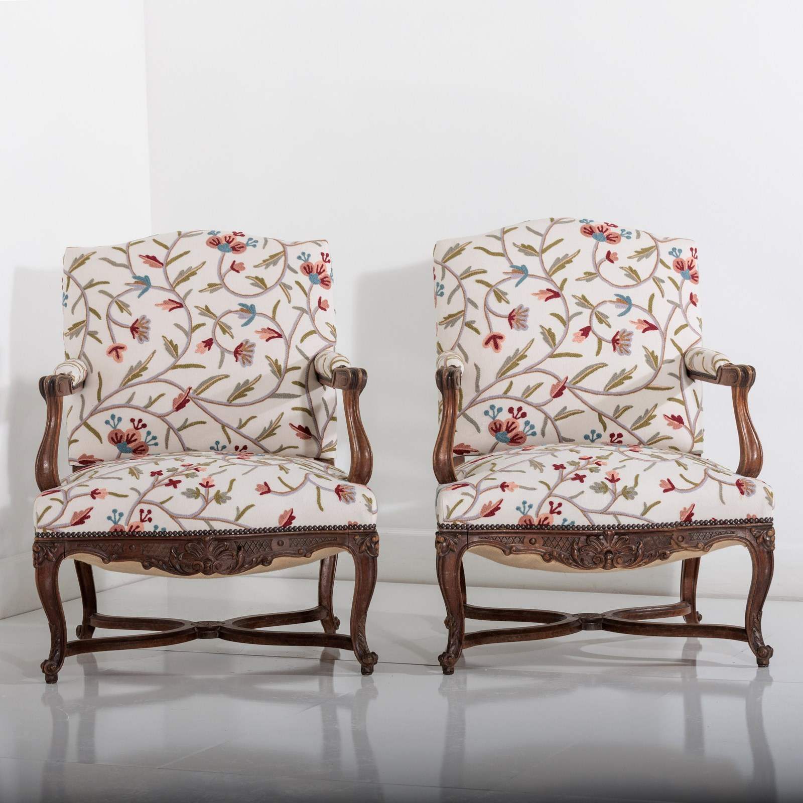 Pair Of 19Th Century Open Armchairs In Vintage Crewel Fabric