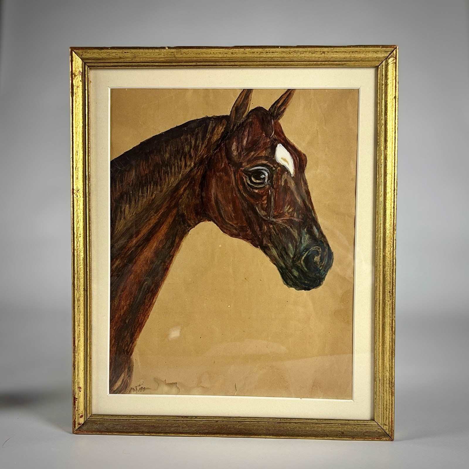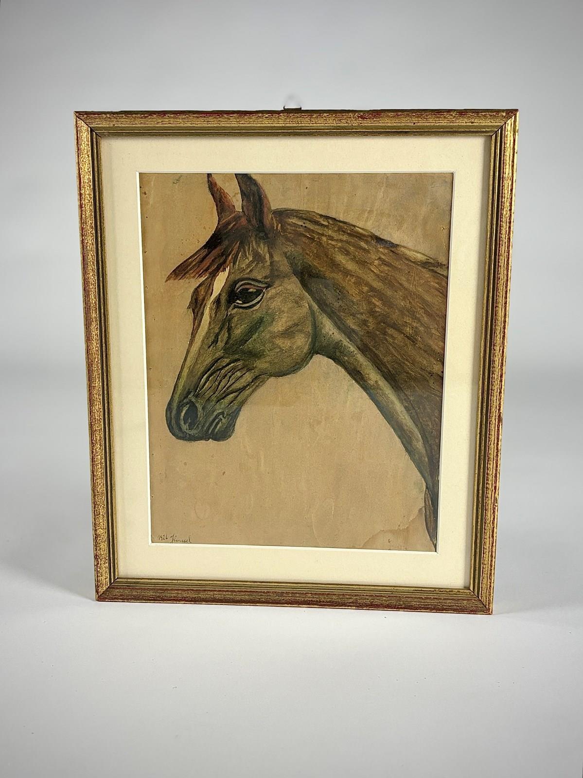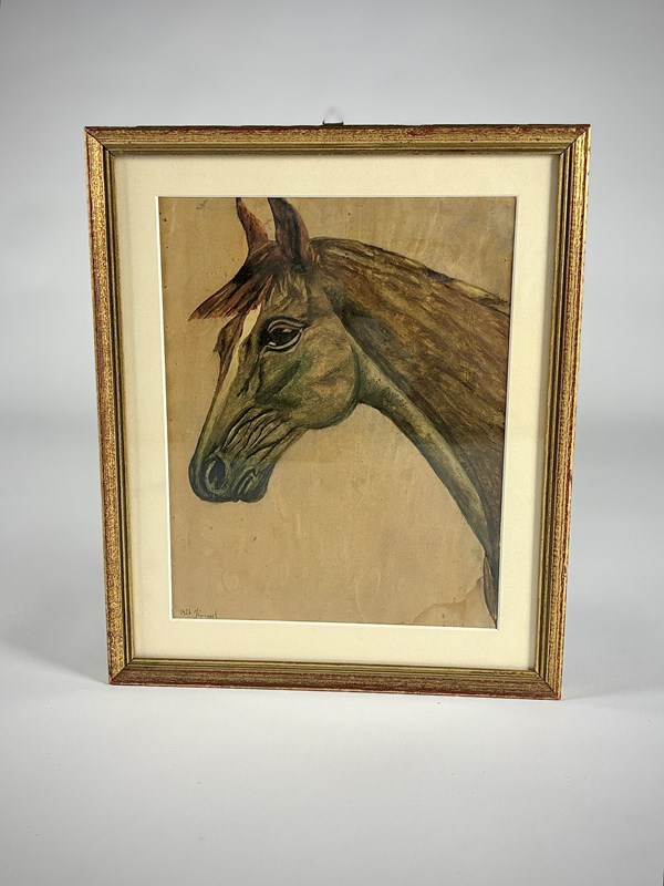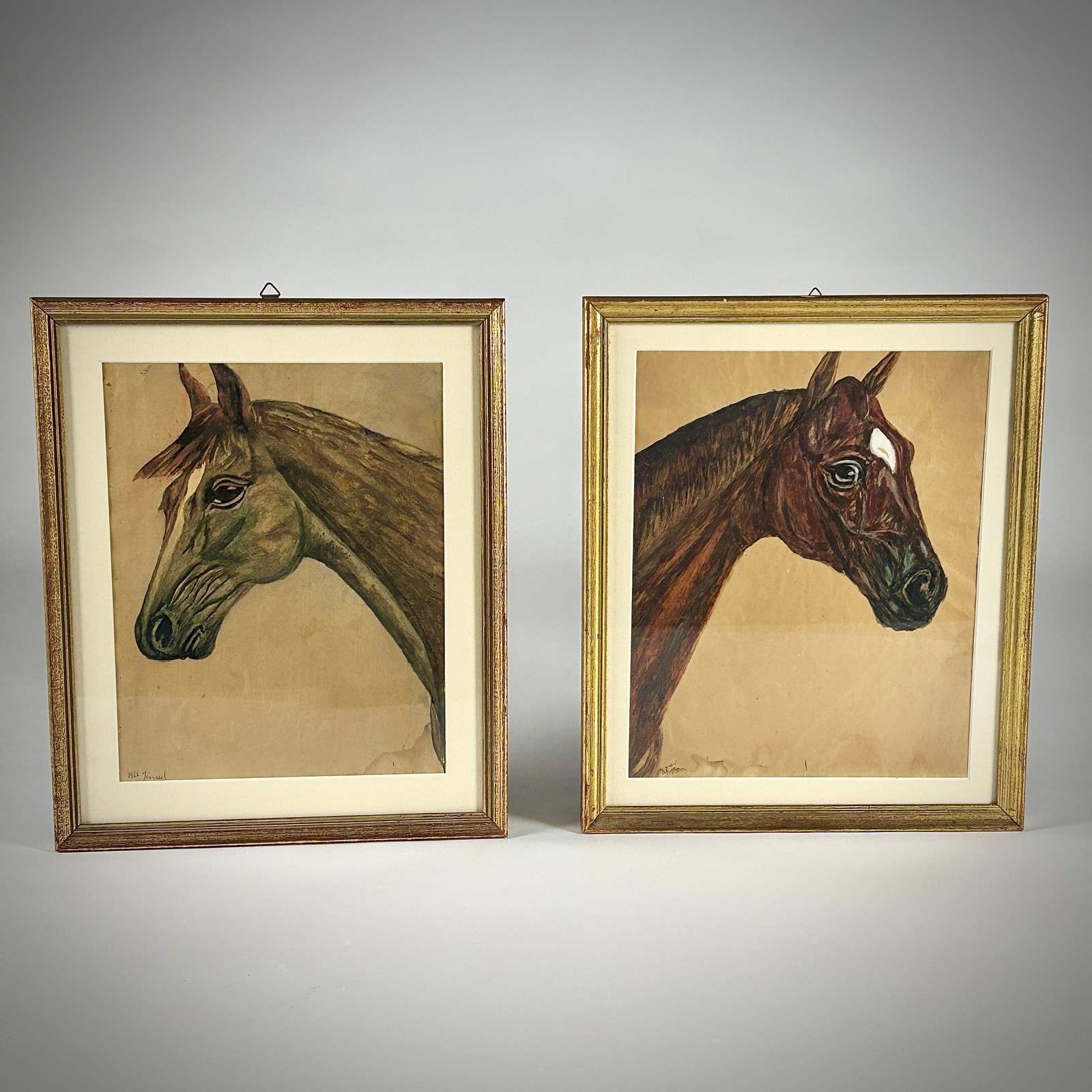 Pair of Early 20th Century Horse portraits on Paper. Signed J Roussel and dated 1926. Housed in Giltwood Frames. Some Light foxing to the Paper and minor smudging of one signature. France, Circa 1926.