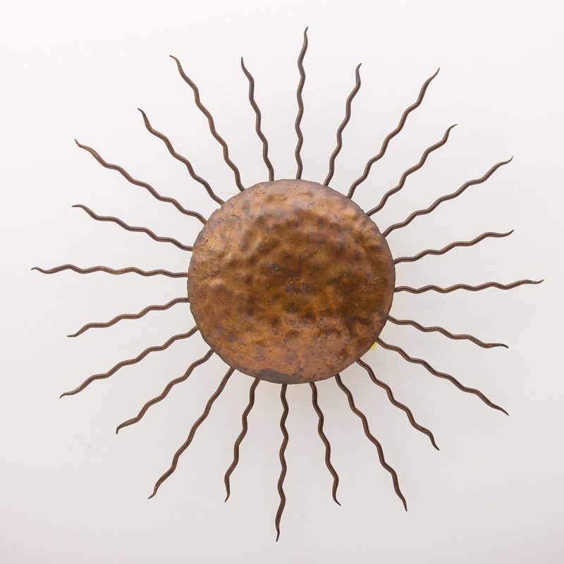 Sunburst applique wall or ceiling light sconce. Gilt Metal. Rewired and PAT tested. Spain, Circa 1960.