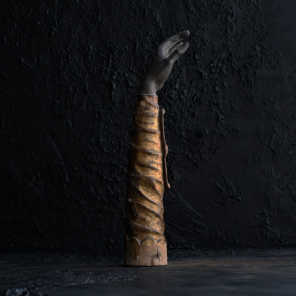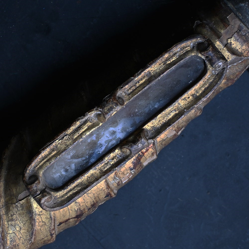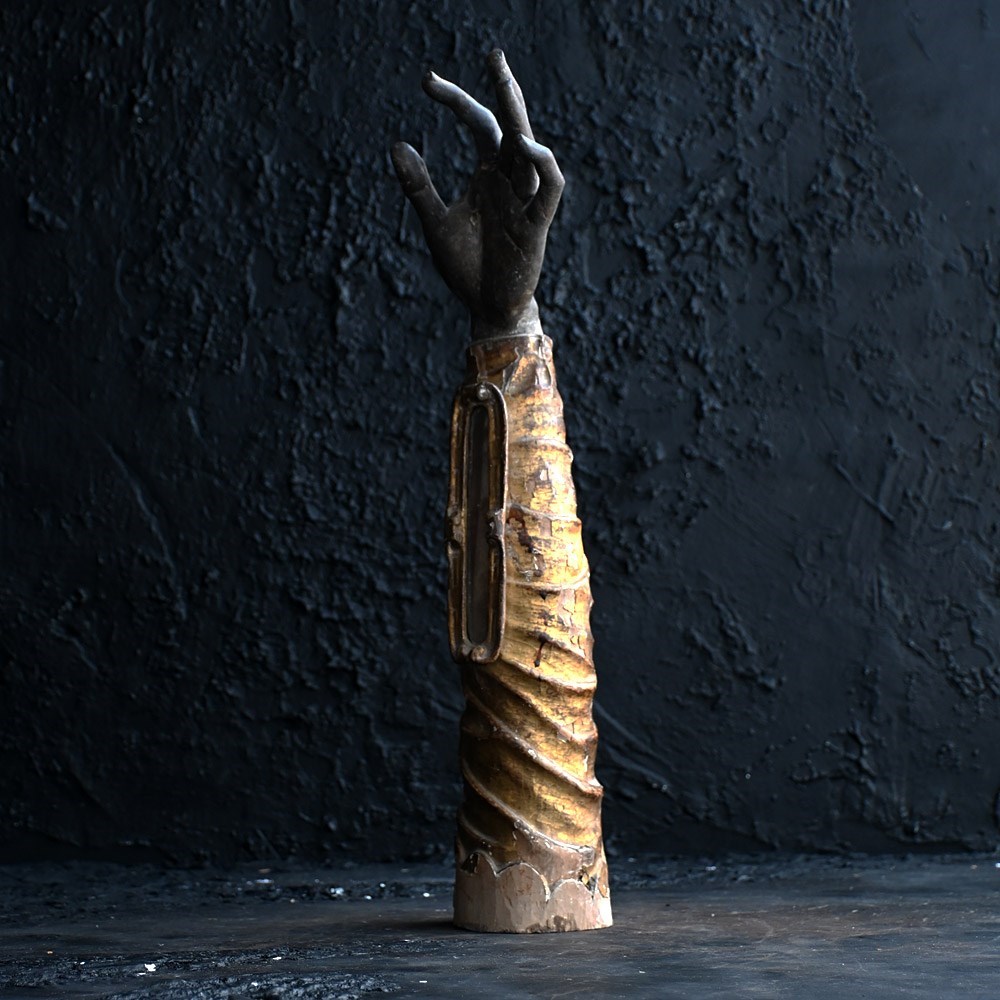This example is aged naturally as you may expect as its over 300 years. Behind the crystal panel sits a bone of sorts. During the Middle Ages and Baroque periods, these reliquaries were used as “liturgical props”. Clergy would hold the arm and make the sign of the cross over the congregation, allowing the saint to “personally” deliver a blessing to the faithful.