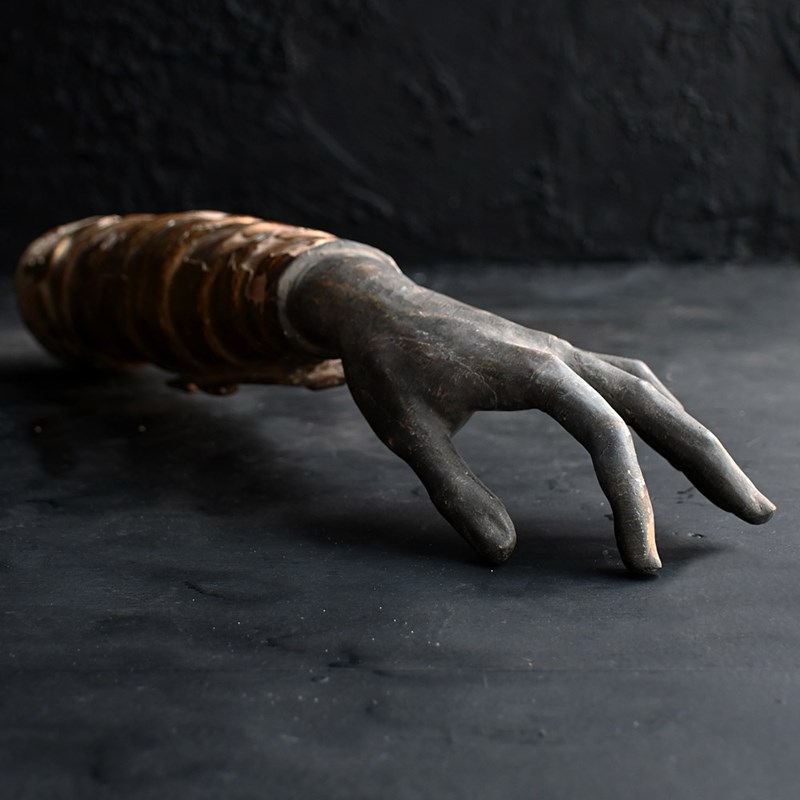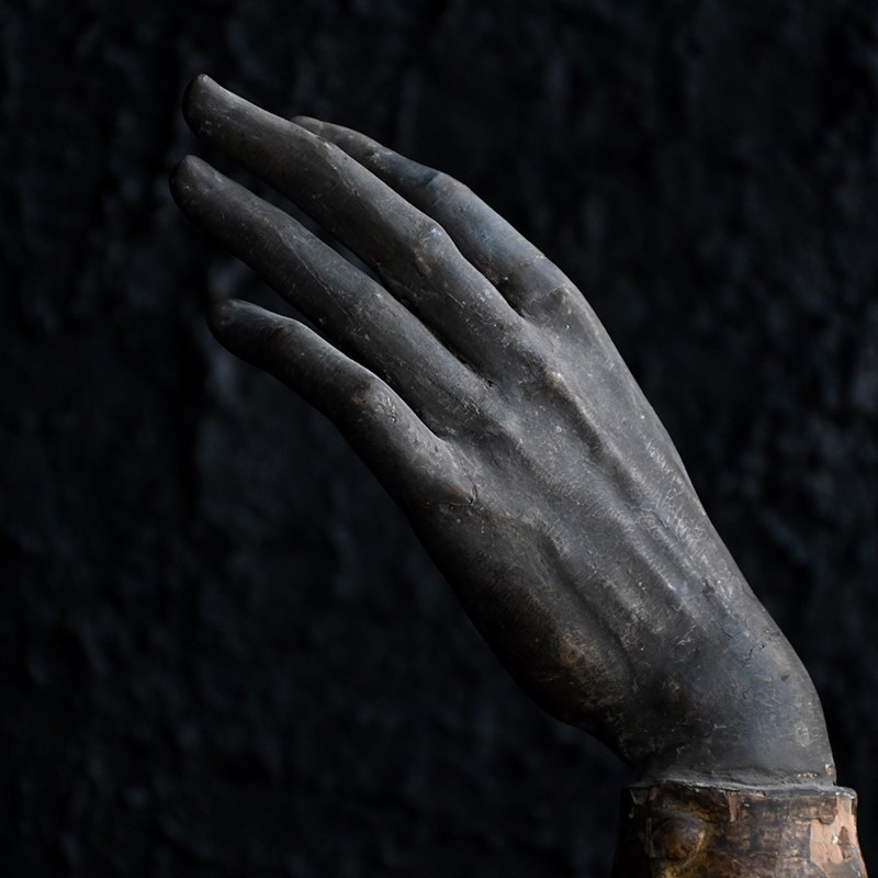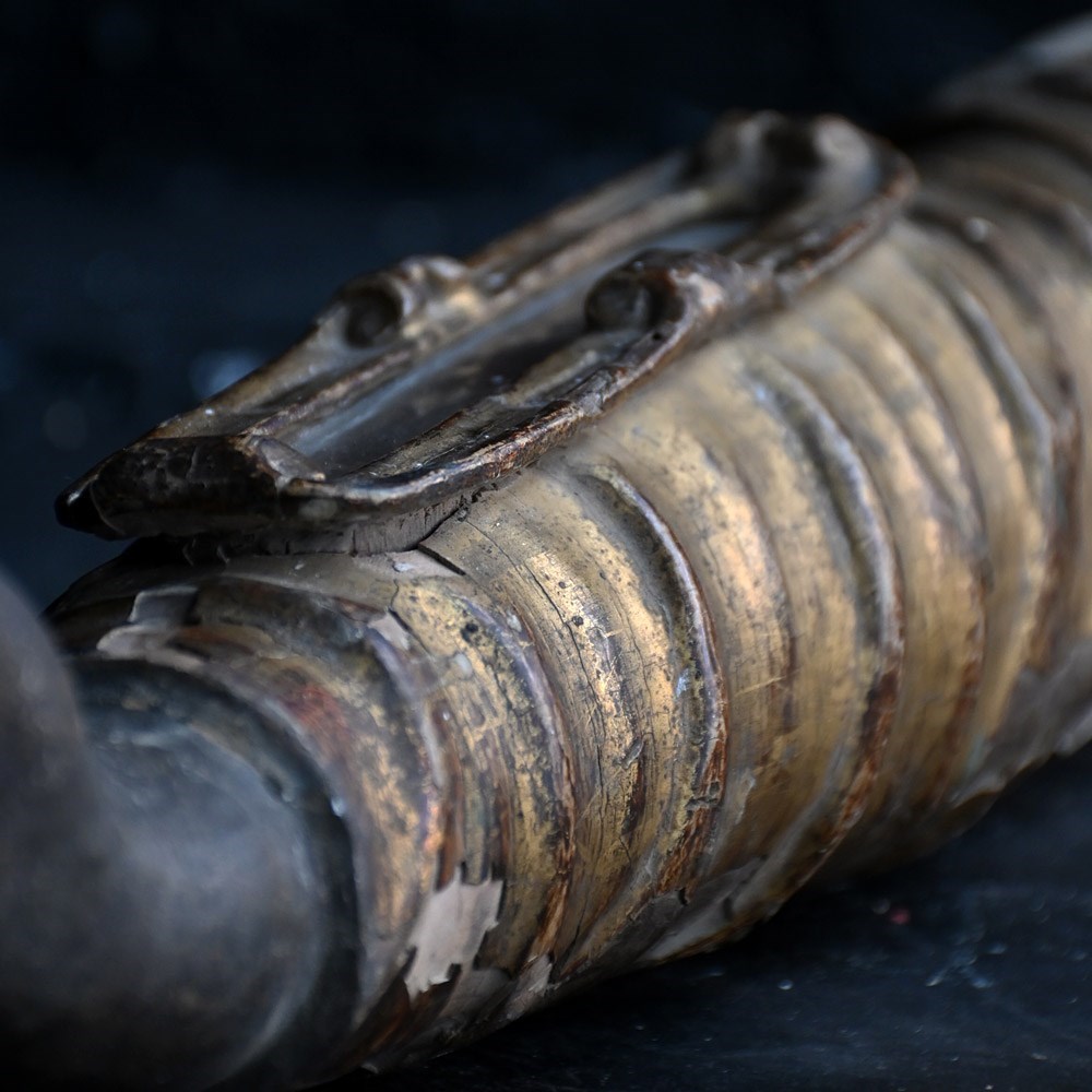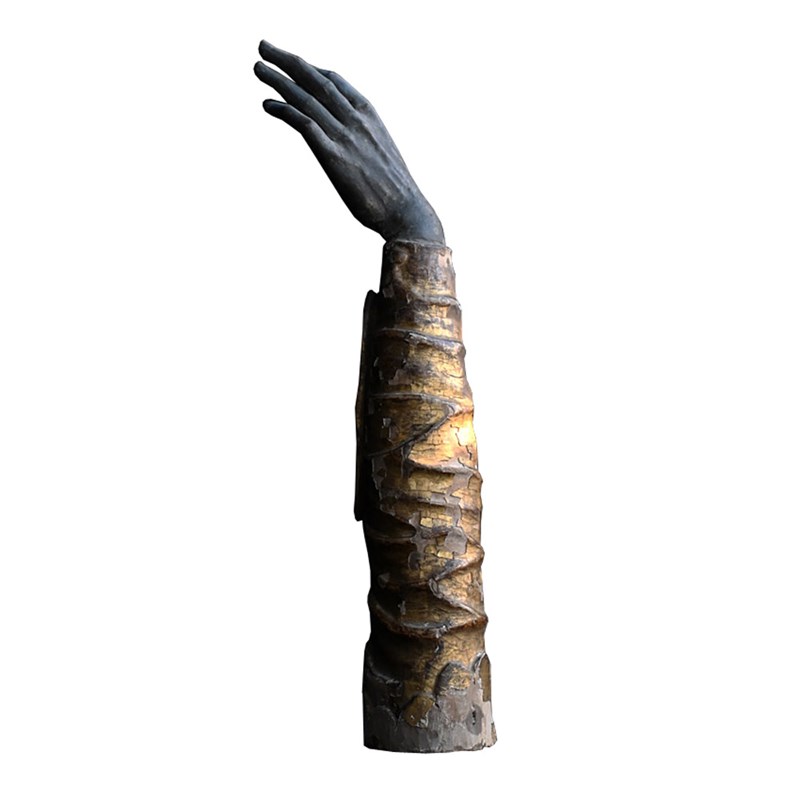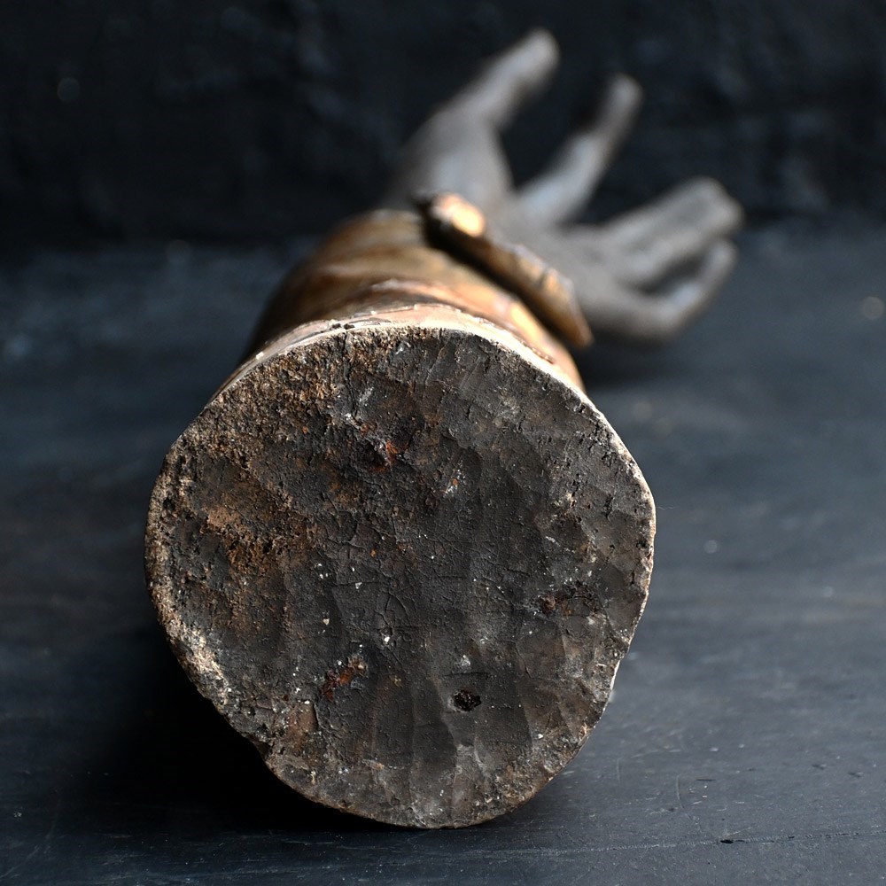 This example is aged naturally as you may expect as its over 300 years. Behind the crystal panel sits a bone of sorts. During the Middle Ages and Baroque periods, these reliquaries were used as “liturgical props”. Clergy would hold the arm and make the sign of the cross over the congregation, allowing the saint to “personally” deliver a blessing to the faithful.