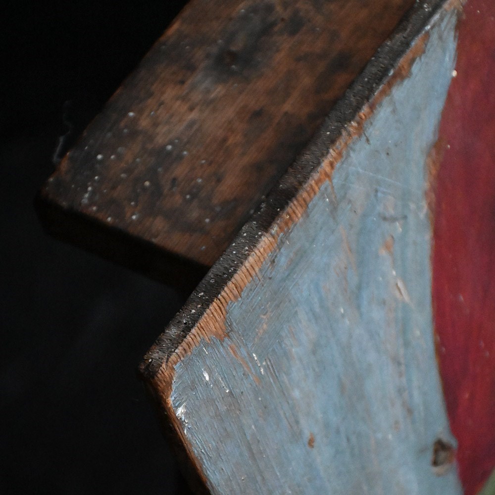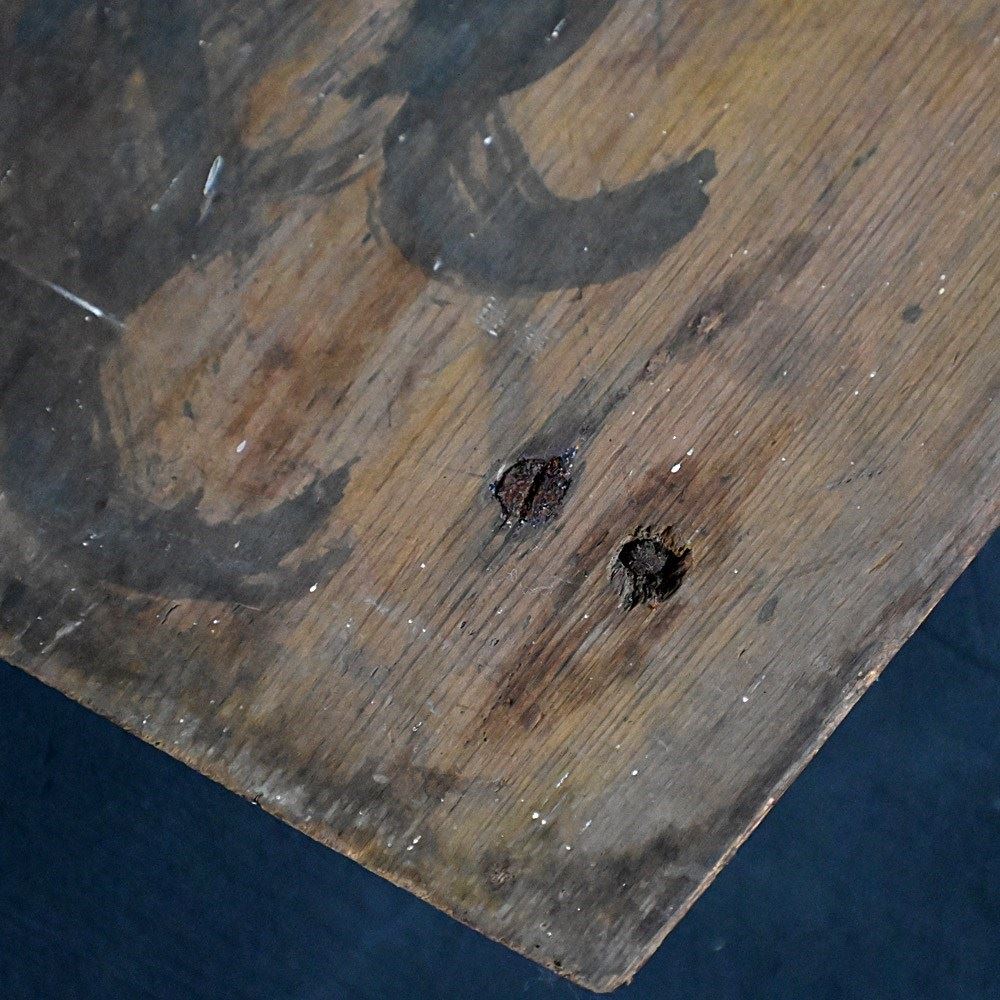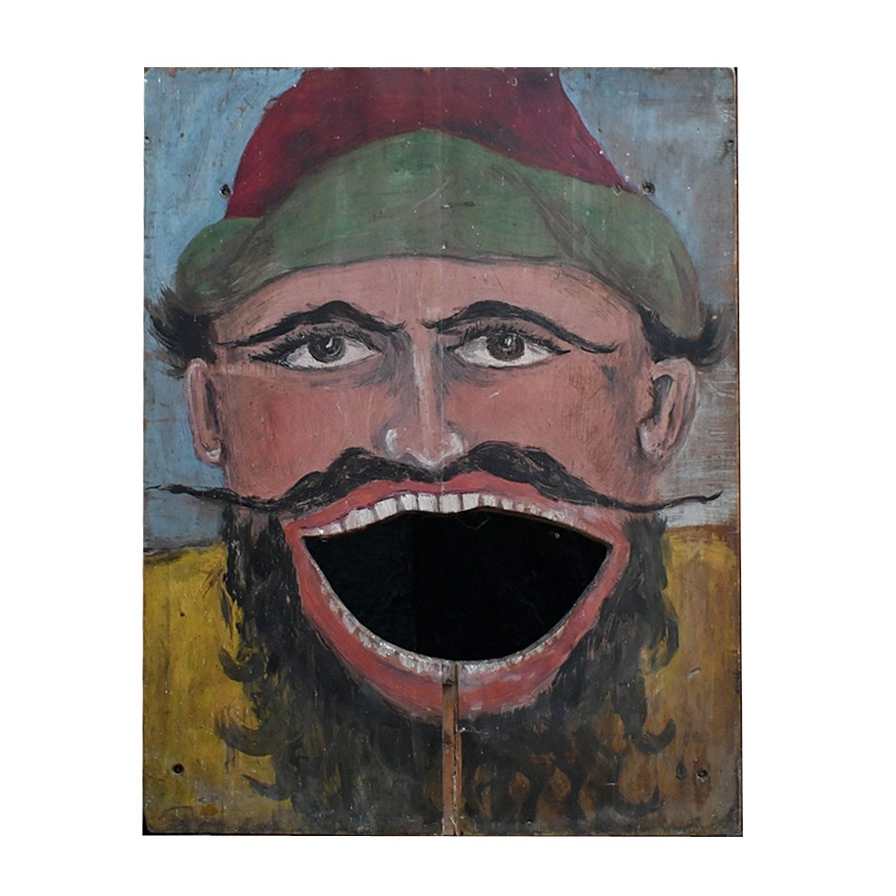 A highly decorative example of an early 20th century English fairground / carnival shooting target. Hand painted detail on sectioned pine board with rear support in place. Some old nails in place that would have held a cotton sack where small wooden balls would have been thrown into. This example would have been accompanied by numerous other boards as part of a large fairground amusement game. Completely untouched in form and in original condition as shown.