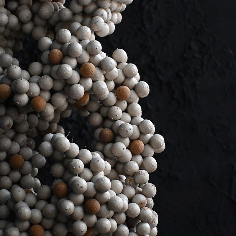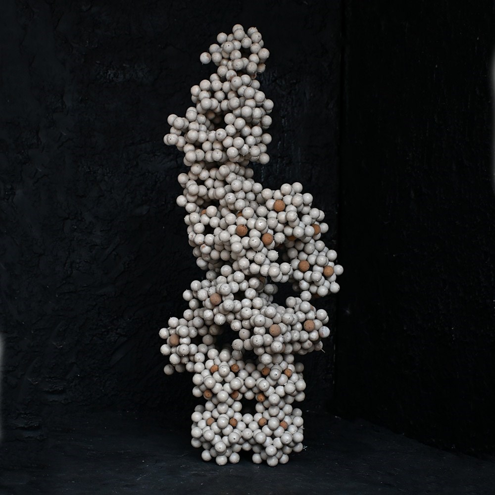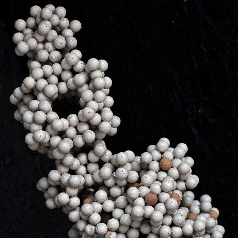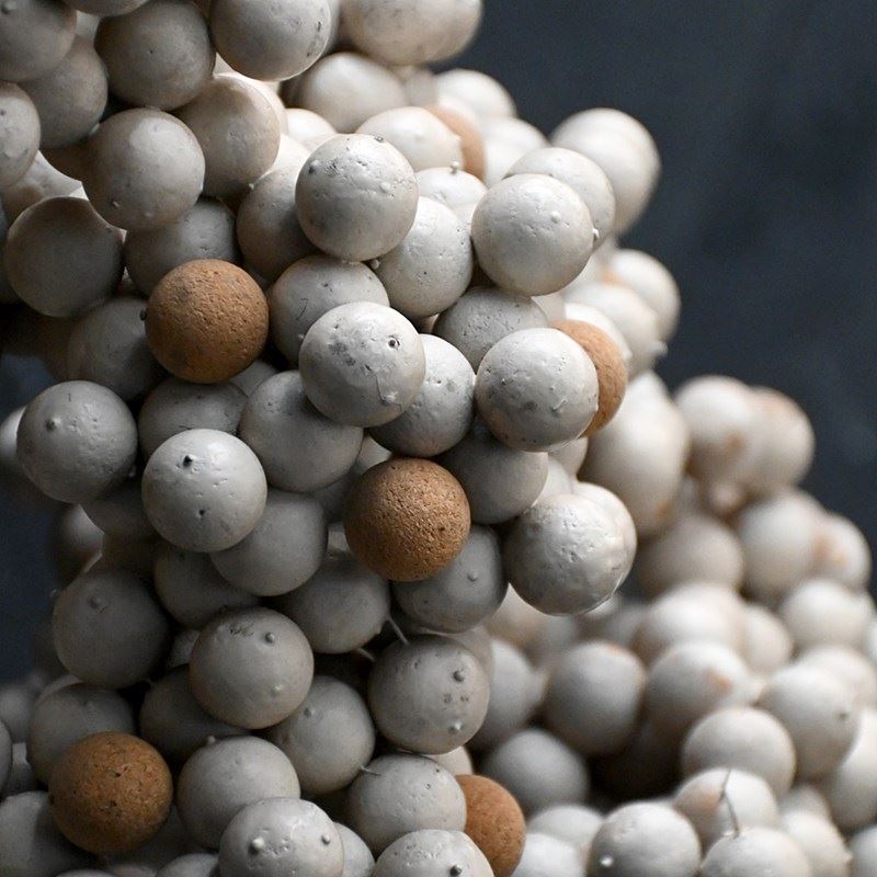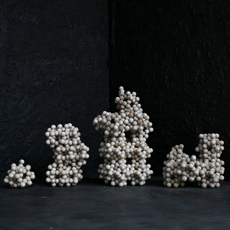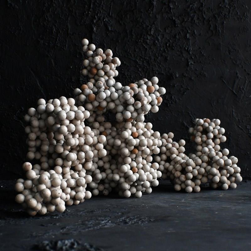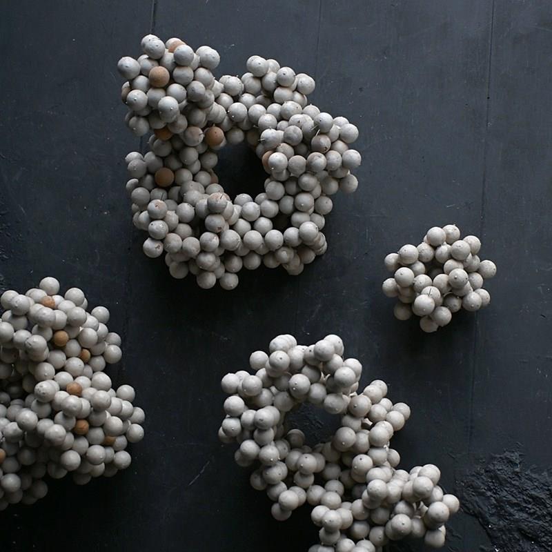 A cool collection of cork and pin school scientific cell forms, photographed in their 4 sections and as a single sculptural form, which we prefer.