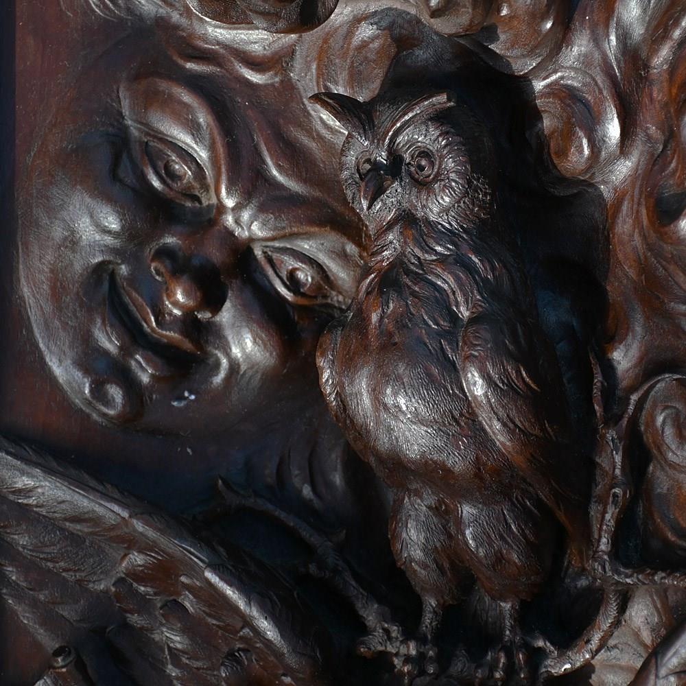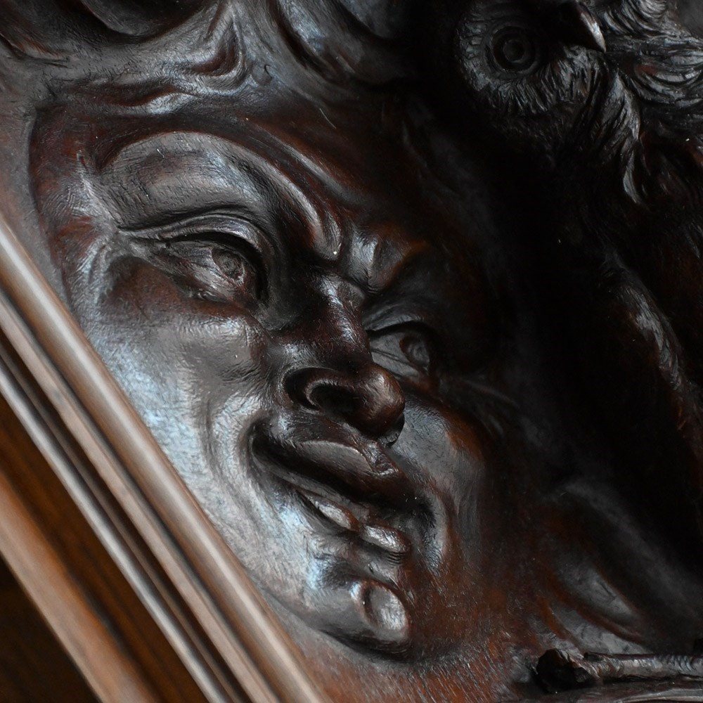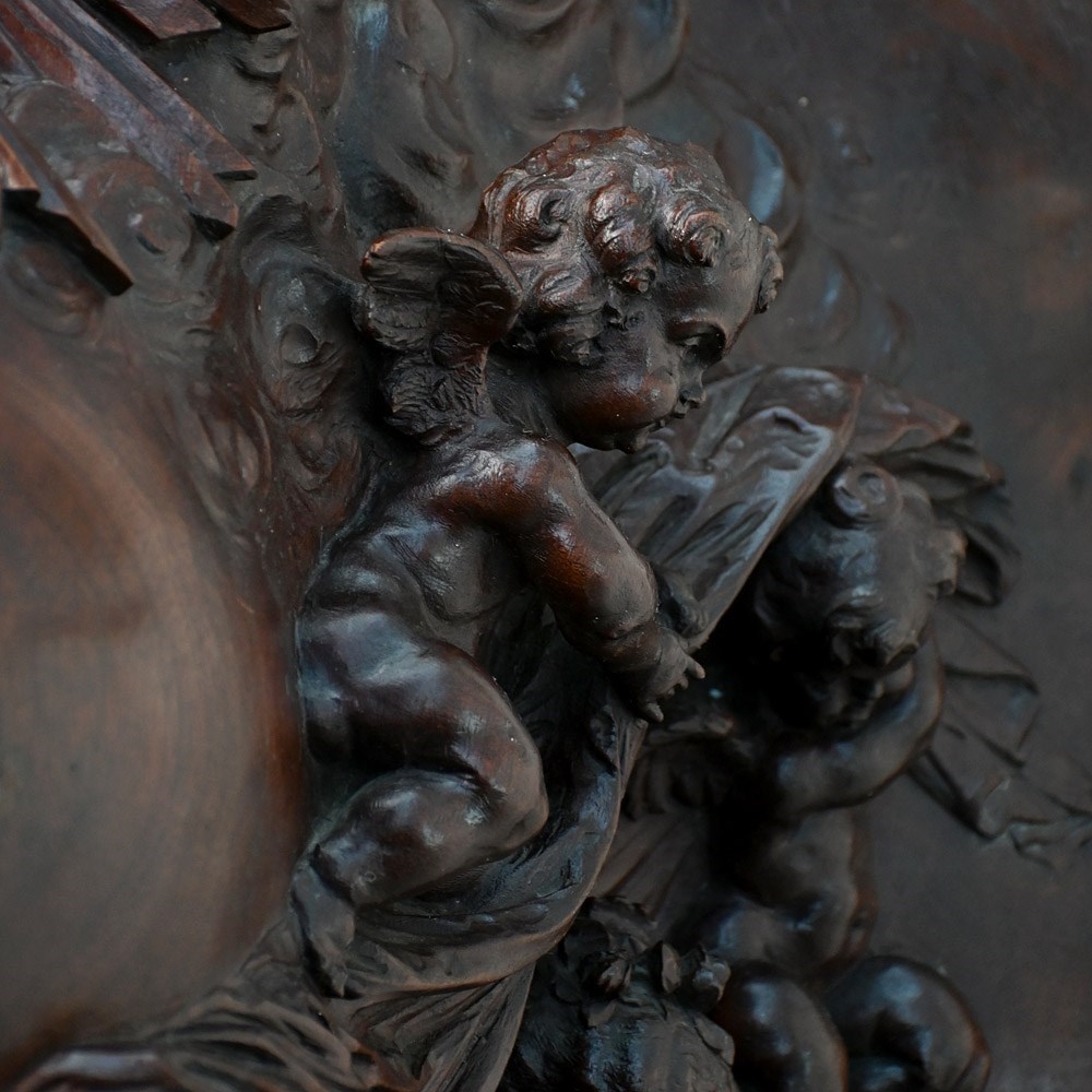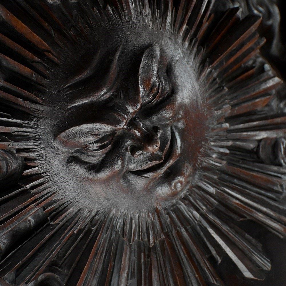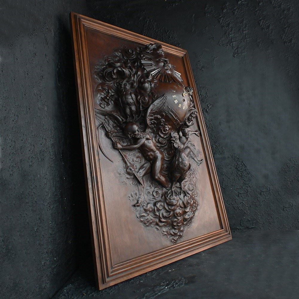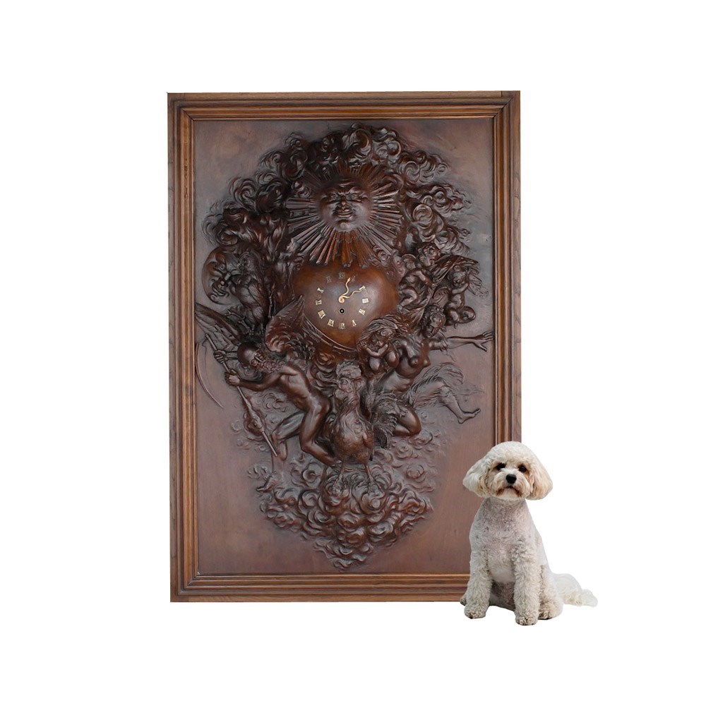 19th Century Hand-Carved “Clock of the Universe” – Château de Vitrey-sur-Mance, FrancePrice: £18,000Dimensions: H 54” x W 38” x D 11”Weight: 80 KGDate: Circa 1860–1870Origin: FranceMaterial: Hand-carved WalnutCondition: Excellent antique condition, with light wear and a few minor missing details as expected for age. Clock functions perfectly.________________________________________OverviewWithout question, this is one of the most breathtaking and rare artifacts we've ever had the honour of offering. This monumental, hand-carved walnut timepiece — affectionately known as the “Clock of the Universe” — is not just a clock, but a masterpiece of symbolic woodwork, mythology, and celestial storytelling.Believed to have been crafted in France in the late 19th century, the clock was originally installed as part of the ornate woodwork within the Château de Vitrey-sur-Mance, located in Haute-Saône. Dismantled in the 1950s, this remarkable piece has remained preserved in secure museum storage ever since.________________________________________Design FeaturesThe sculpture is carved in two large sections from solid walnut and stands five feet tall. At its heart sits a functioning antique clock with brass, snake-shaped hands, each inlaid with small red stones for eyes — a detail both eerie and exquisite.Surrounding the timepiece is an astonishing and complex relief carving that represents the universe itself. The narrative scene is alive with:• Celestial bodies – including the sun and moon• Zodiac symbols• Angels and demons• Mythical and earthly animals• Elements of wind, fire, and spaceThe entire composition bulges out from its centre as if bursting into the cosmos, making it not only a timekeeping device but a philosophical statement on the nature of existence and the passing of time.________________________________________Provenance• Château de Vitrey-sur-Mance, Haute-Saône, France• Part of an elaborate interior woodwork ensemble removed in the 1950s• In storage for over half a century before resurfacing________________________________________Condition• Structurally solid and stable• Aged patina consistent with 150+ years• No signs of woodworm or rot• Only 1–2 minor areas of missing carved detail, difficult to detect• Clock mechanism functions accurately and comes with original keyWe believe the clock was likely restored or adjusted during the 19th century, and while its current condition is exceptional, its aesthetic remains authentically antique.________________________________________Shipping & Handling• UK Buyers: Delivery available via trusted couriers, including bespoke service for large or fragile items• International Buyers: Shipping available worldwide — please contact us for a custom quote before purchase• We highly recommend tracked, insured, and crated shipping for this item due to its rarity and fragility• Shipping time: 3–5 working days to dispatch________________________________________Our GuaranteeWe pride ourselves on transparency, craftsmanship, and customer satisfaction. All items are described and photographed as accurately as possible. Please inspect all photos and ask any questions prior to purchase — we are here to help ensure confidence in your decision.________________________________________Returns & Cancellations• Returns accepted only if the item is not as described, reported within 48 hours of delivery• Change-of-mind cancellations are not accepted• Return shipping (including insurance) is the responsibility of the buyer unless otherwise agreed upon________________________________________Photographic RightsAll images are the property of The House of Antiques LTD. For usage rights or publication inquiries, please contact us in advance.________________________________________A Final NoteThis is not just a clock. It is a statement piece, a symbolic sculpture, and a testament to the imagination and artistry of 19th-century craftsmanship. For serious collectors of antique clocks, French Gothic Revival, or cosmological art — this may be a once-in-a-lifetime acquisition.