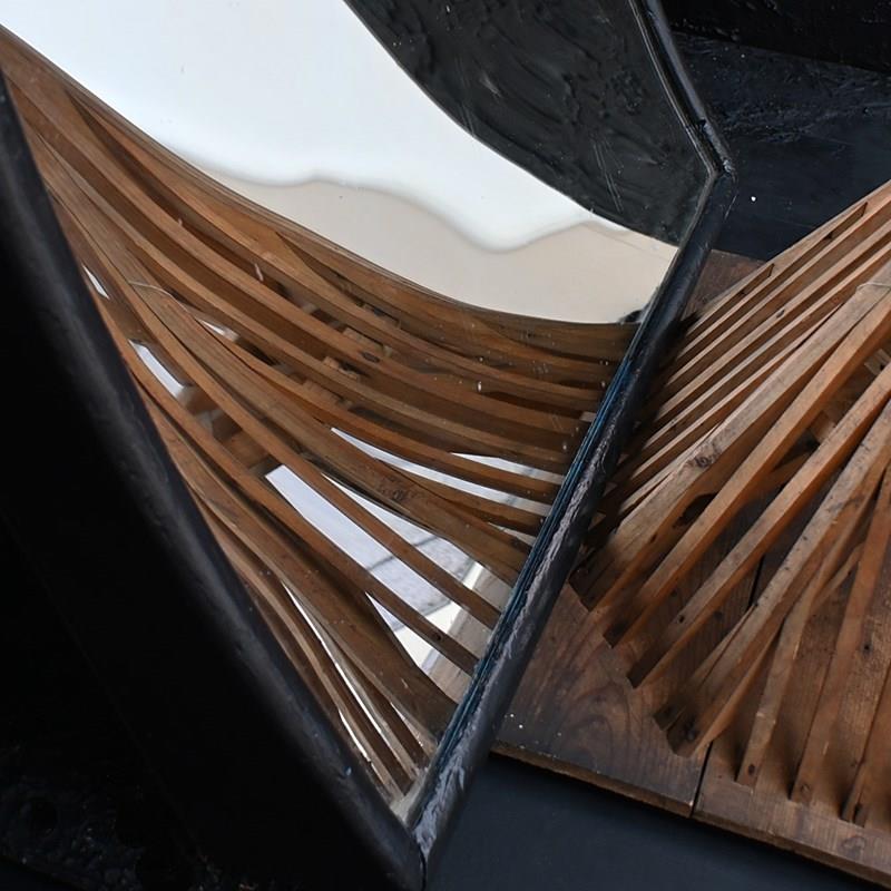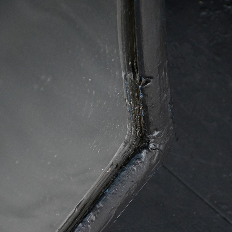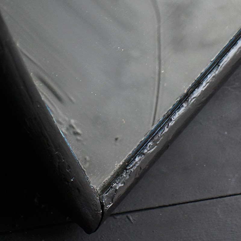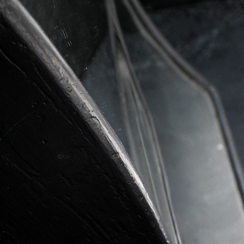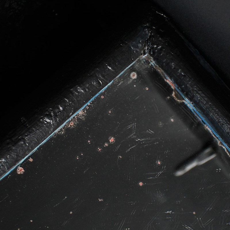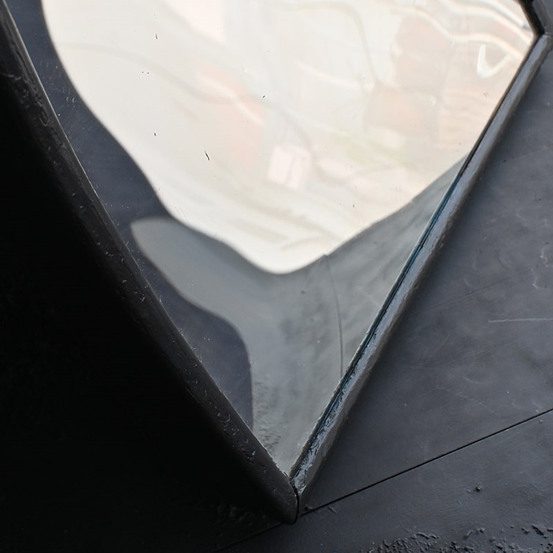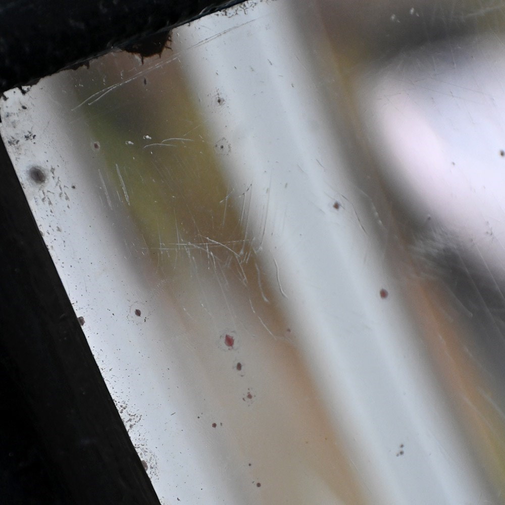 A large example of an English distorted original fairground mirror, dated to the early part of the 20th century. This example is unusually wide, it has been repainted from light blue to black as this can be seen. The mirror is also aged well with natural mercury spots and aged scratches more to one side than the other. With 2 support brass brackets still in place, this mirror weighs roughly 40kgs but can be attached to a wall. Giving a great, strong distorted effect to brighten up any hallway.