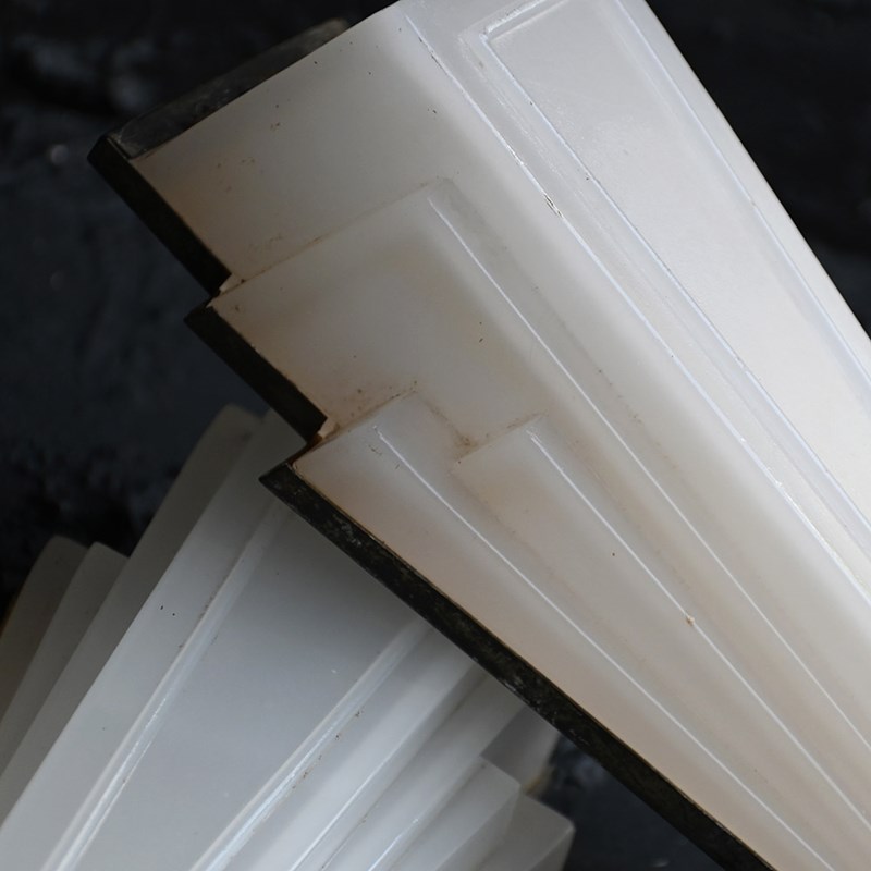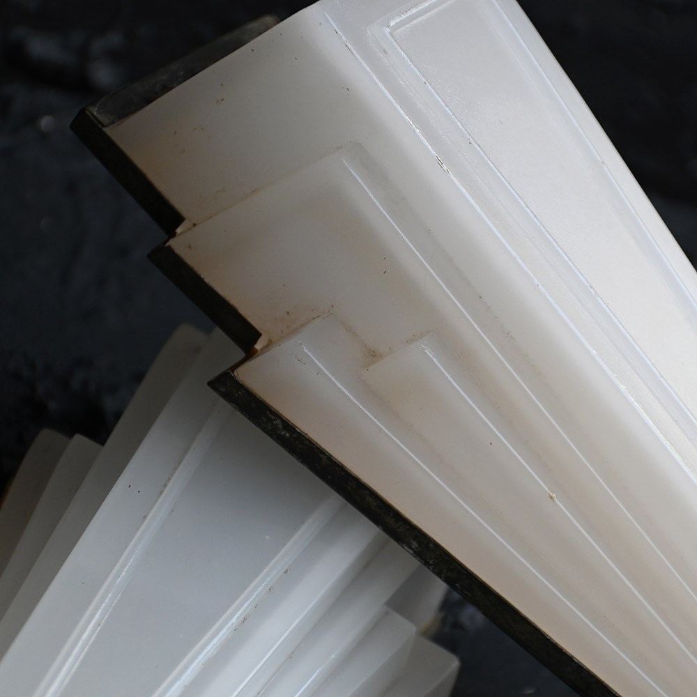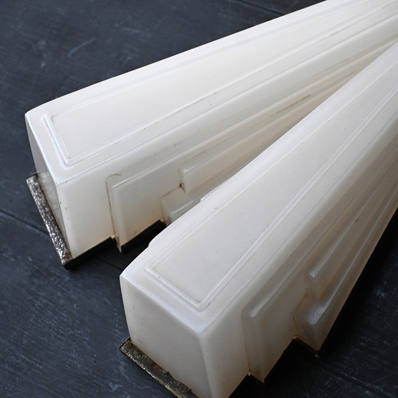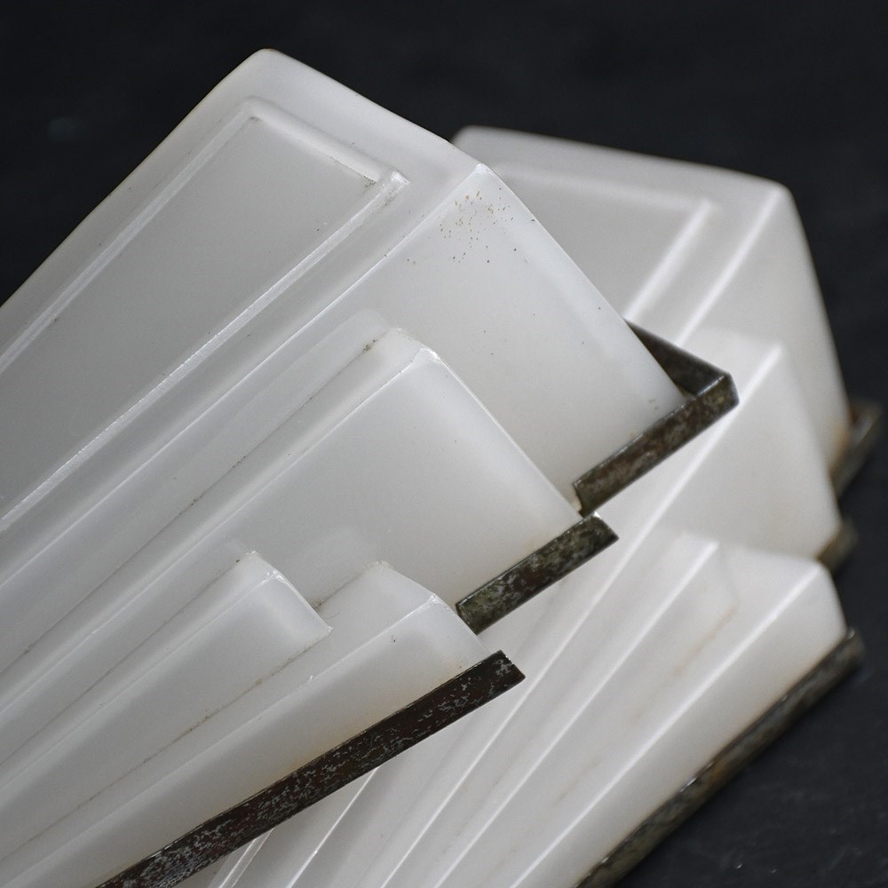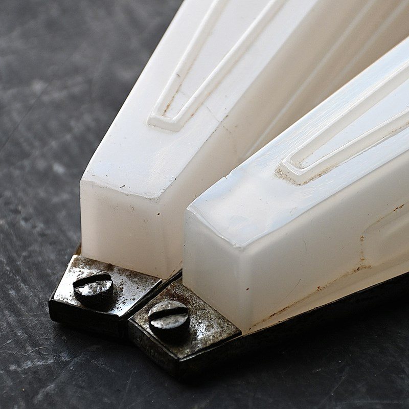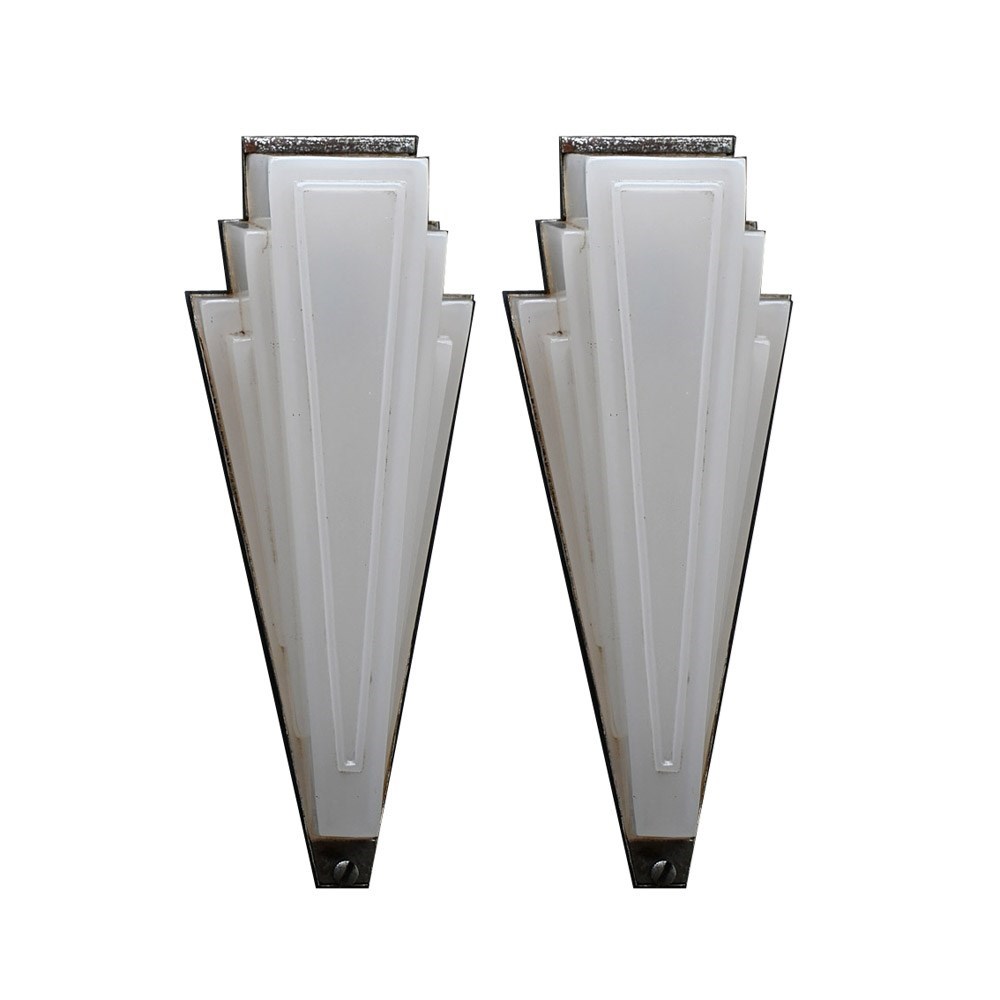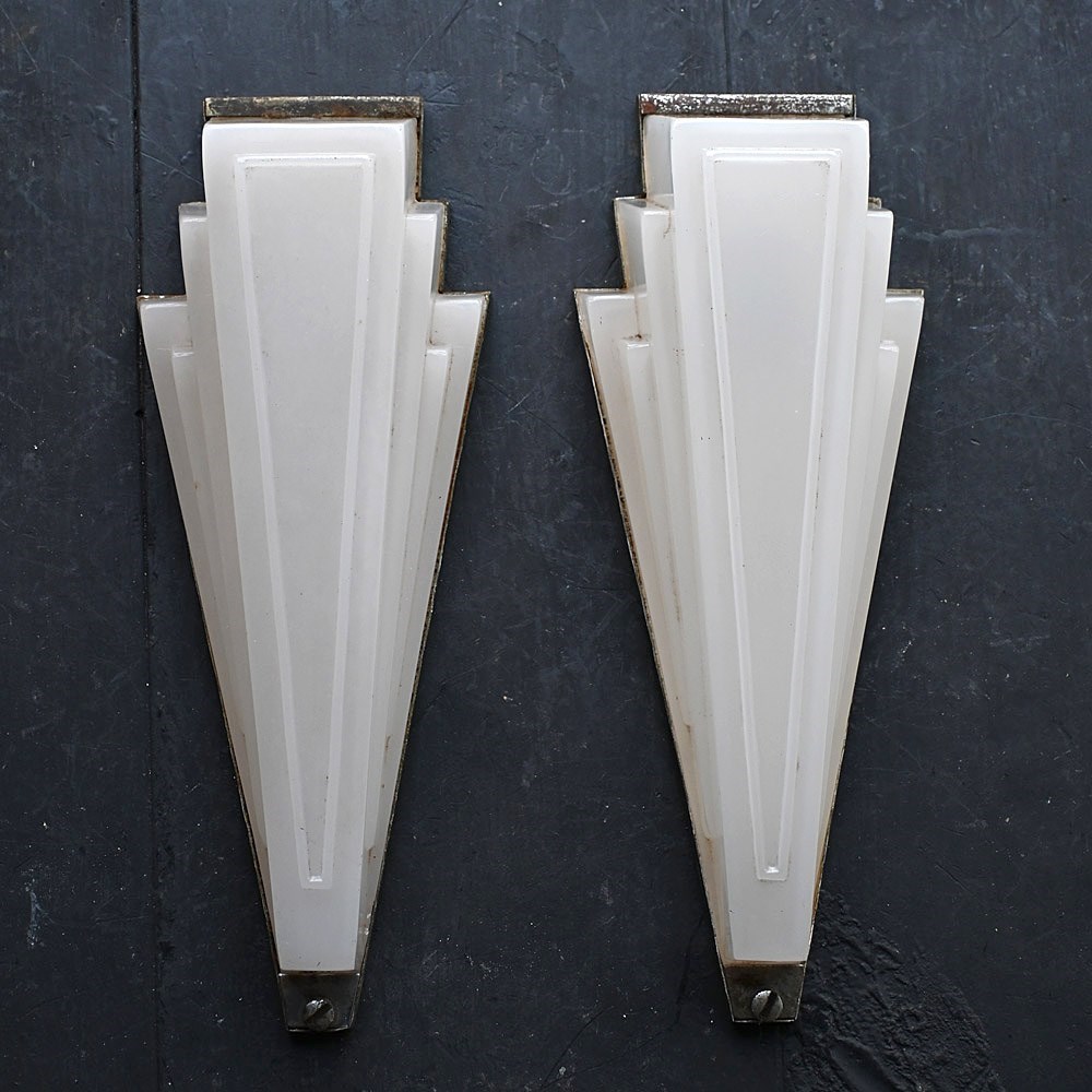 Matched pair of art deco opaline glass English cinema wall lights