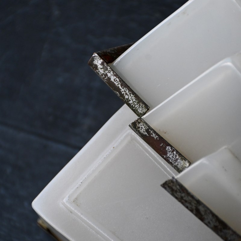 Aged naturally over time, the metal plates show lots of age due to obvious use. The glass shades are in excellent condition as shown.