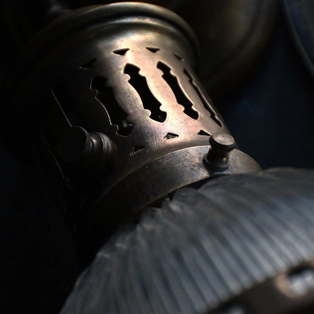 • Aged patination to metal areas