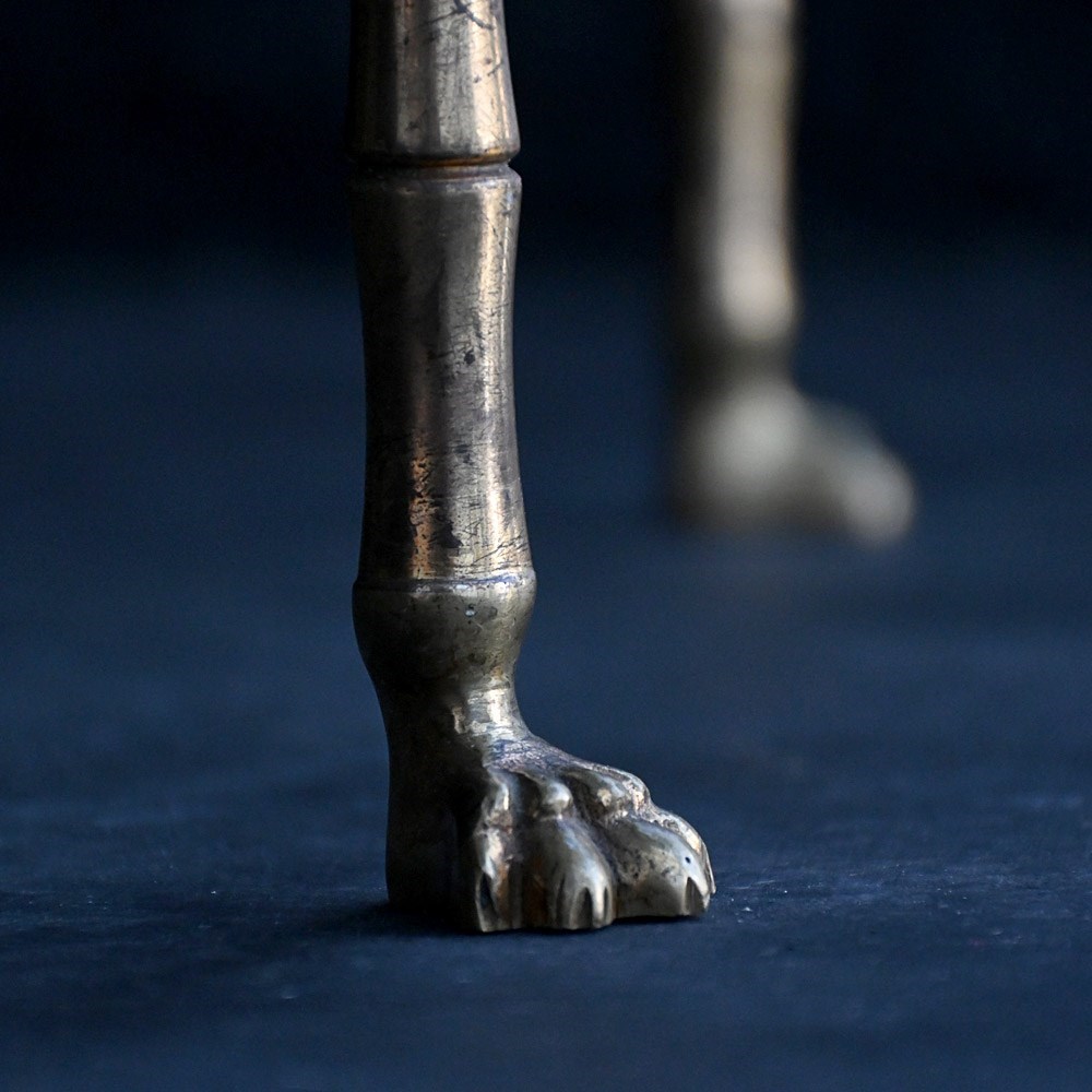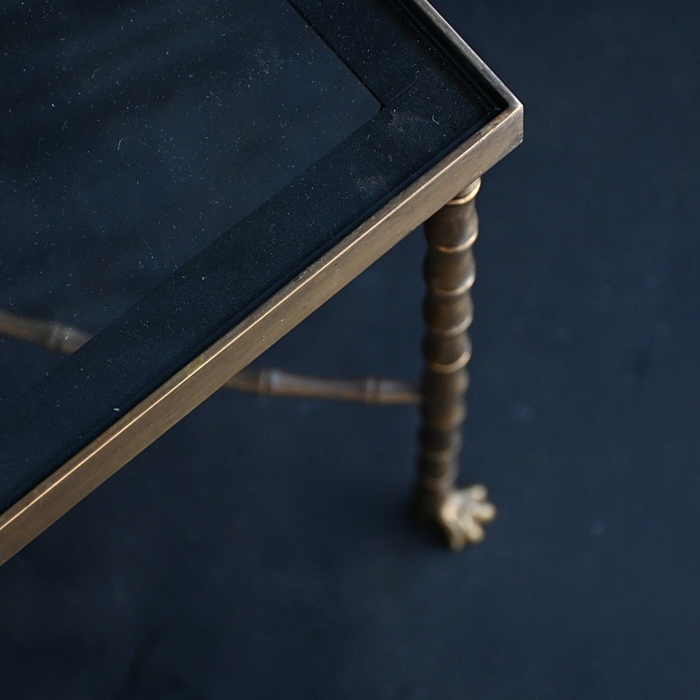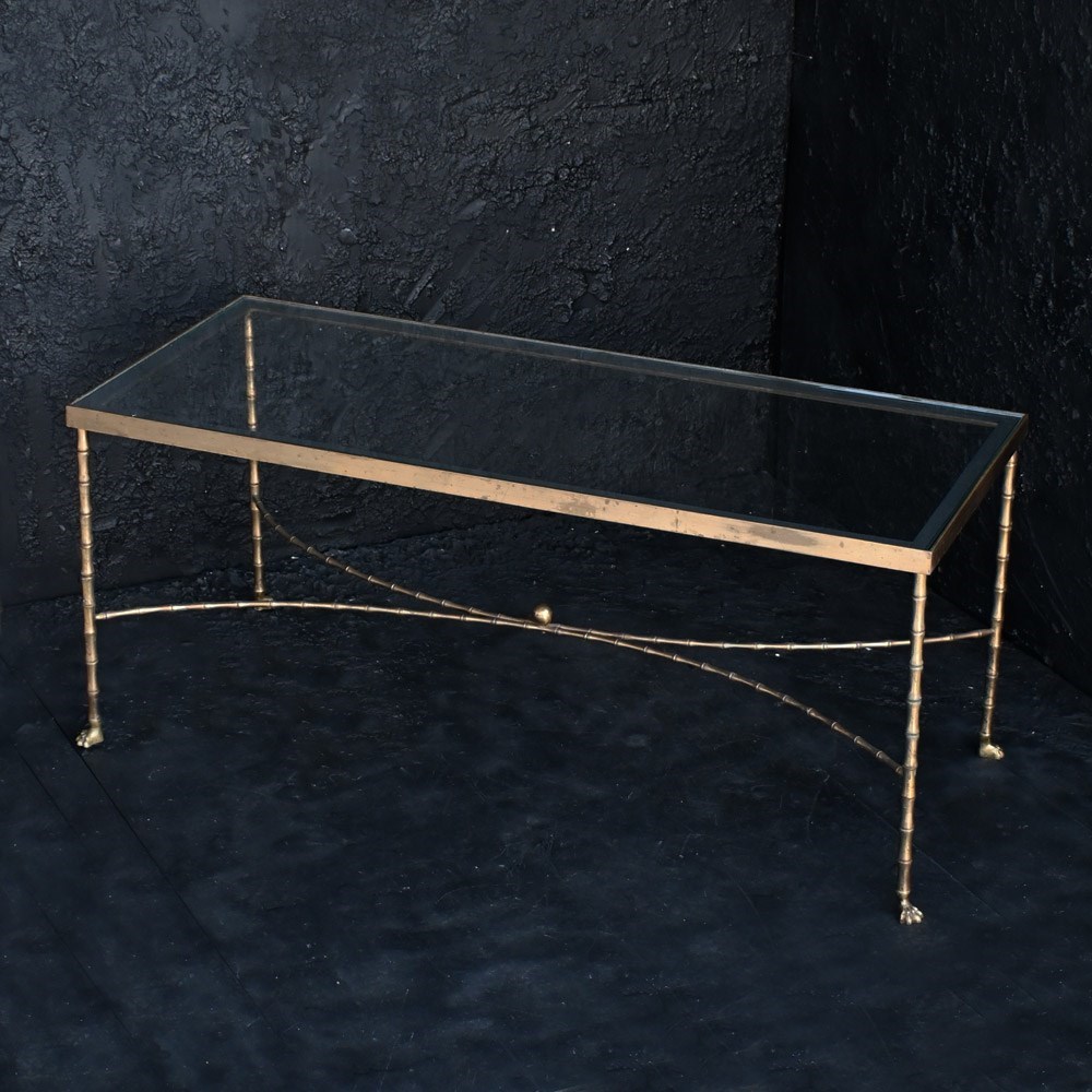 A very stylish model from the collection of Maison Bagues. The delicate & beautifully cast, solid brass base raised on outward turned lion paw feet with an elegant lower stretcher & clear glass top. A good early example of the highest quality with examples like this are becoming harder & harder to find.