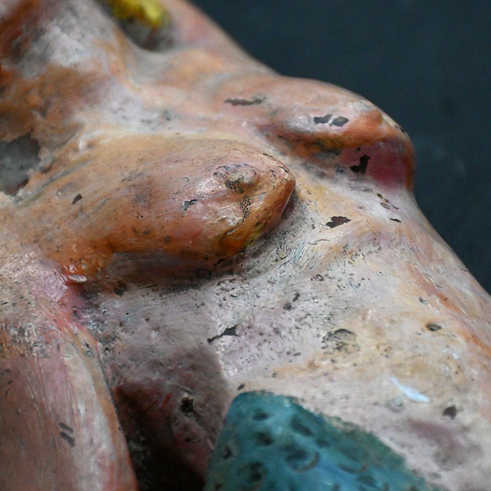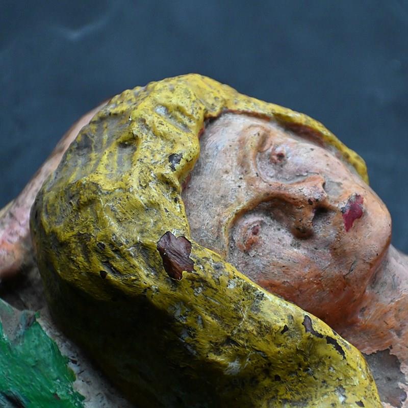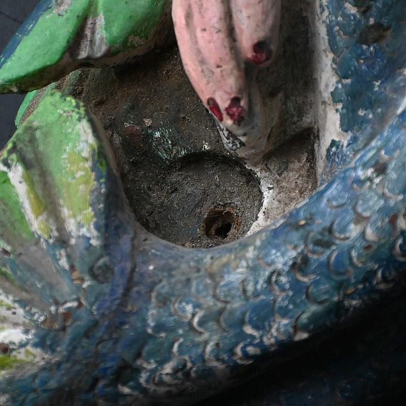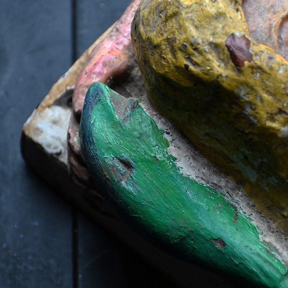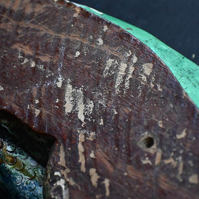 An early 20th century English maritime folk-art carving depicting a twin tailed mermaid surrounded by sea serpents. Hand carved from a single piece of dense wood, this sculptural fragment is believed to have originally formed part of a paired set and was likely mounted within a ship’s interior.