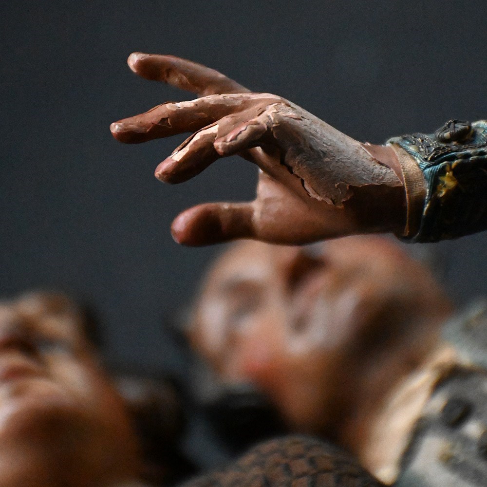 • Light surface cracks to the wooden areas (fingers)