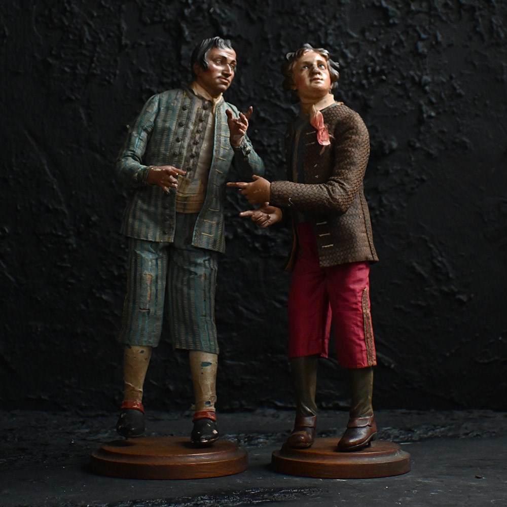 Pair of Early 19th century Napoleonic Carved Wooden Crib Figures