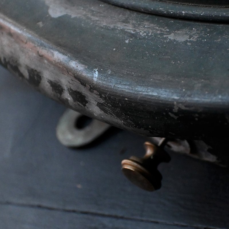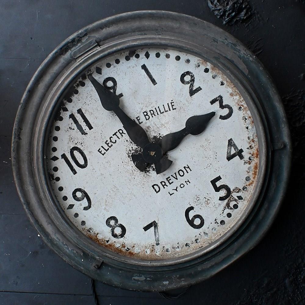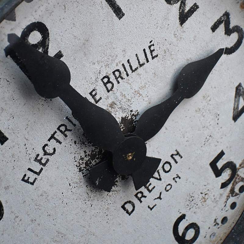 This highly decorative untouched French wall mounted station clock has recently been fitting with a new 240v motor mains power source. With adjustable brass hand movement toggle at its base. Its original hanging brackets, Hands, glass facia, and aged painted surface still in place and in original condition. Obtained from the trade in the south of France last month. This clock weighs roughly 15kg and would make a great piece of functional wall décor in our humble opinion.
