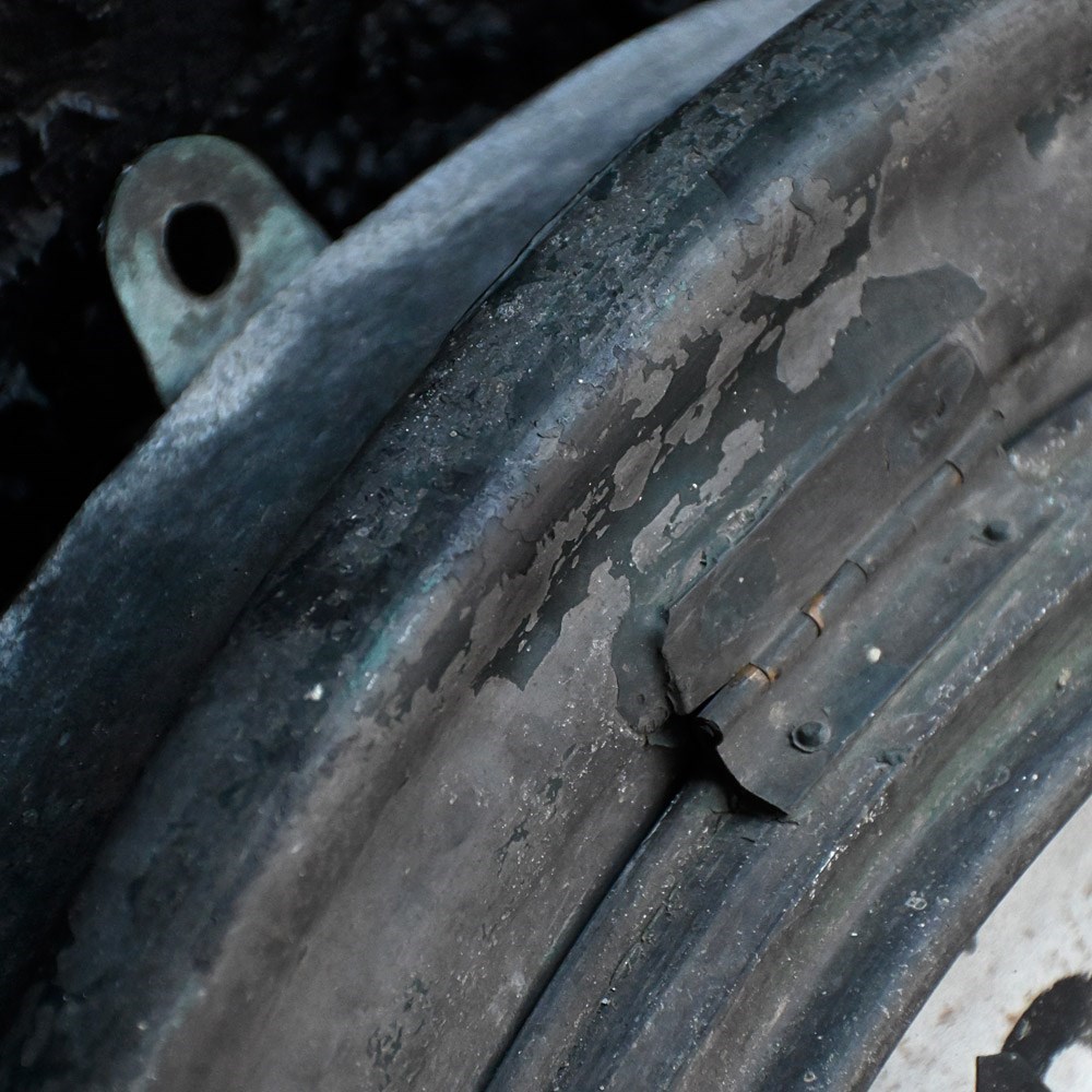 • With dents to the metal edge as shown in the pictures provided