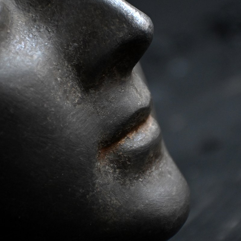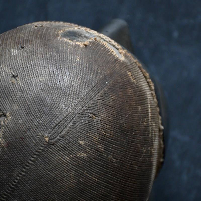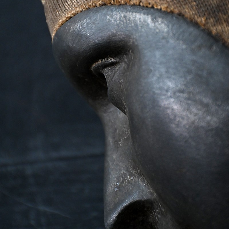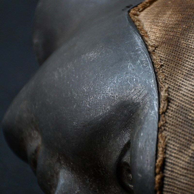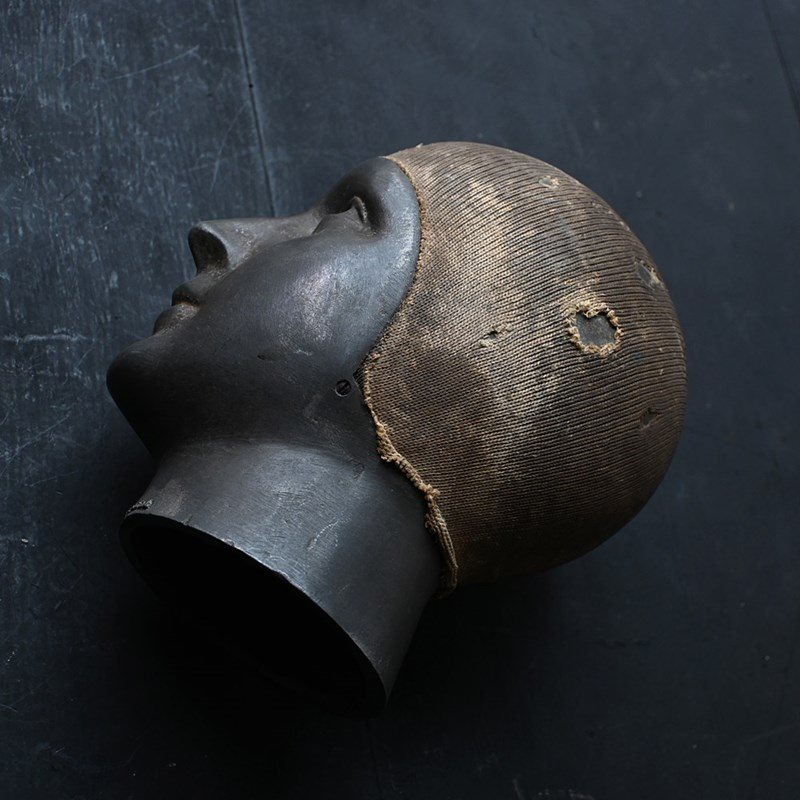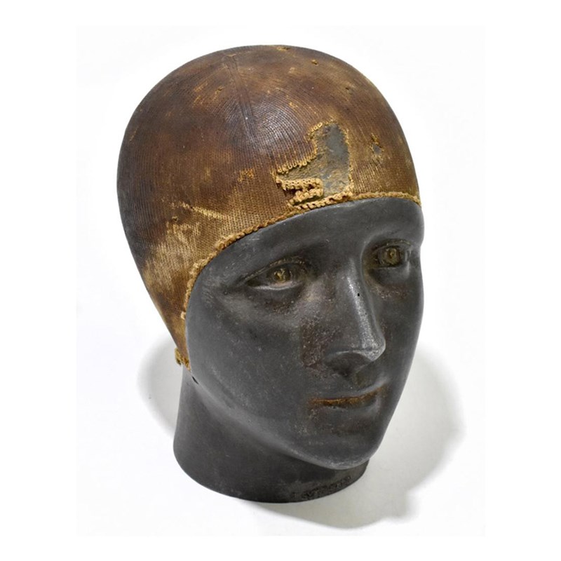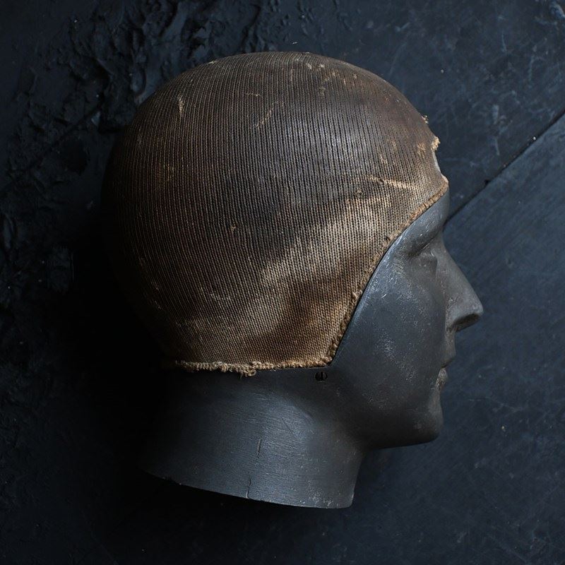 Made from a cast metal form in the shape of a female head and still with its well-worn fabric mesh support section to which wigs would have been moulded at some point. Showing a great natural patination to its surfaces and stamped Brevete S.G.D.G.
