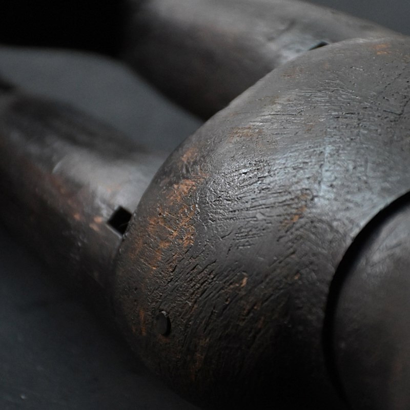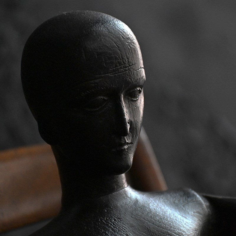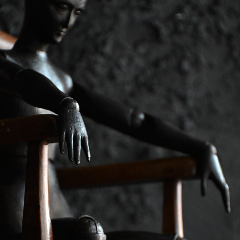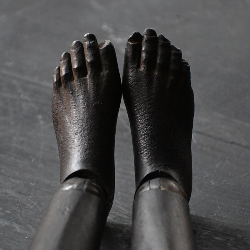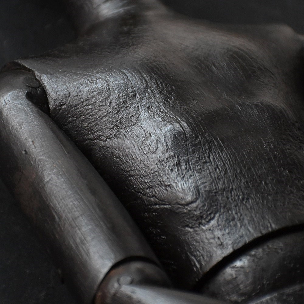 A detailed hand carved artists layfigure, in an ebonised colour with fully articulated parts.