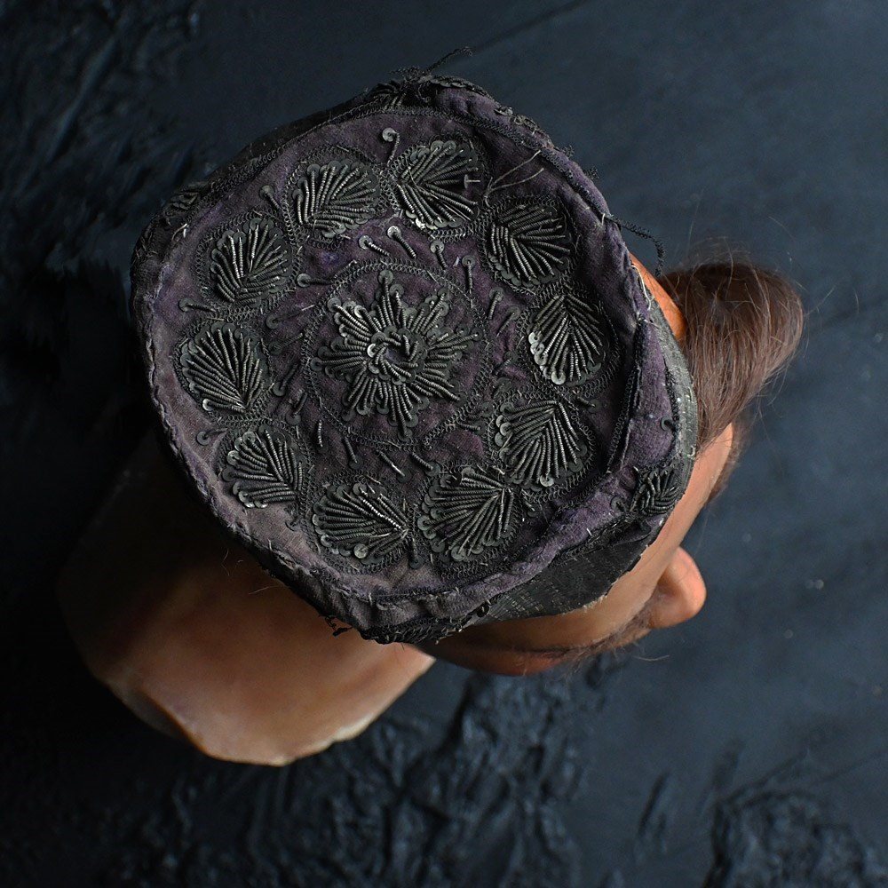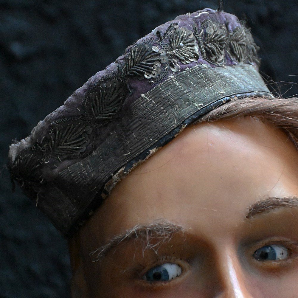 • Antique beaded hat can be removed