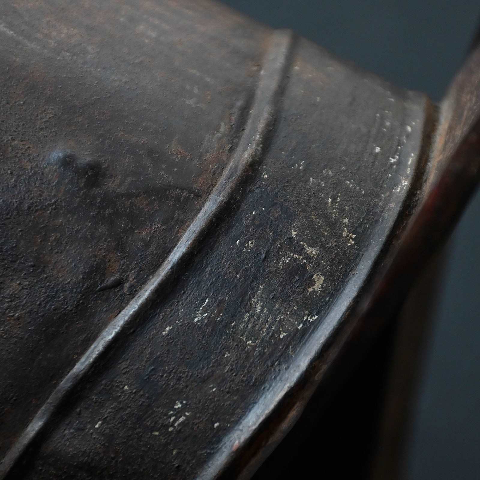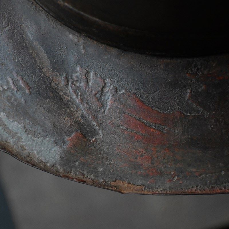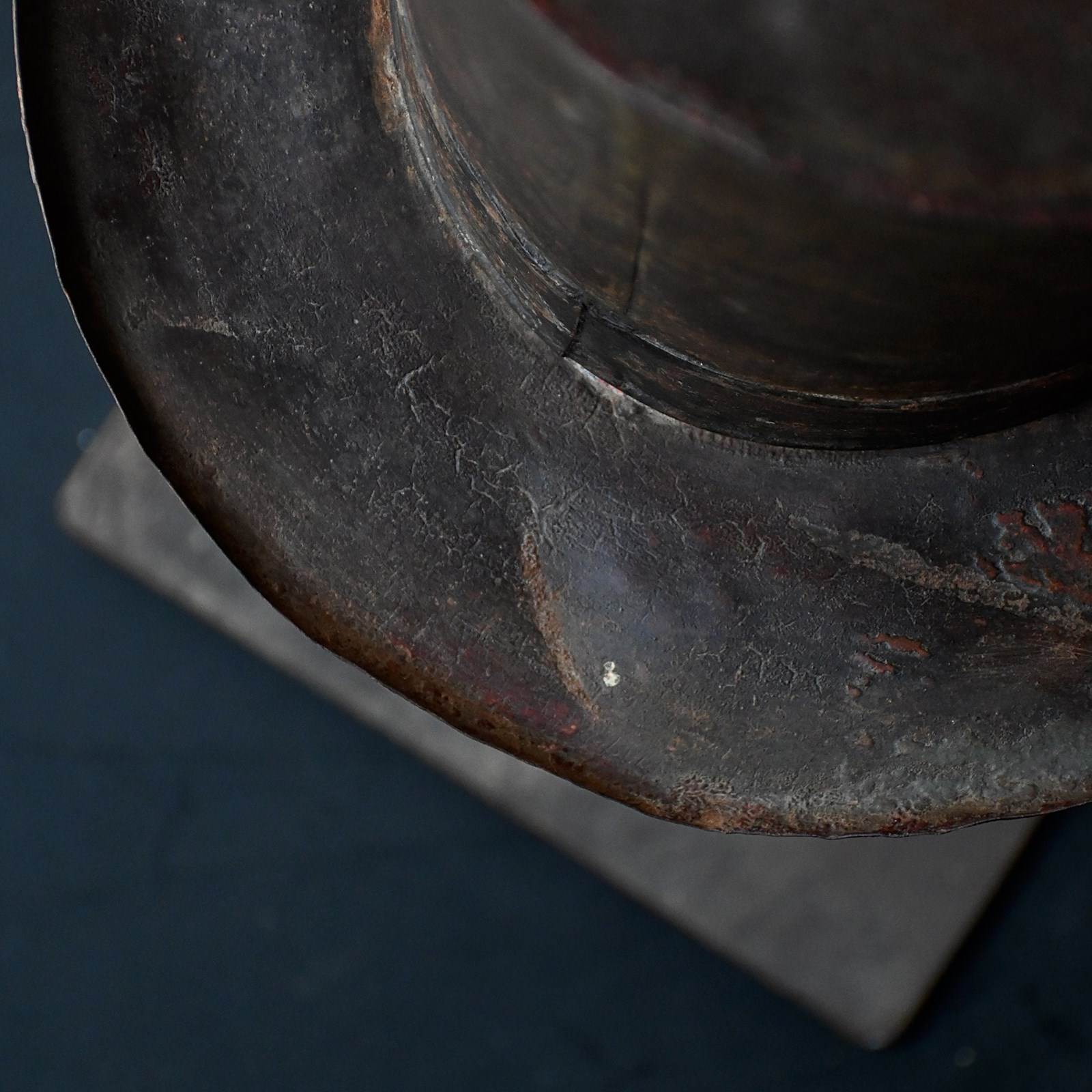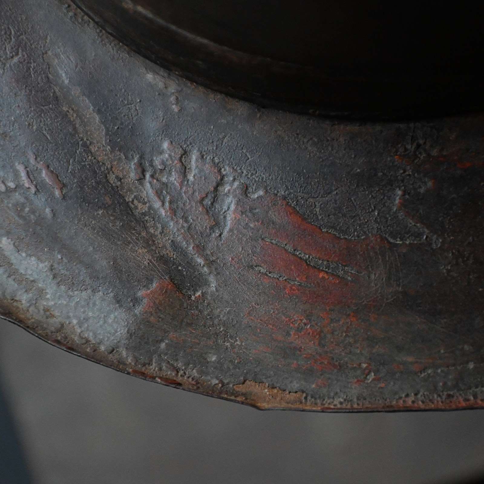 Mounted onto a bespoke cast iron display stand this highly decorative and rare example of a hat makers trade sign shows bags of character and age. The bracket fits perfectly into the bespoke stand as shown. Once this item would have hung outside a hat makers shop of sorts. Originally this sign would have been painted red as there is some remnants of this across the surface.