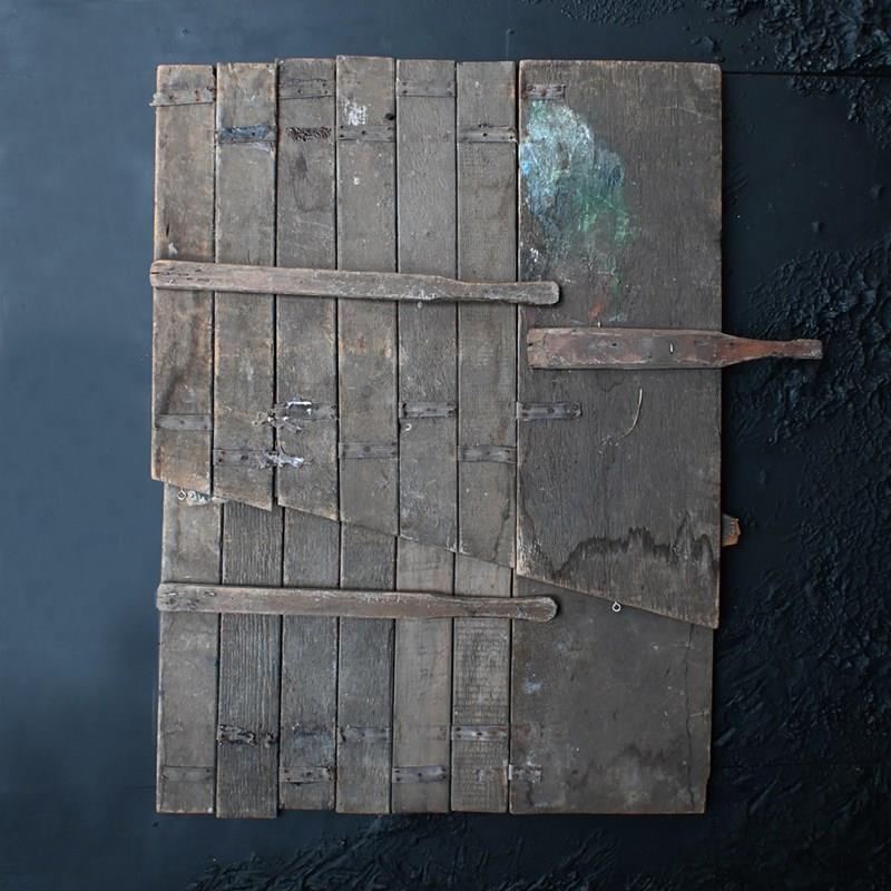 The condition of the scenery boards is totally un-meddled with and there have been no attempts to restore the flaking to the original paintwork (only natural wax has been applied to keep things tight on the surface). They are relatively fragile having been well used in performance and the canvas hinges are delicate with some lacking. We have added small hooks for wall hanging but they could be removed. The original tactile wooden handles are all present.