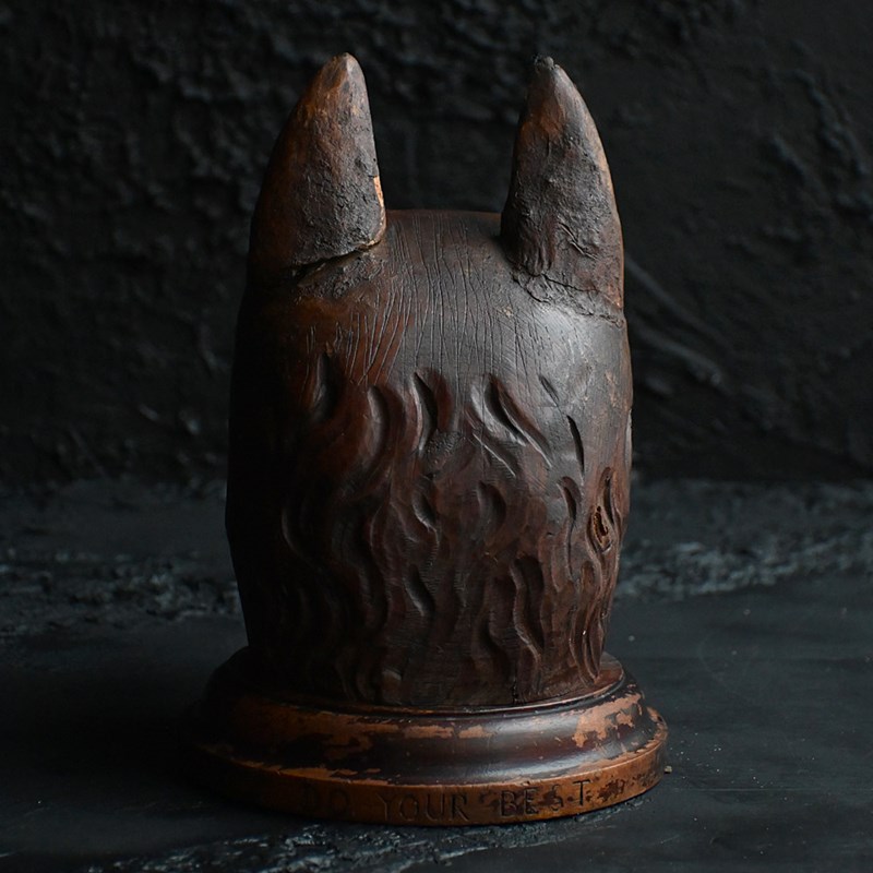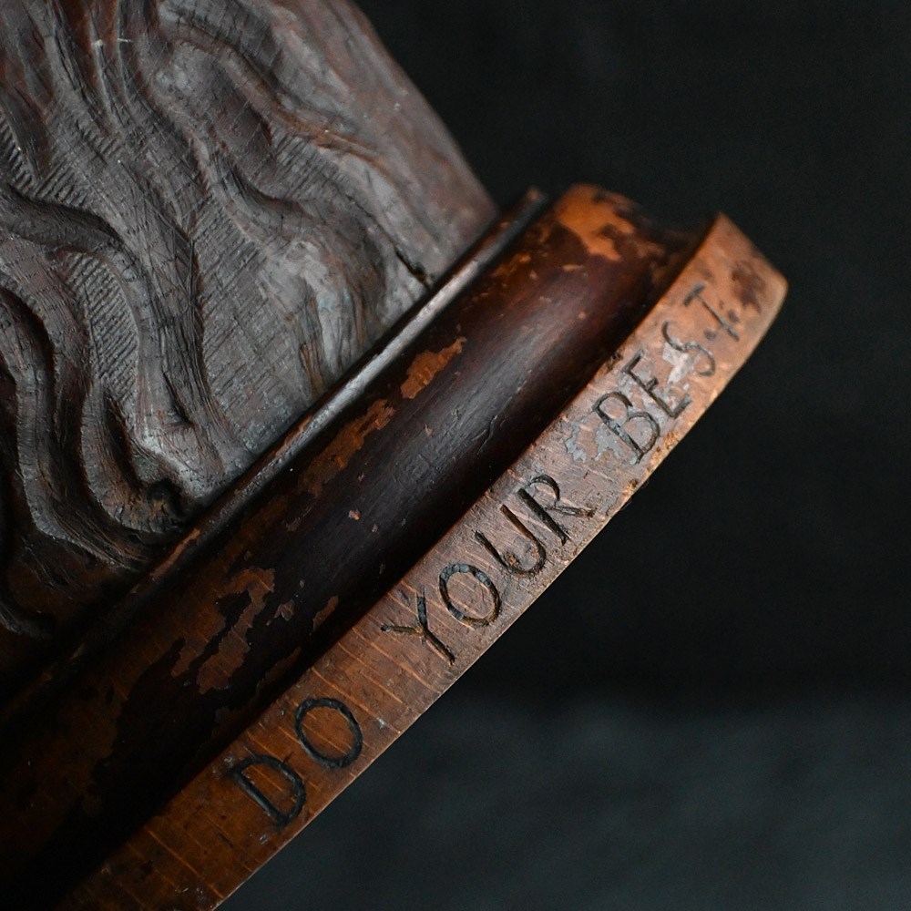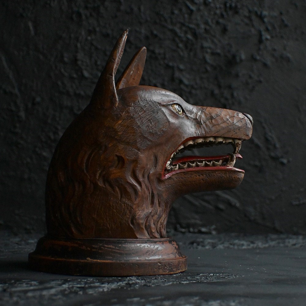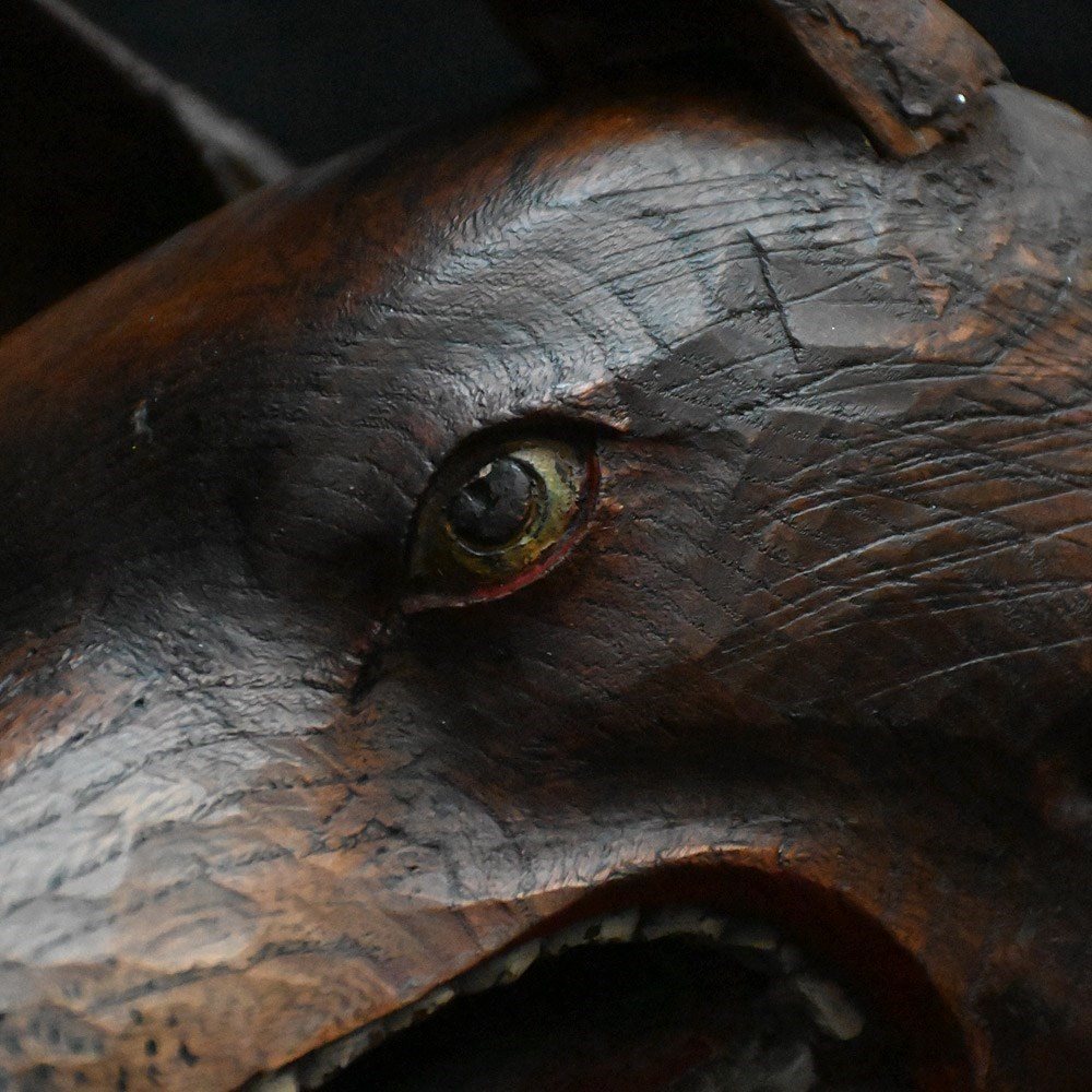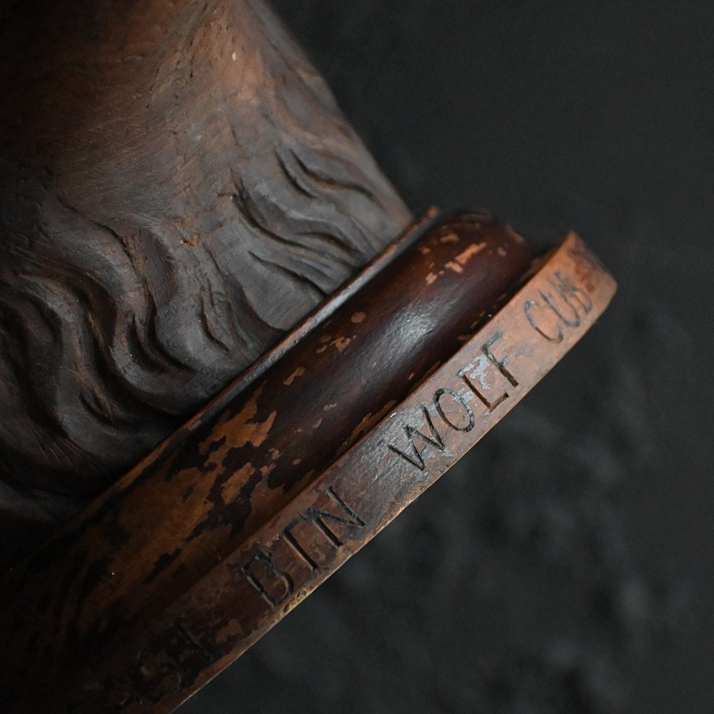 A one-off example of a folk-art hand carved Wolf Cubs social club ceremonial bust. Hand carved from sections pieces of pine, hand painted detail with carved message at its base stating “Do you best” & BTN Wolf Cub. Uncovered in Brighton (England) earlier this month.