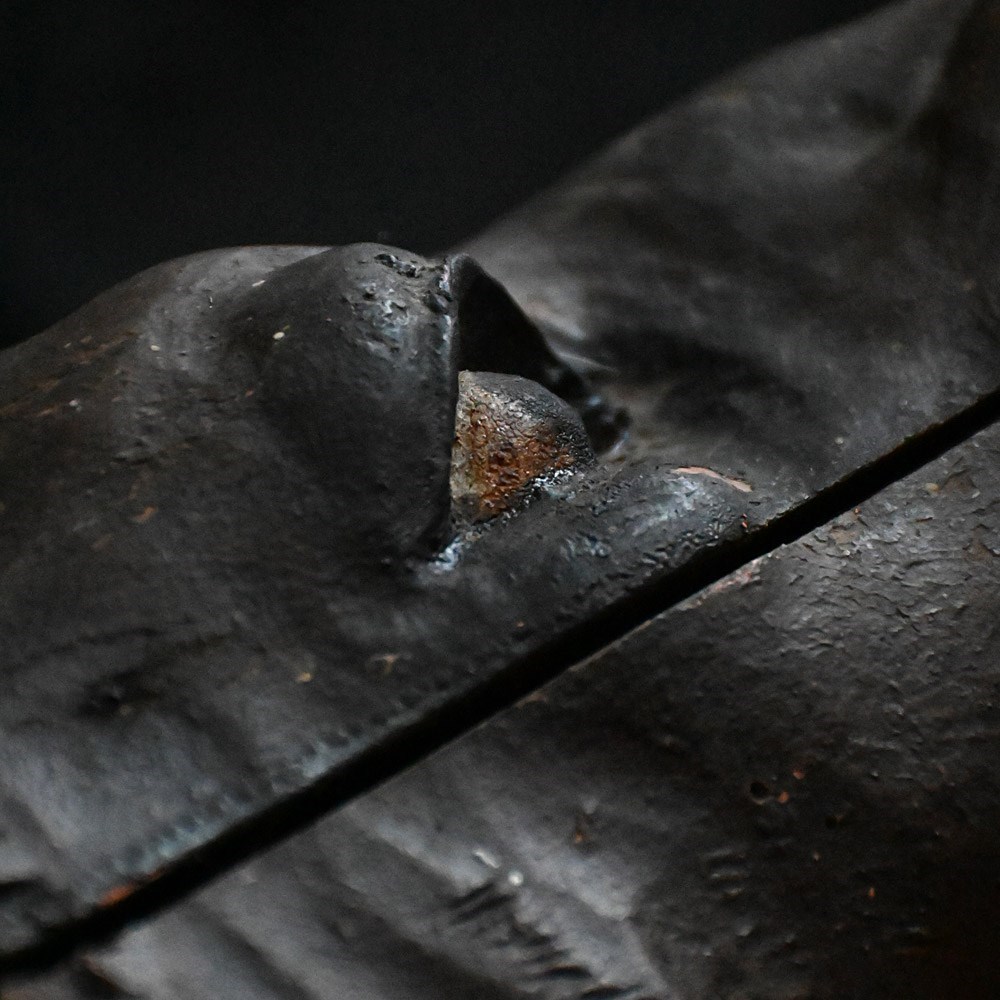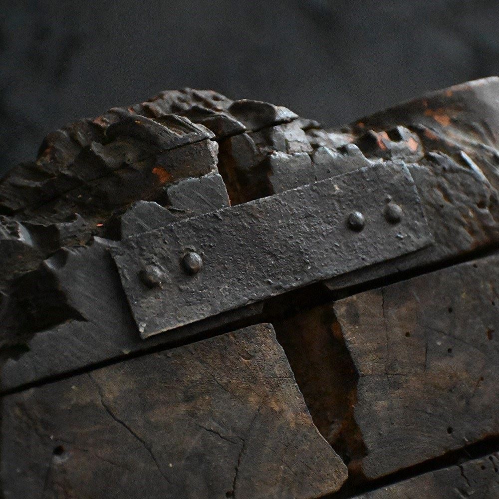 An amazing artifact uncovered from a private collection in Paris earlier this month. A handcrafted section wood wolfs head. With its original mounting bracket still in place, hand painted detail with lots of natural age. We have been informed this artifact was originally discovered in a hunting lodge where this object was displayed at the main entrance hallway.