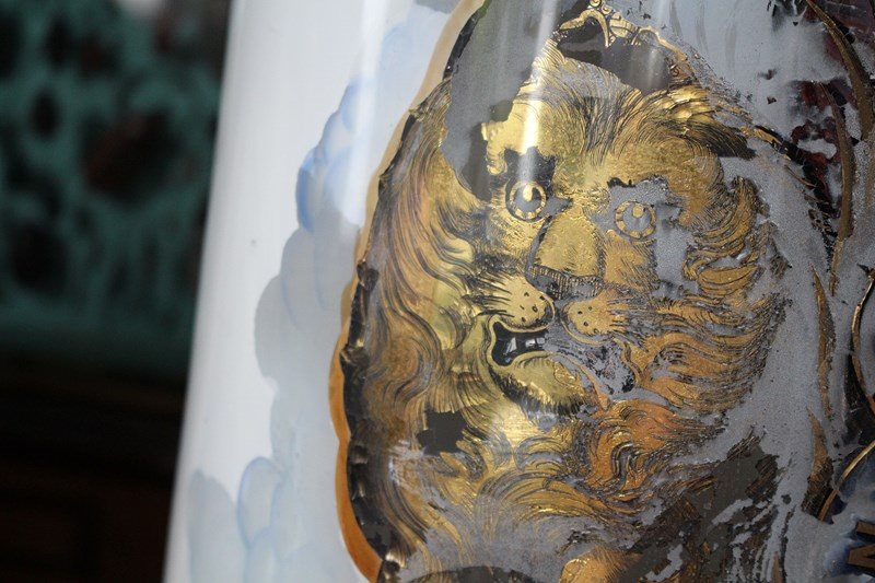 Likely produced by Lynch & Co, these were fashioned for the royal pharmaceutical society and the jar bears their coat or arms.