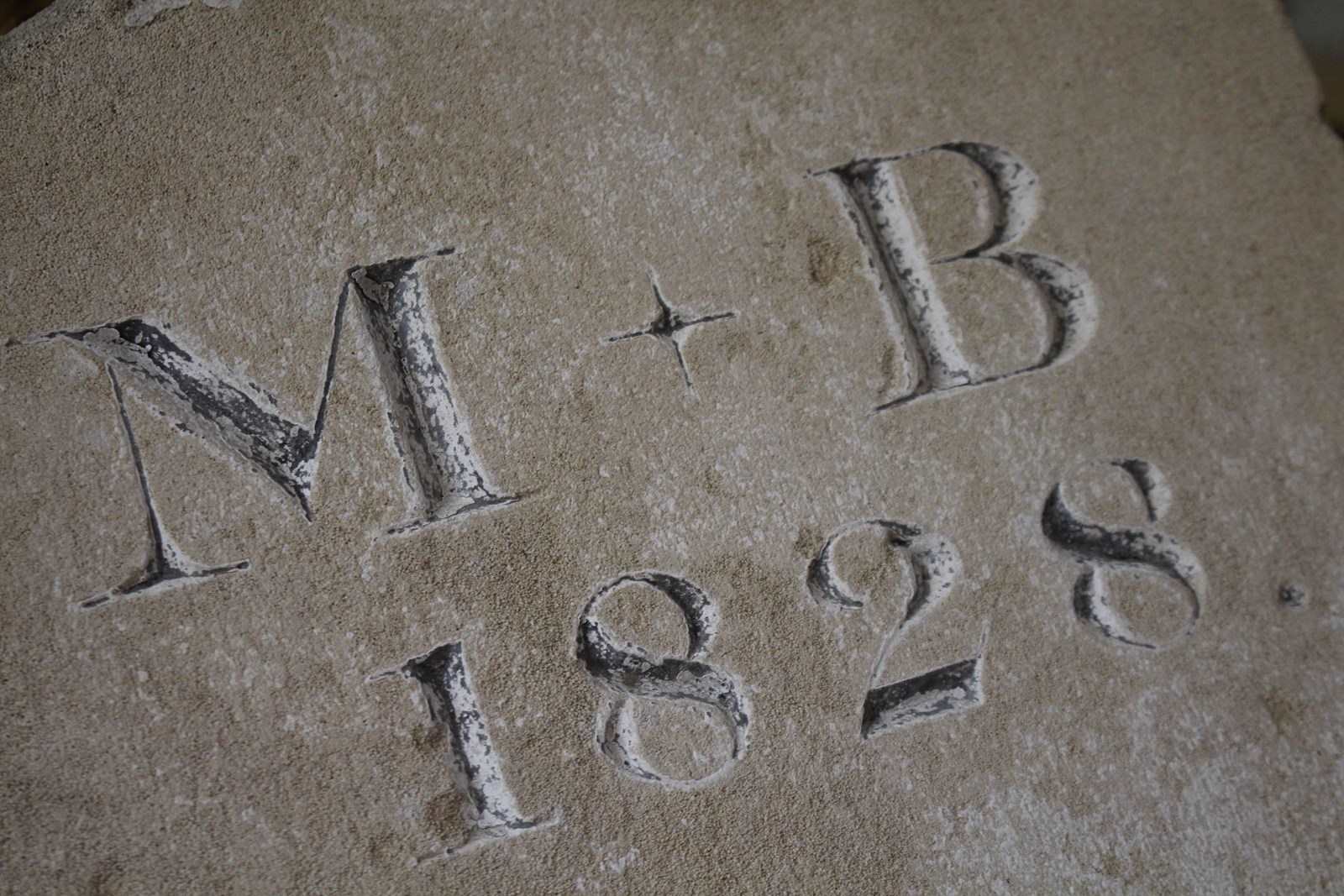 Early 19th century grave marker, dated 1828 with the initials M B.