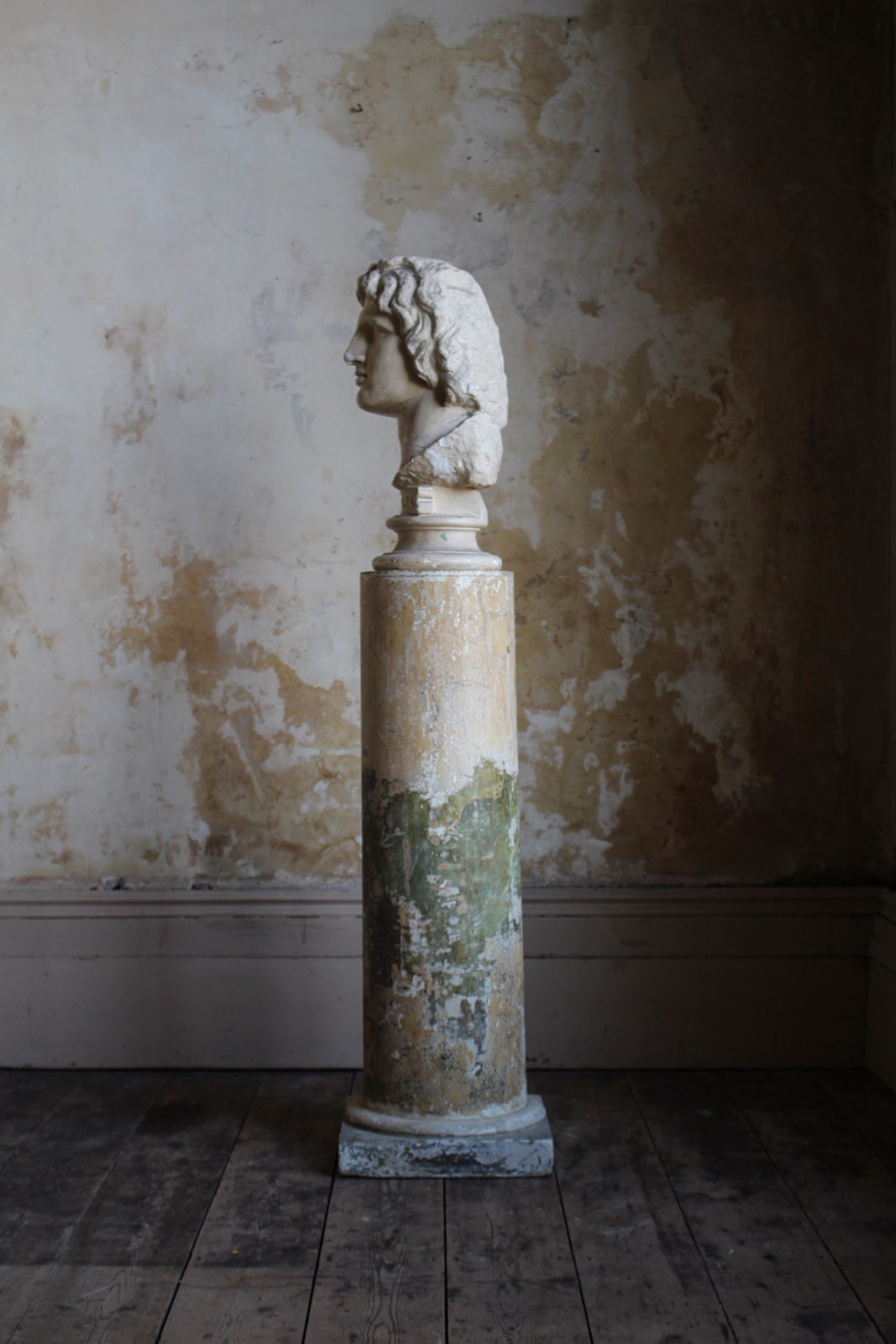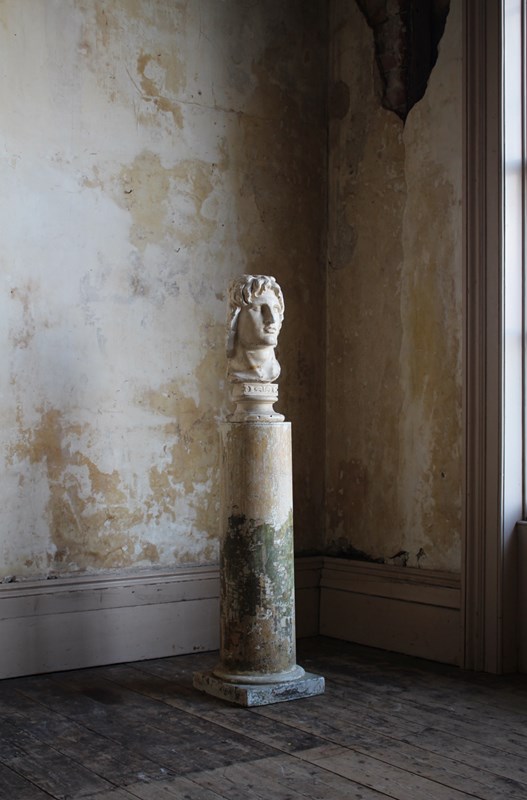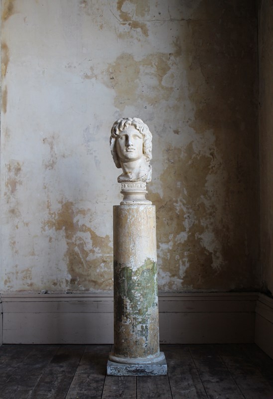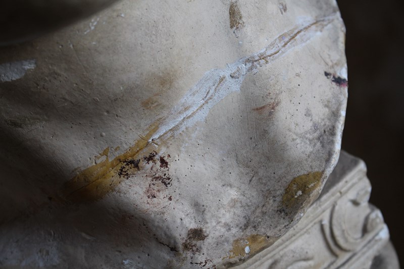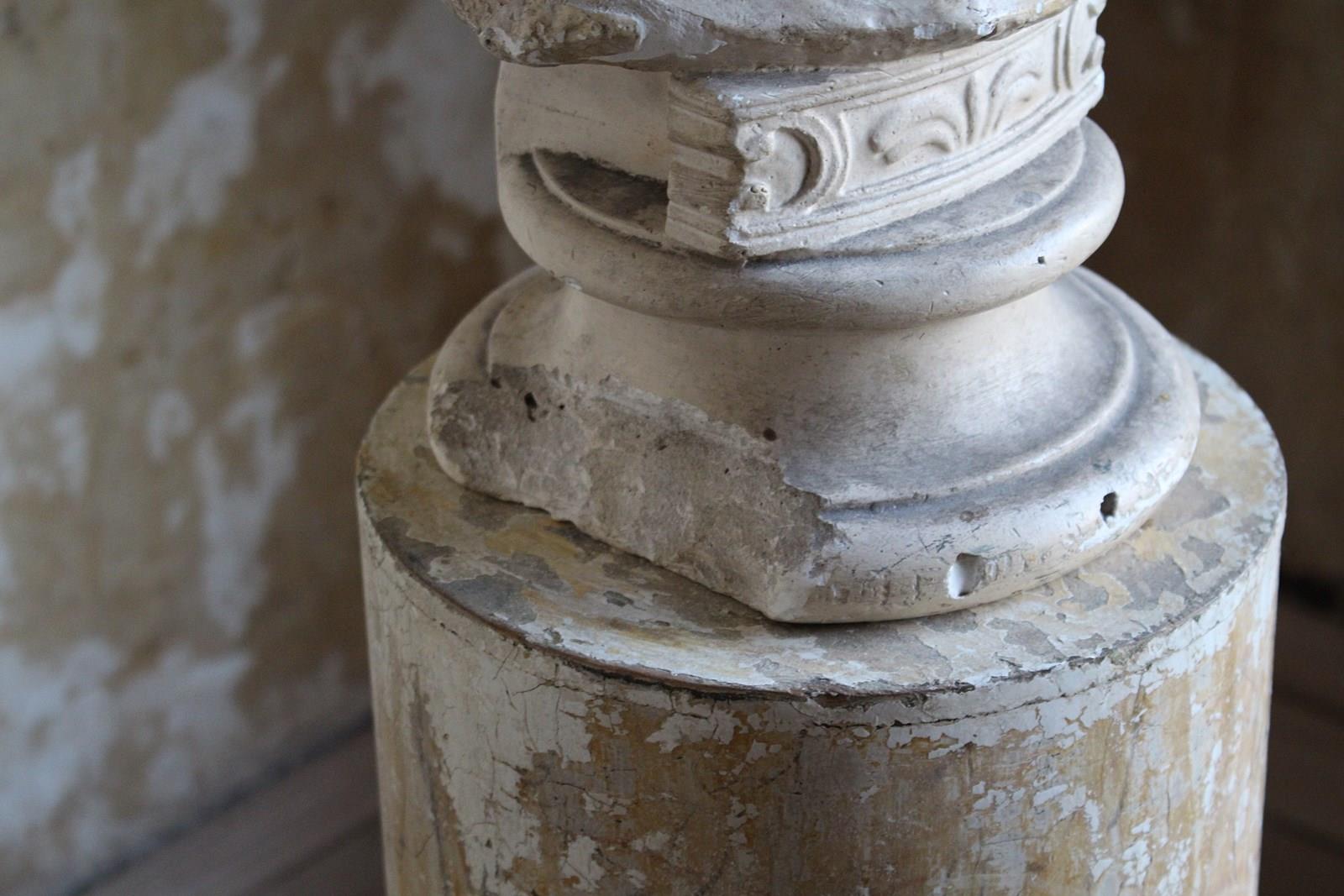 Age related discolouration and abrasions, to both plaster bust and column.