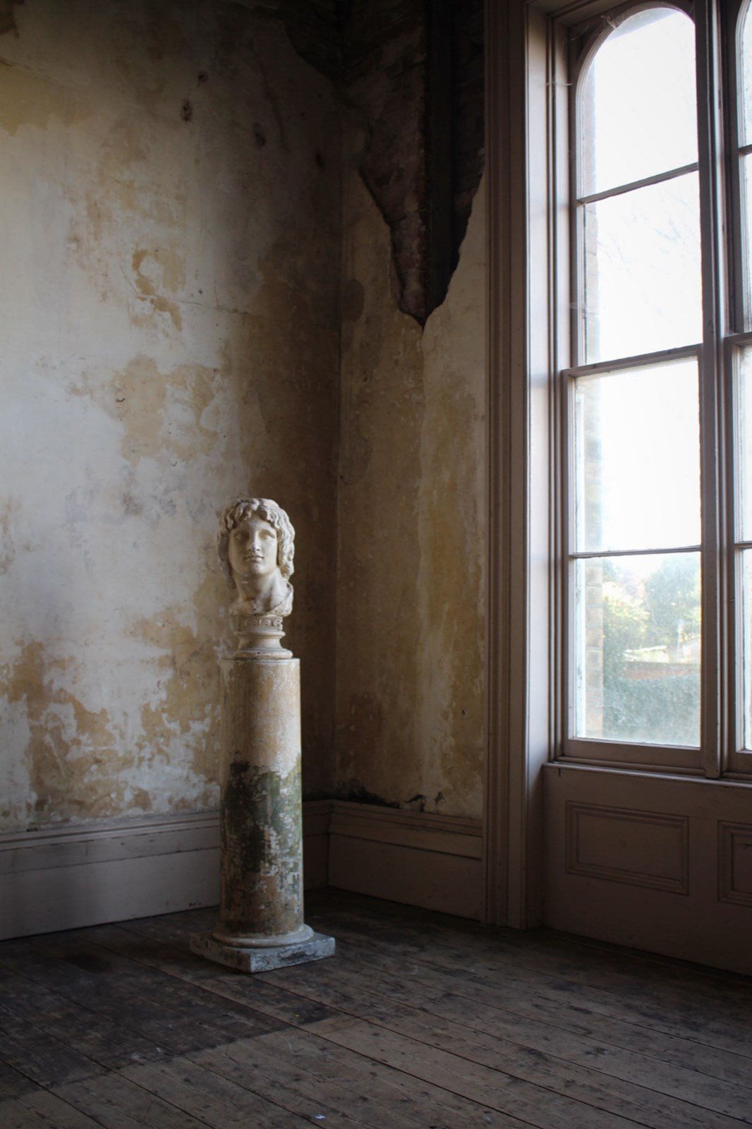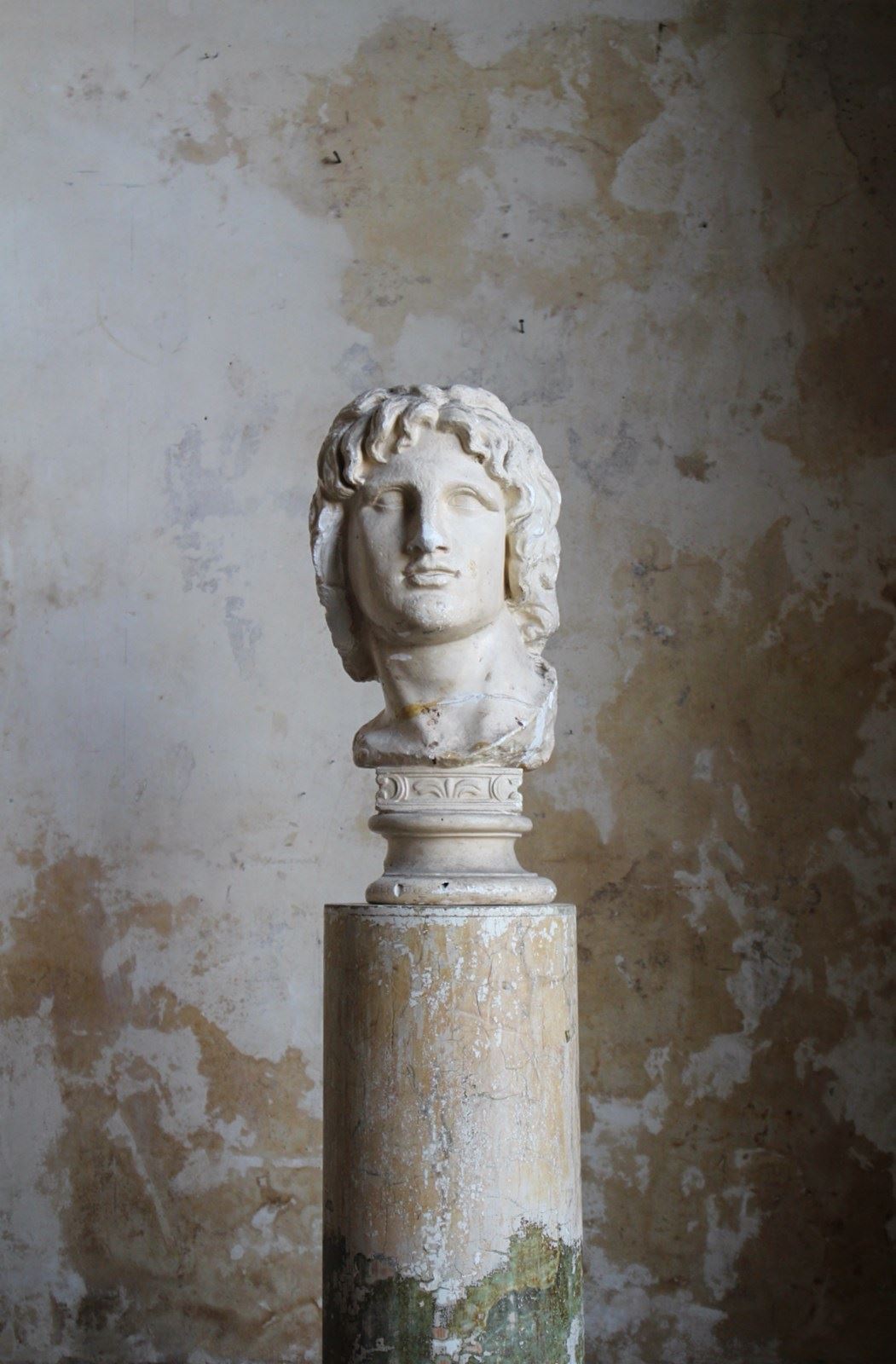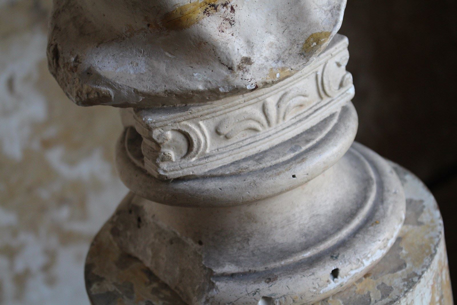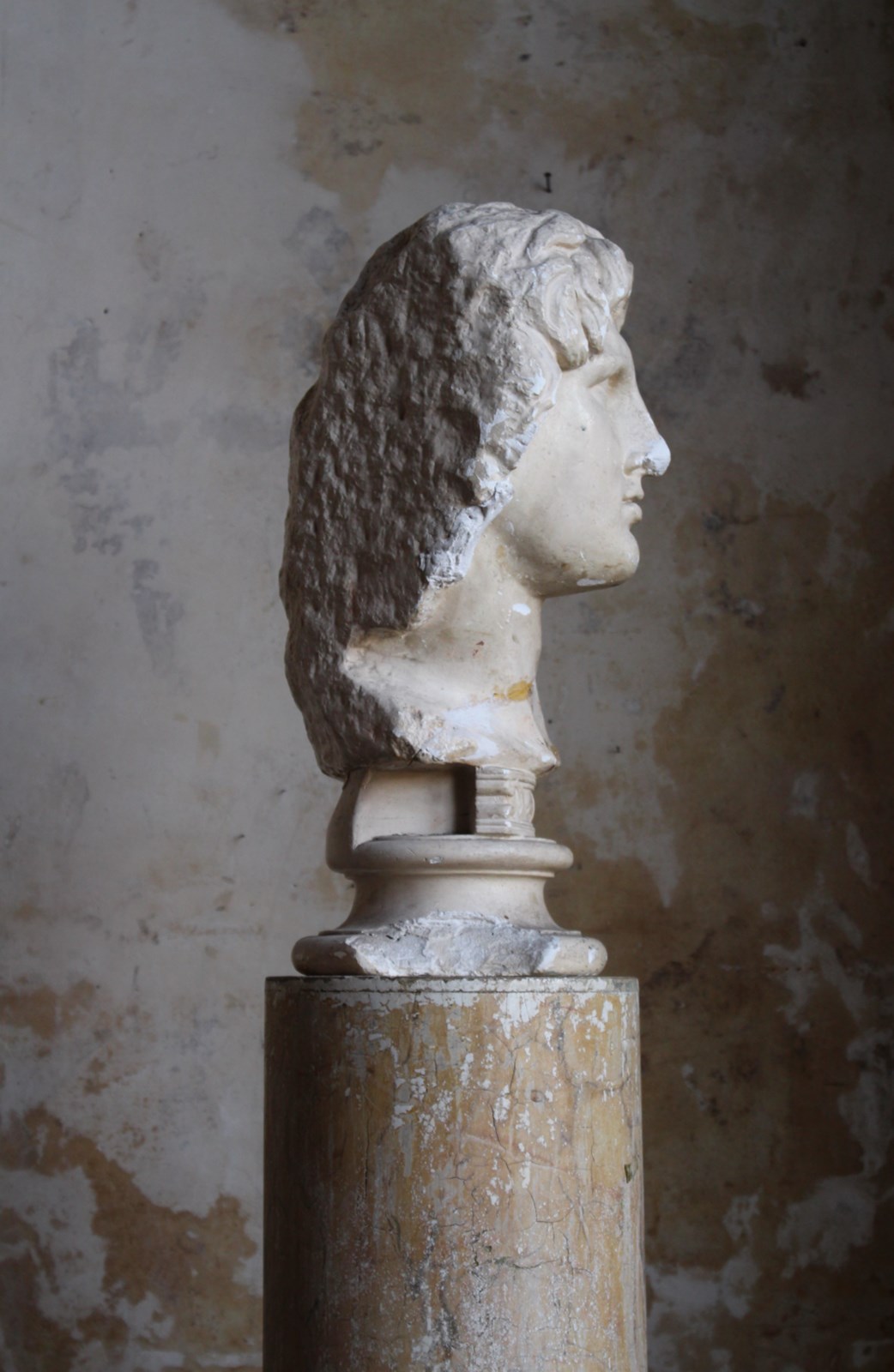 Age related discolouration and abrasions, to both plaster bust and column.