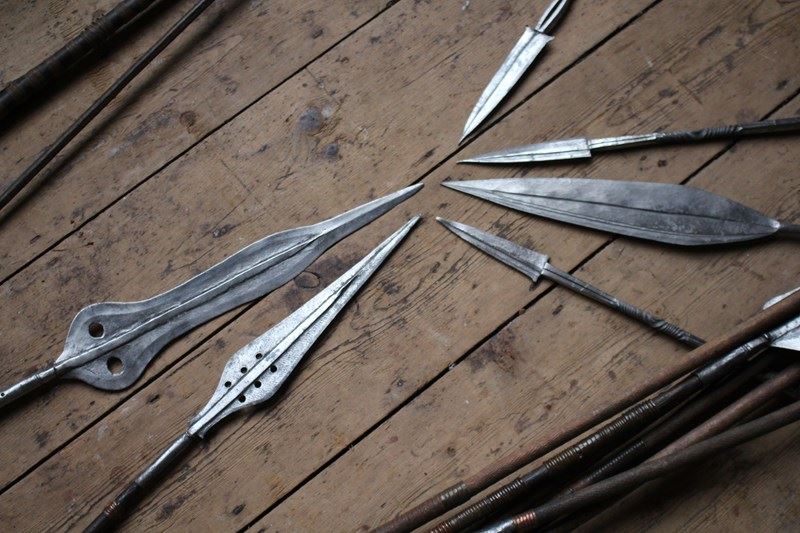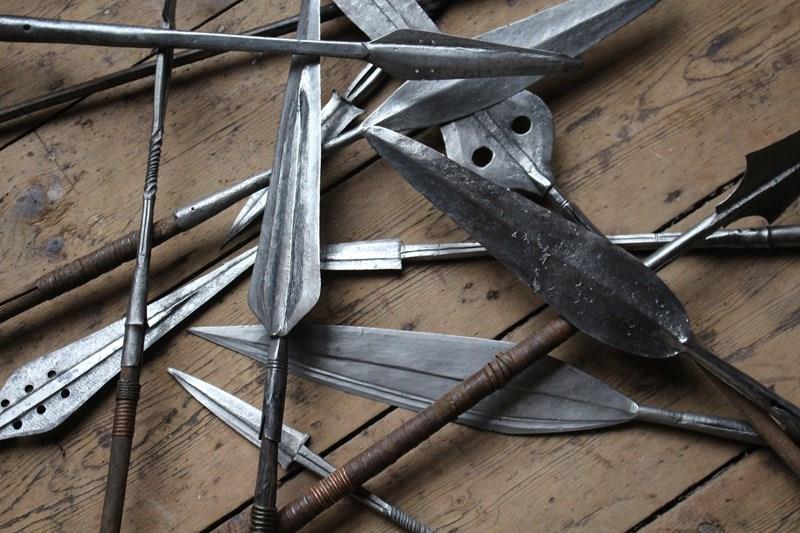 A collection of 22 African spears, acquired by Adolphe Cryns (born 1901) who lived and worked in Kinshasa, Democratic Republic of the Congo