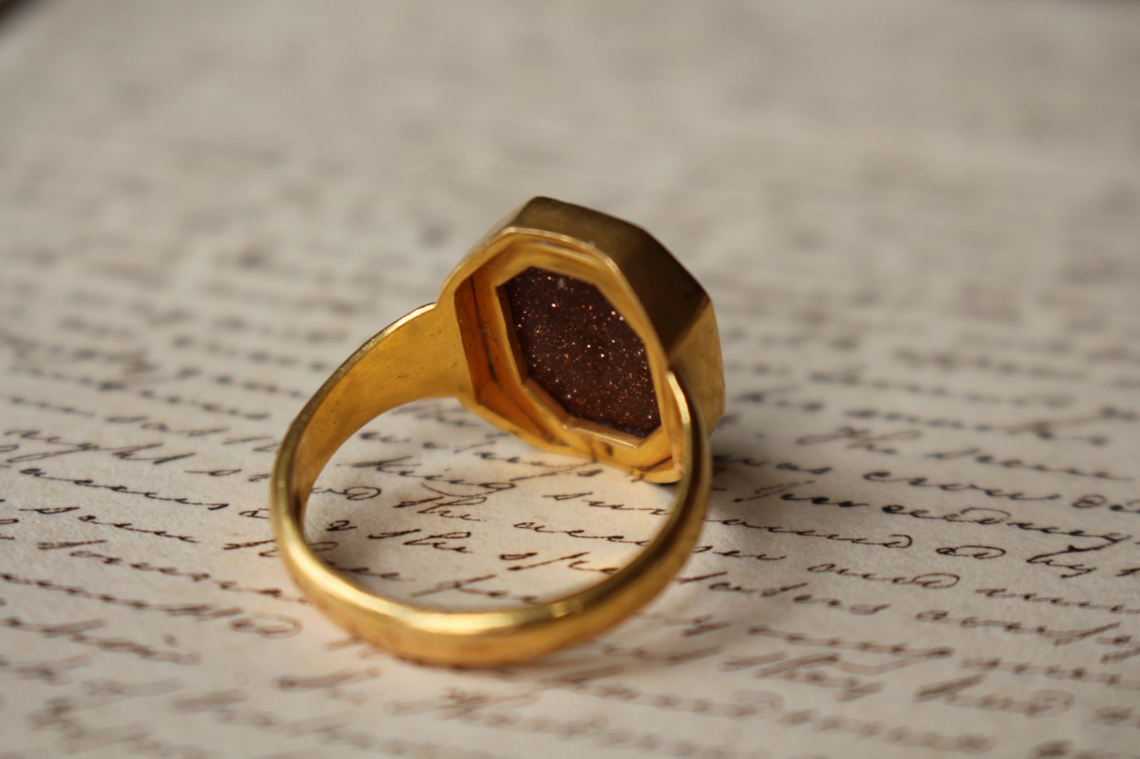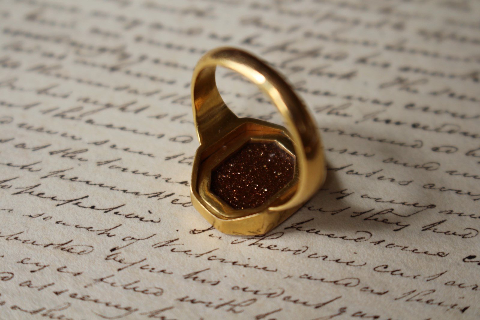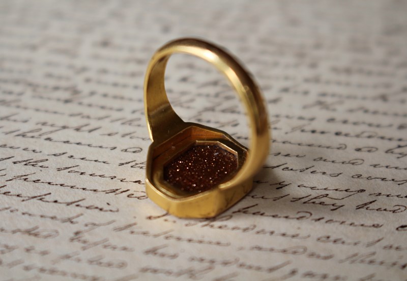 The gold mount echoes the octagonal shape of the goldstone and is crafted in 22 carat gold (and hallmarked) and made especially for the mosaic.