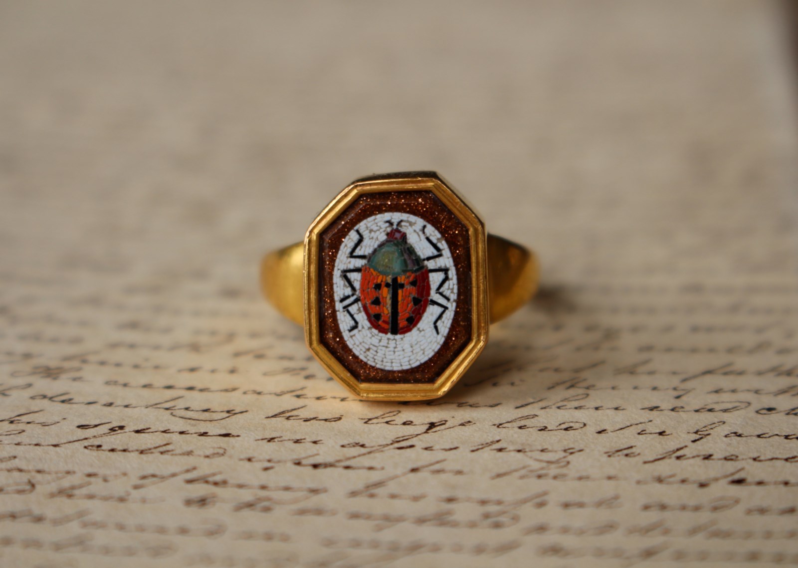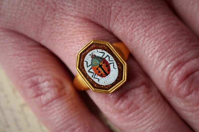 Circa 1790 Micro Mosaic Lady Bird Ring