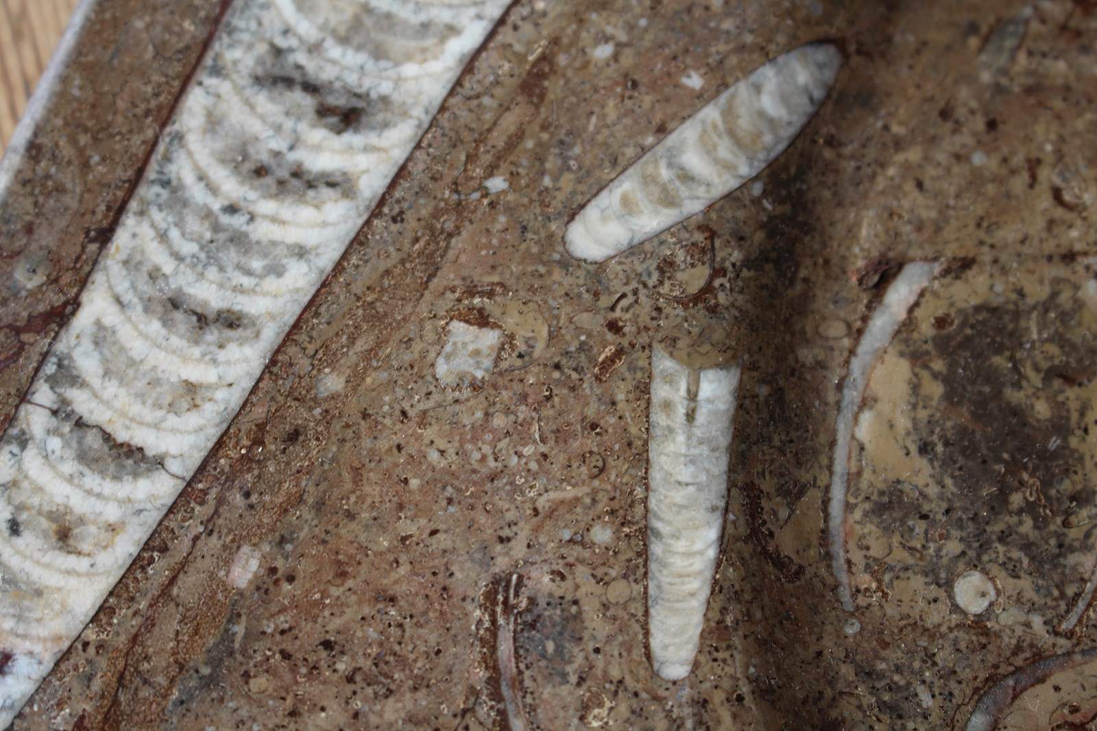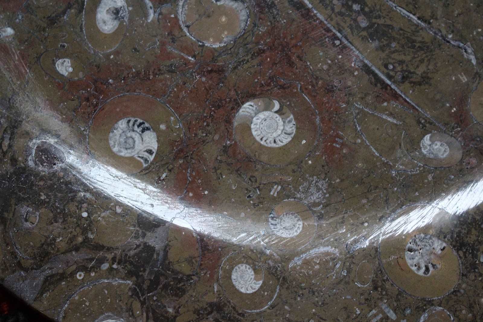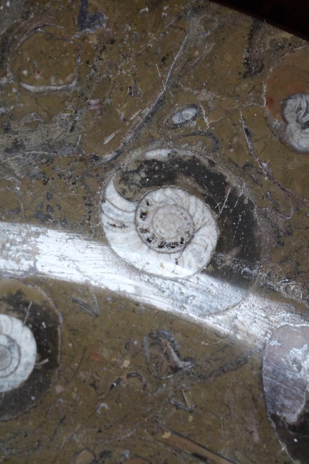 The stone likely originates from Morocco, Devonian Period (400 - 350 million years ago)