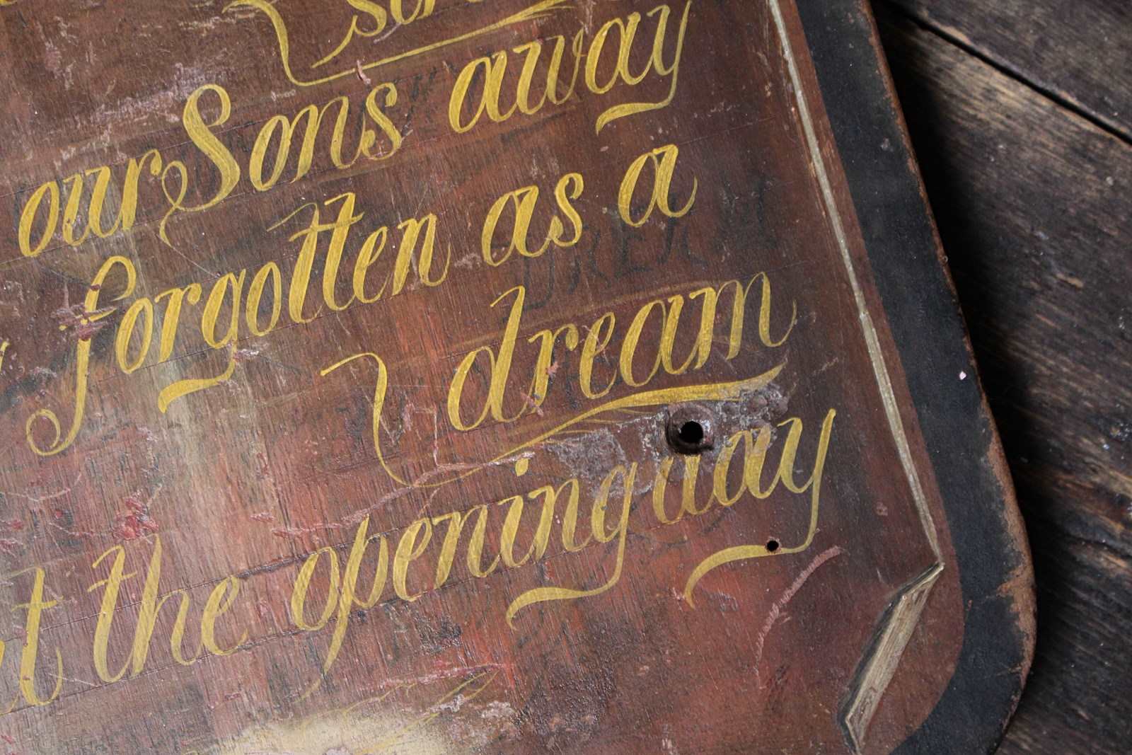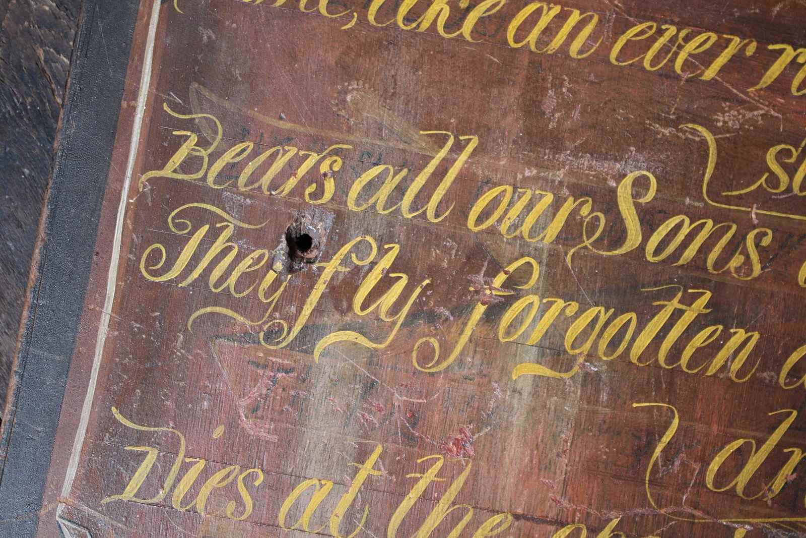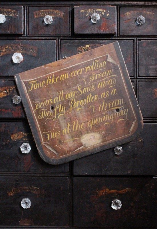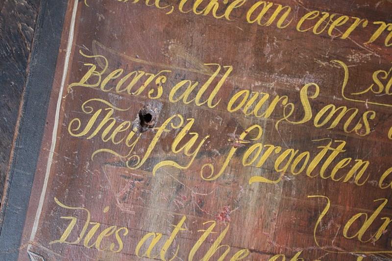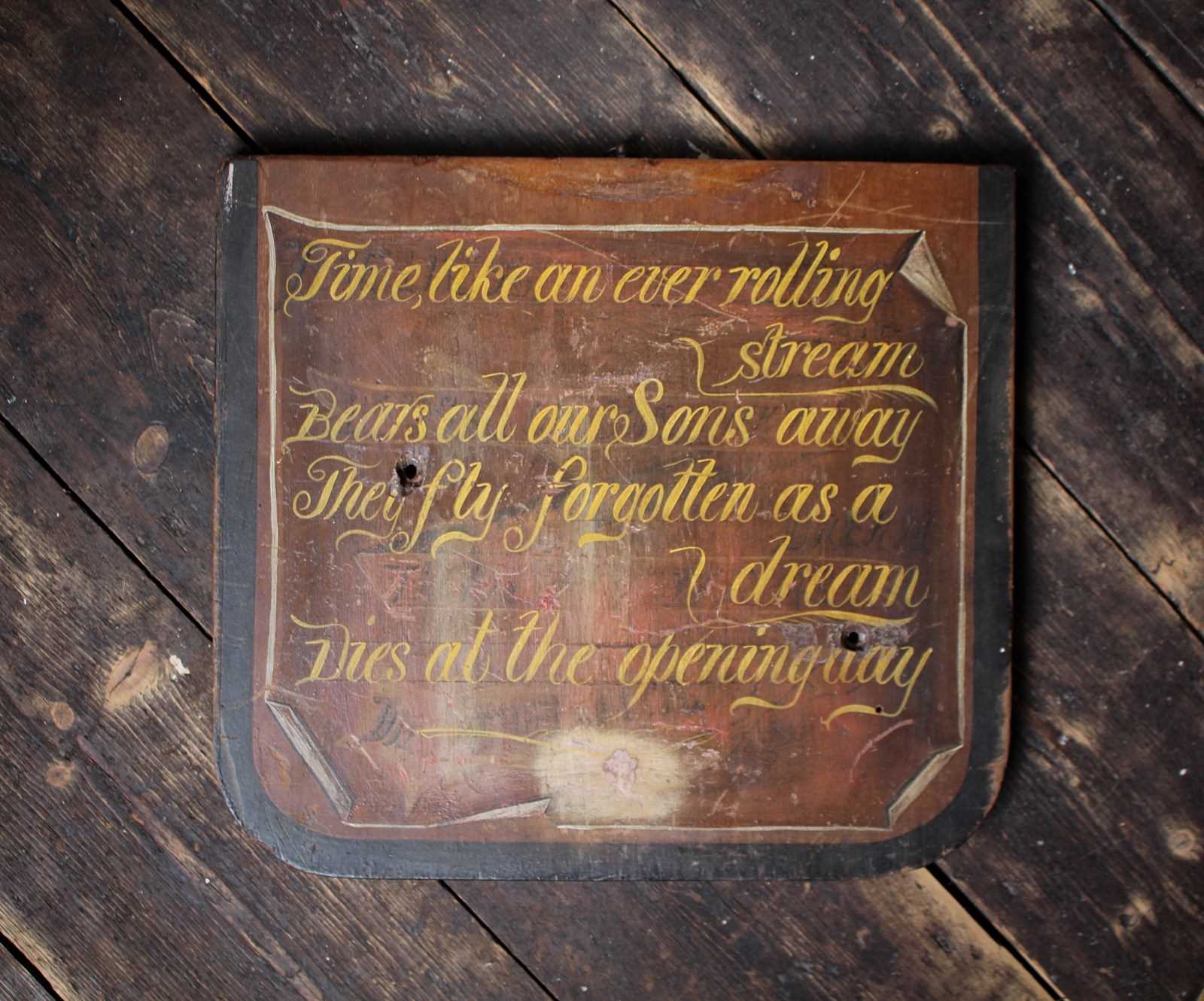 19th century, hand painted pine panel bearing a passage by Isaac Watts