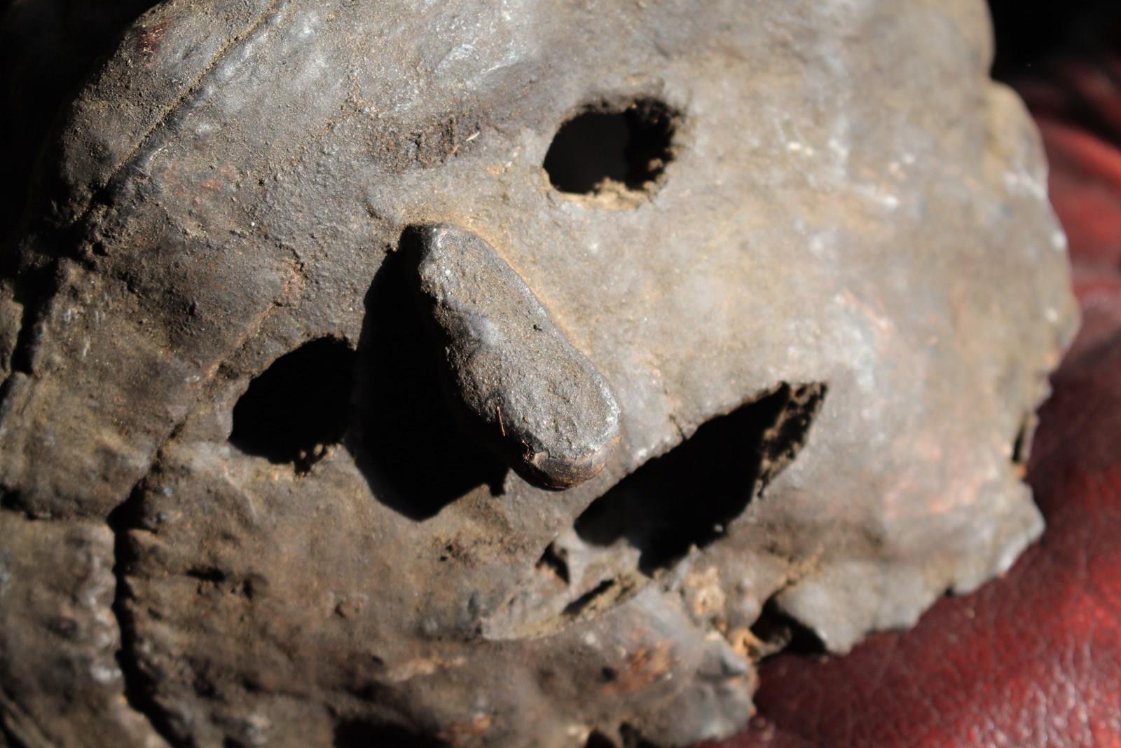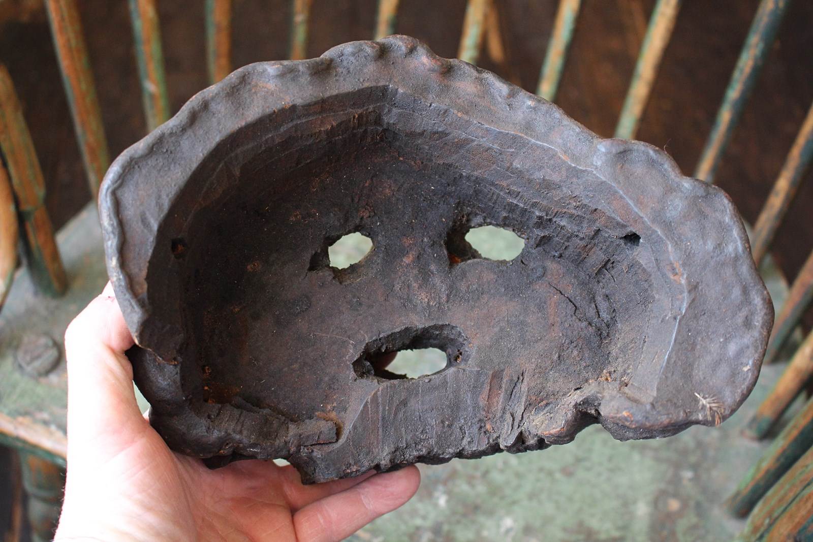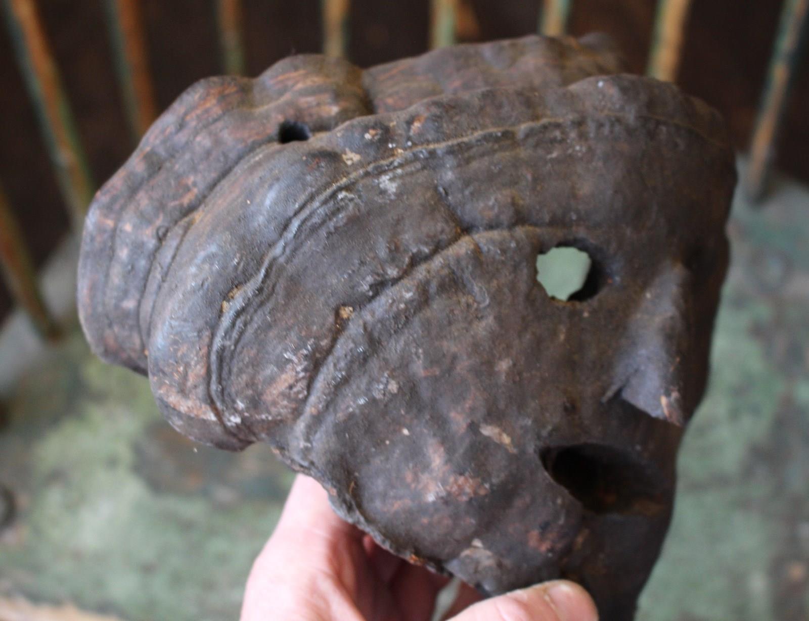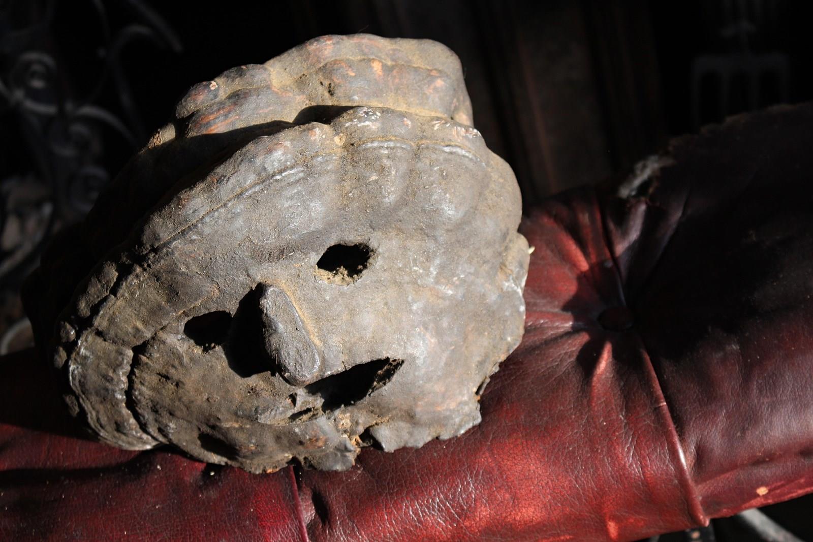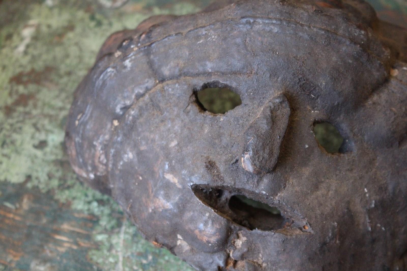 These masked also know as 'fog eaters' originate from the Nepalese mountains, carved from a dried polypore fungus also known as bracket fungi, and would have hung outside of properties in primitive villages to ward off evil spirits.