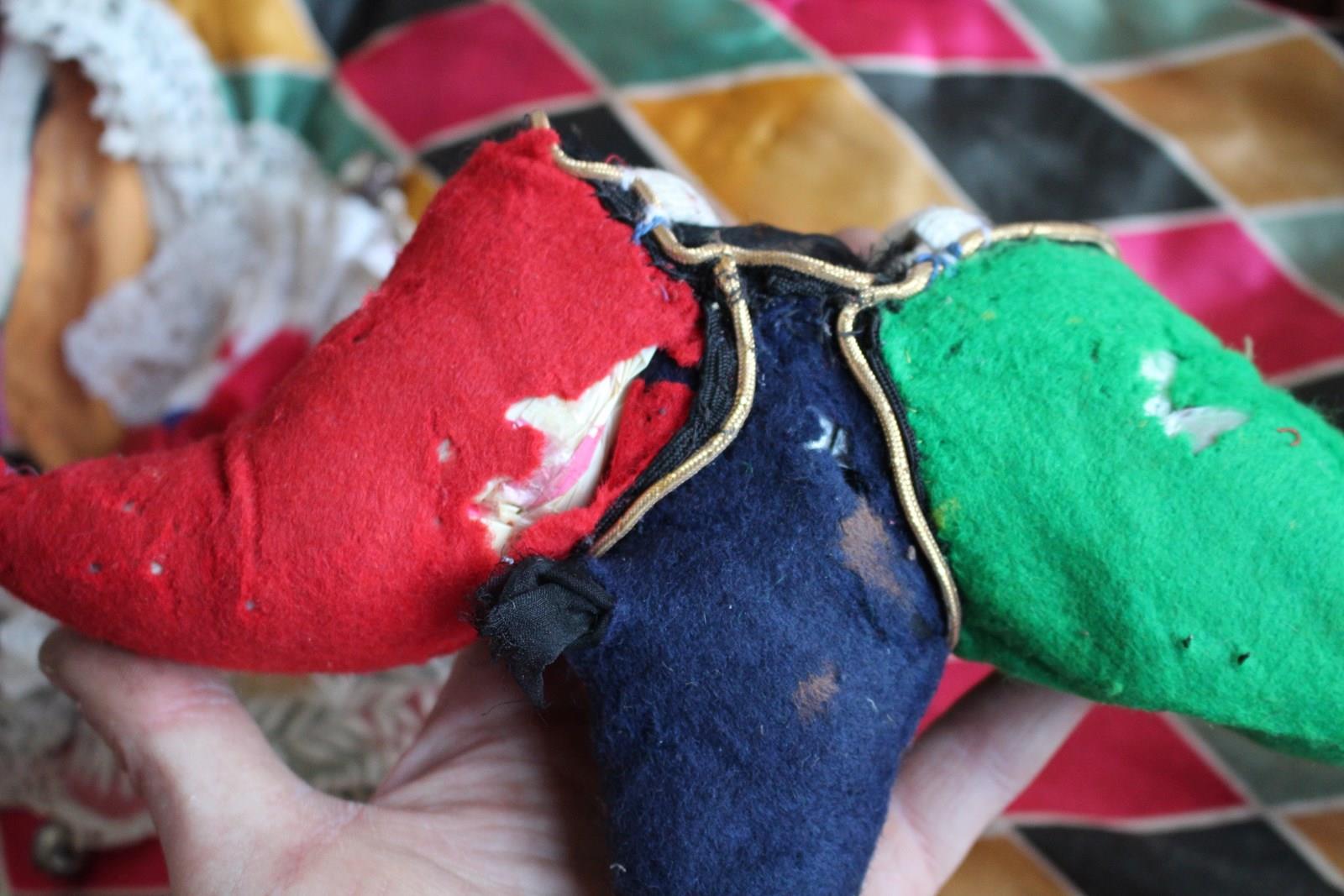 Mid 20th century in age, a hand full of nibbles and nicks to the main costume itself, some larger areas of wear to the backs of the hat and glove please refer to the photographs provided.