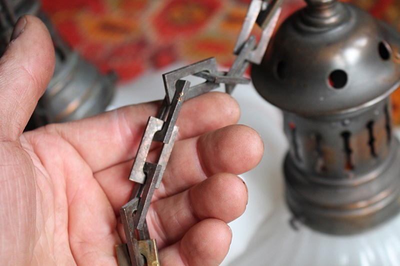 The lights comes ready for installation, with a new b22 bulb, three core silk flex, two reproduction antique copper ceiling hooks