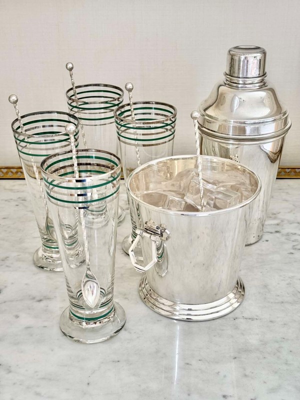 4 Silver & Enamelled Glass Ale Or Cocktail Glasses C1950