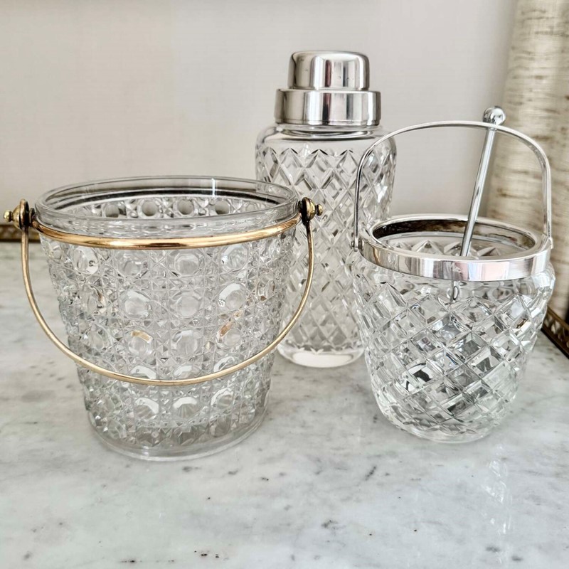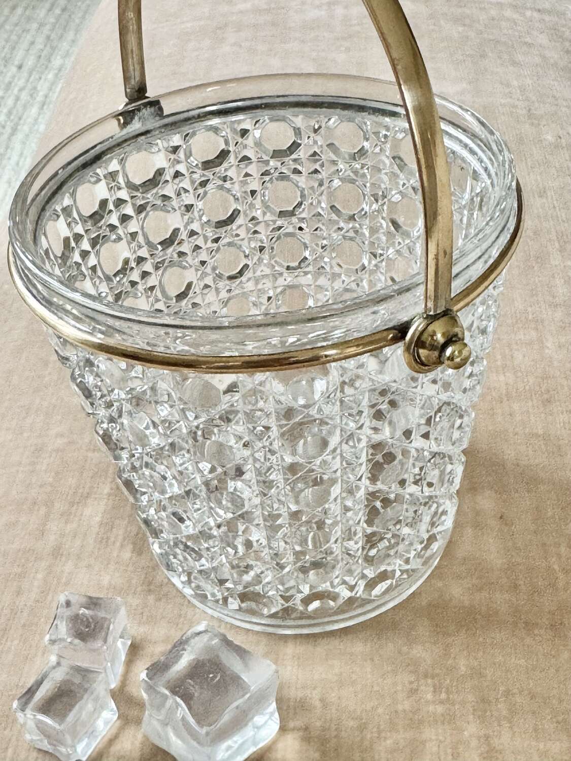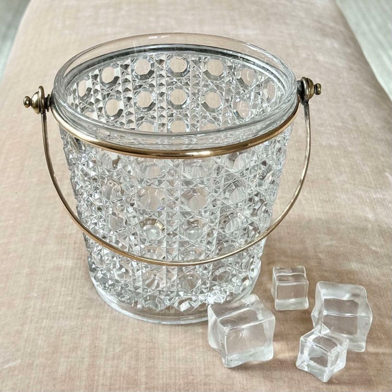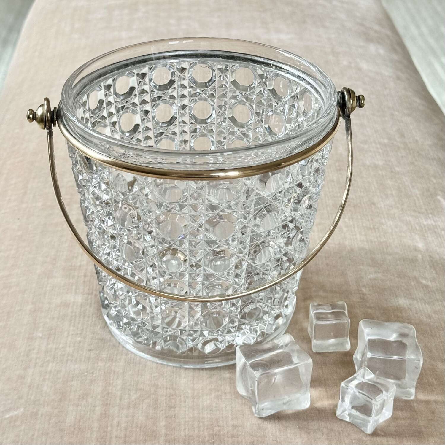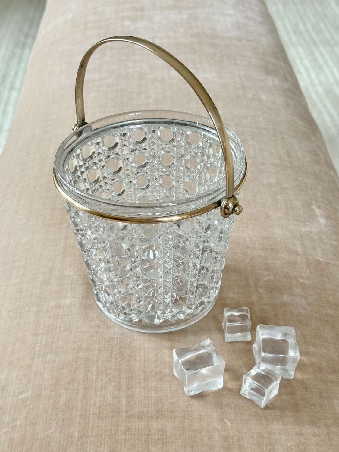A rare and very pretty Baccarat, France cut glass ice bucket with gilt swing handle and mount and removable glass ice melt tray, Circa 1930s. Baccarat stamp to the base. Totally exquisite, this fine specimen makes a stunning addition to the home bar.