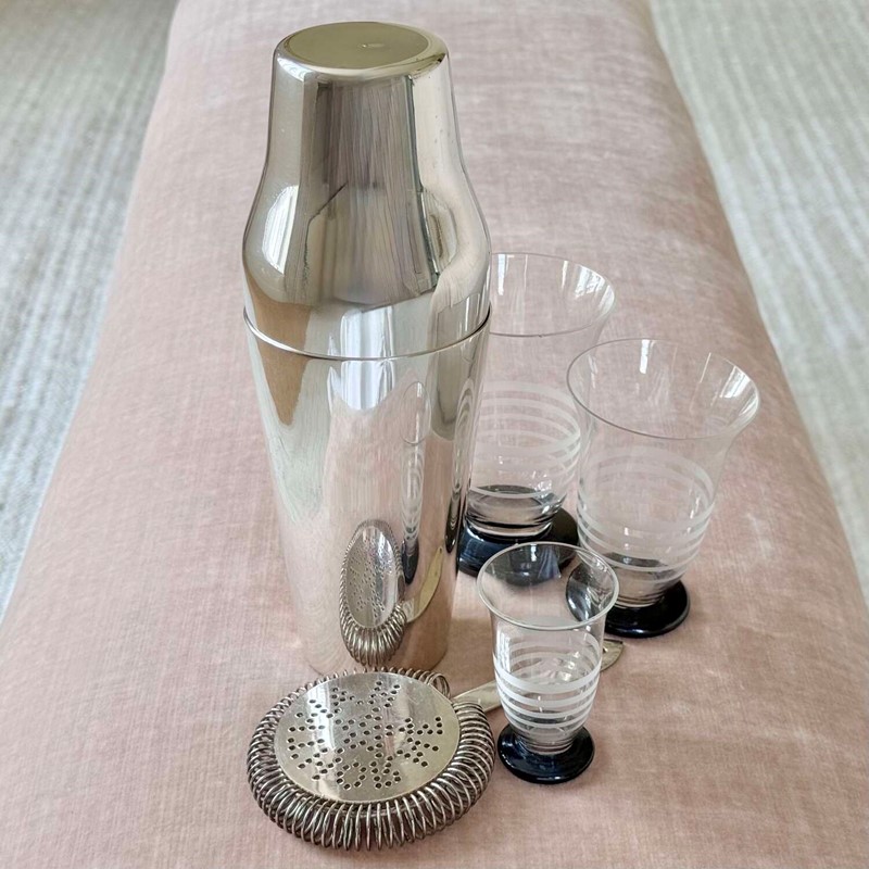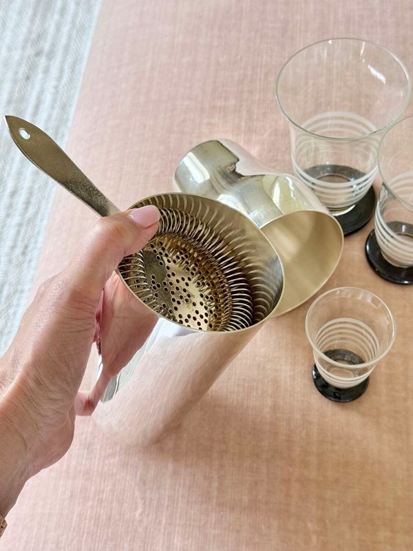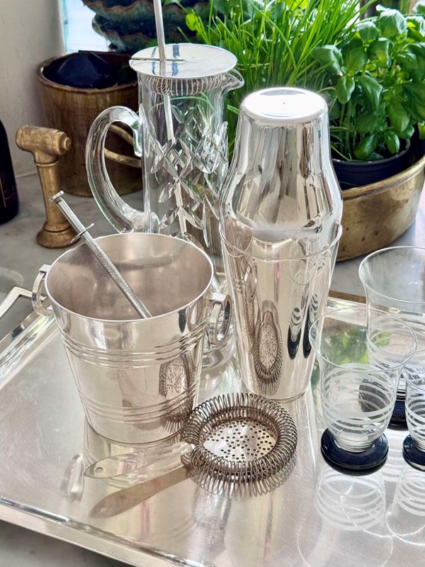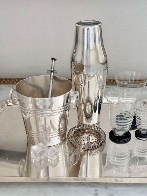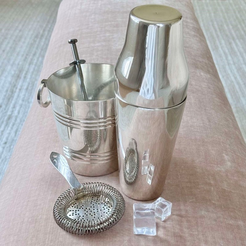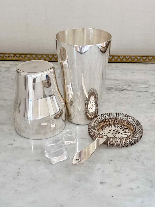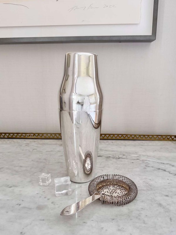 An excellent Art Deco era French silver plated 'Parisienne' shaped two-piece cocktail shaker, Circa 1920, with makers mark for Mailhan & Mailhan, Paris. This shape is sometimes called The Barman's cocktail shaker because top hotel barman preferred the easy two-piece and break apart method of cocktail making.Mailhan & Mailhan was a French silversmith and manufacturer based in Paris, active from 1883, known for producing high-quality silver-plated items in competition with Christofle. They are particularly noted for producing silver-plated barware and tableware, including cocktail shakers, but ceased trading in the early 20th Century.