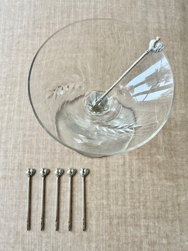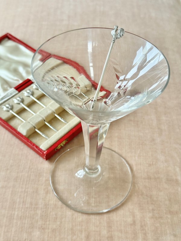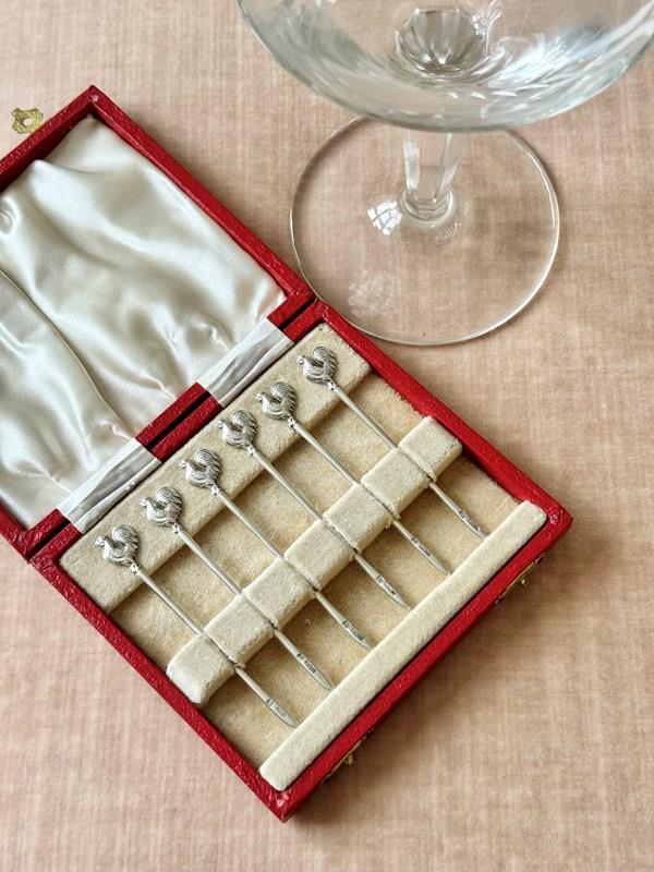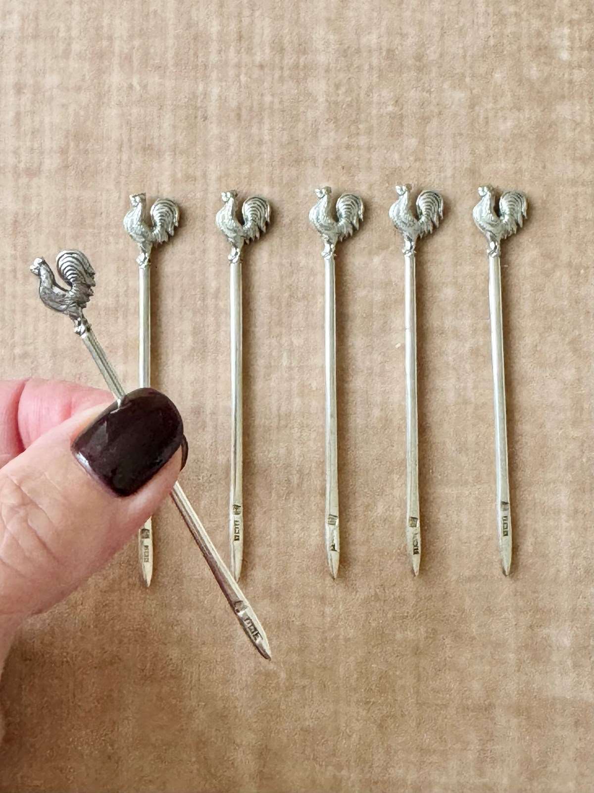 Art Deco Silver Cockerel Cocktail Sticks Set Hallmark 1934