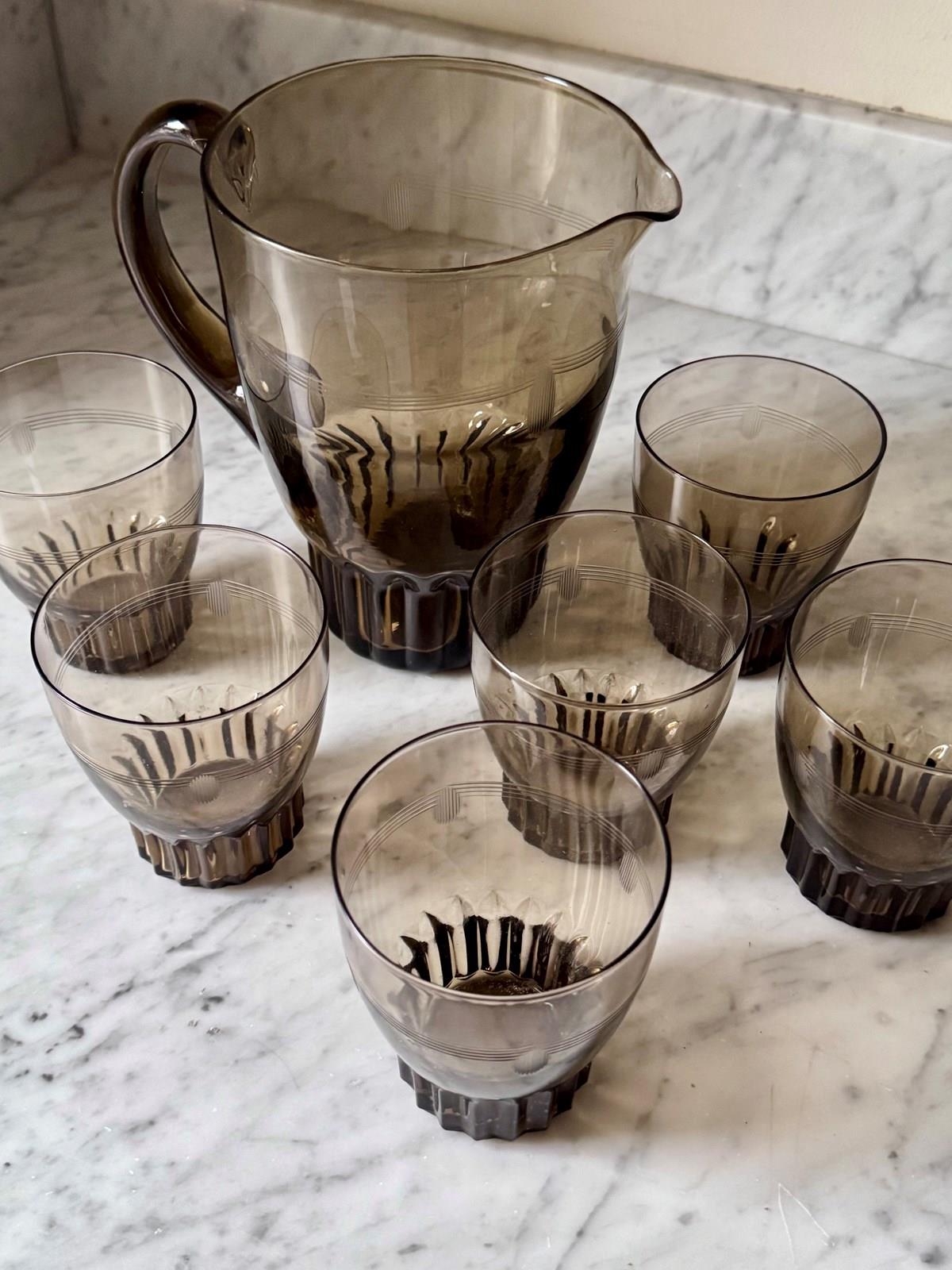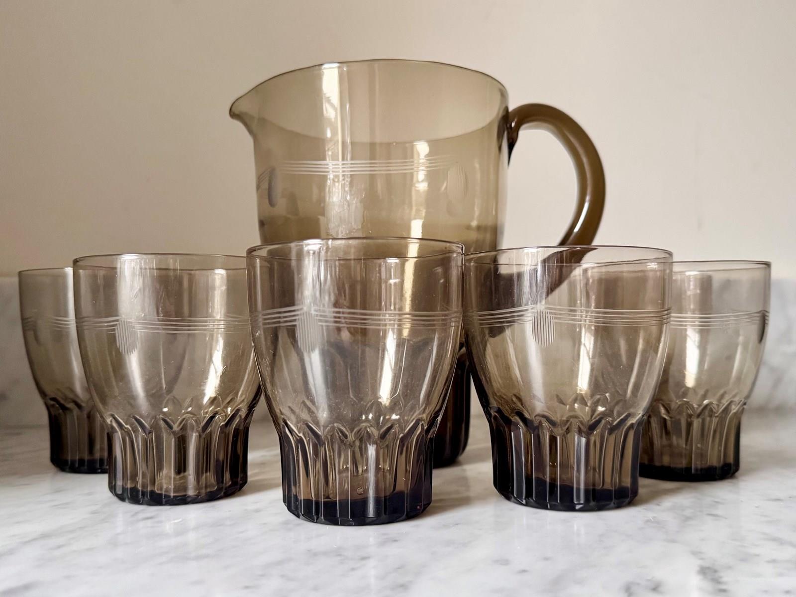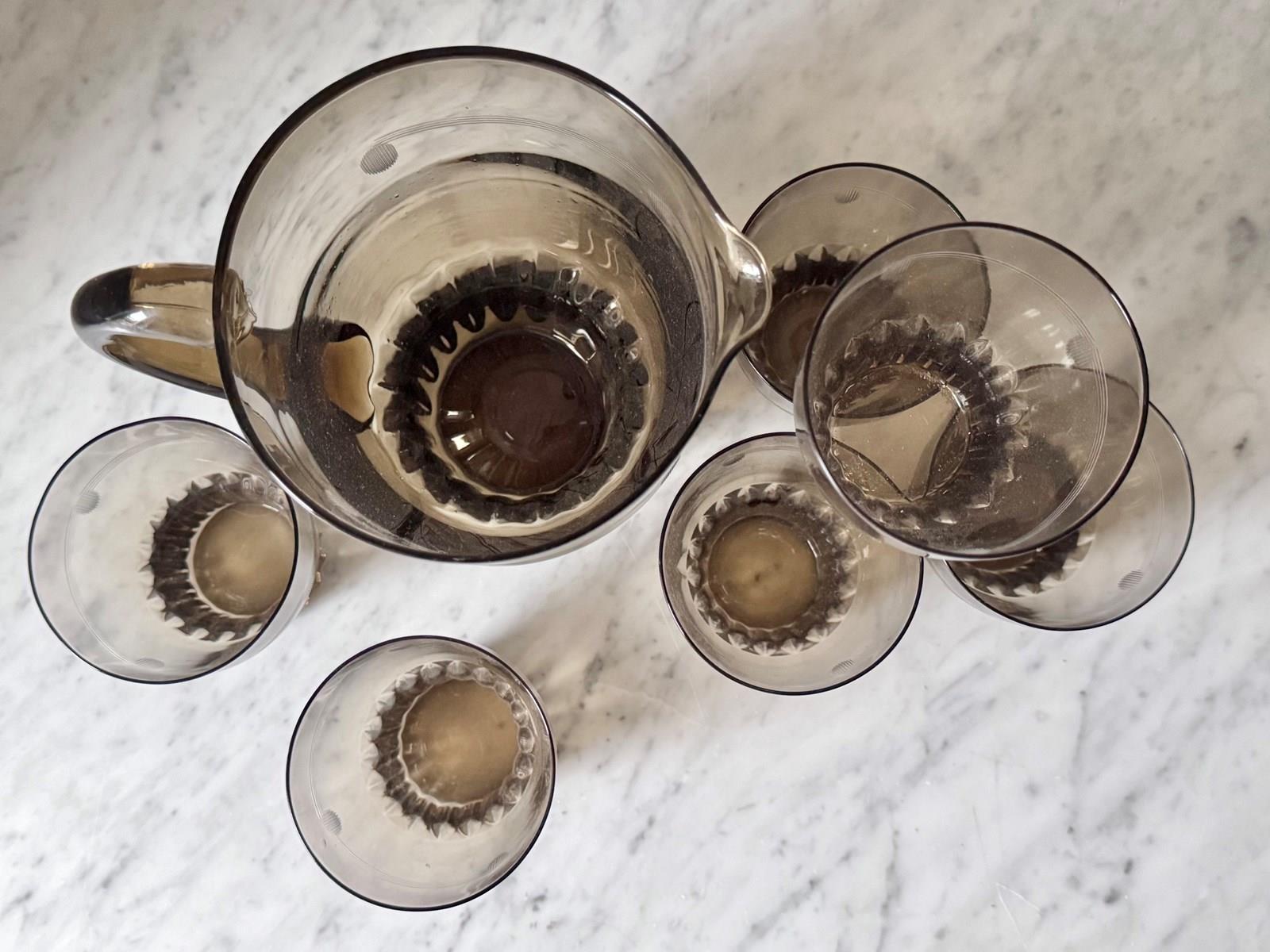 Art Deco Smoked Glass Lemonade Cocktail Jug & Glasses Set