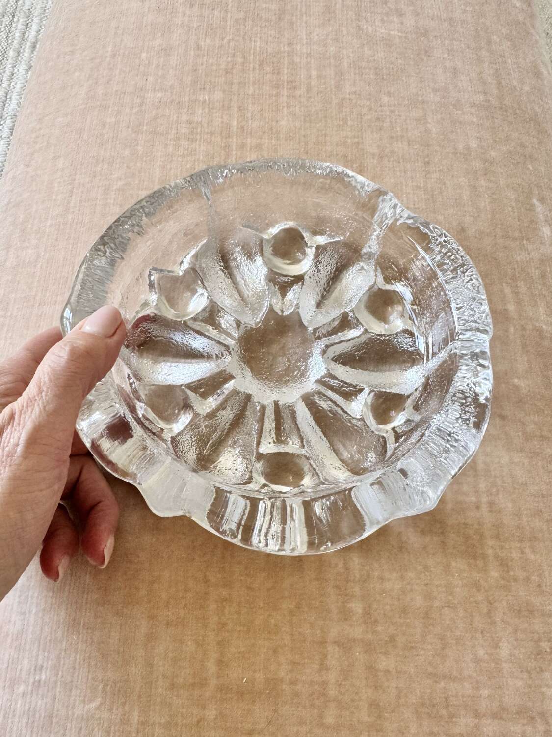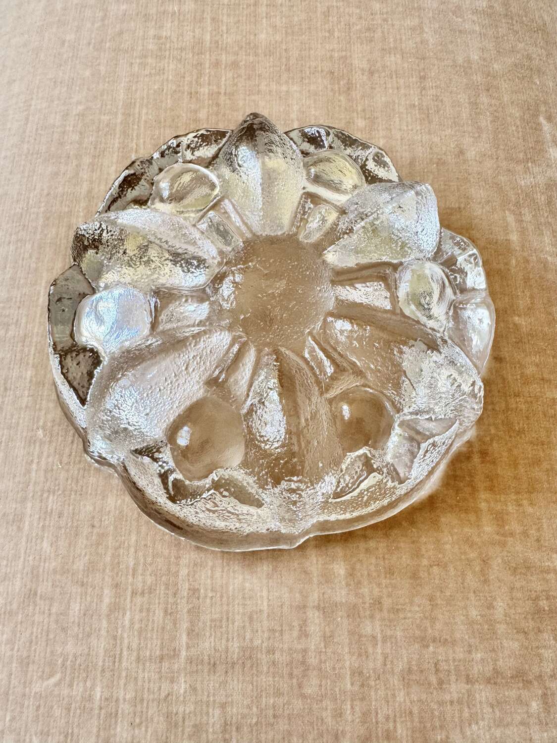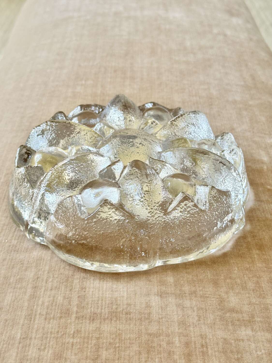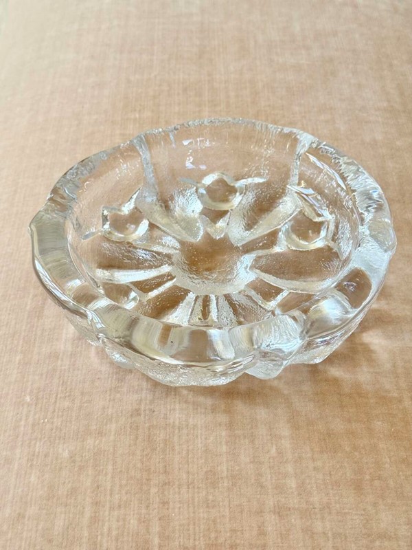 A chunky, solid glass Brutalist design decorative bowl, Circa 1970s. This Scandinavian design, probably by Orrefors, would look splendid used as a paperweight, ashtray or decorative accent.