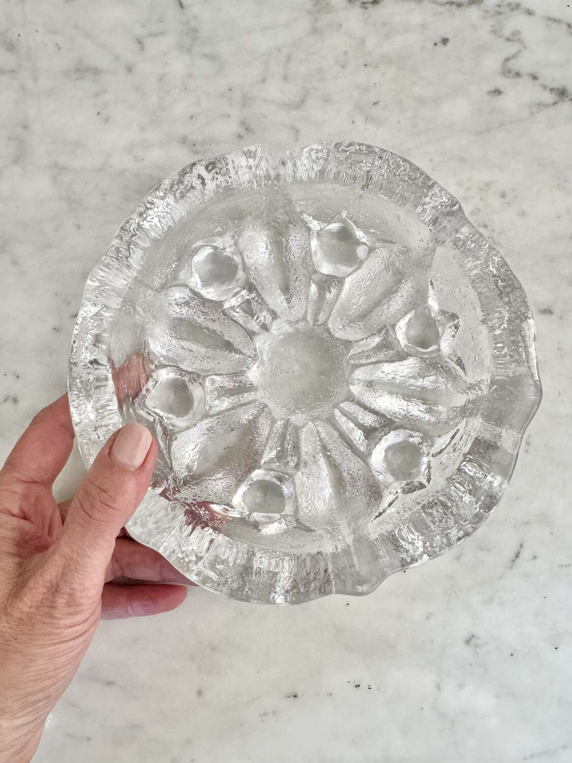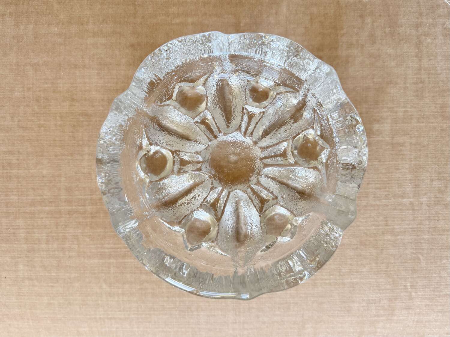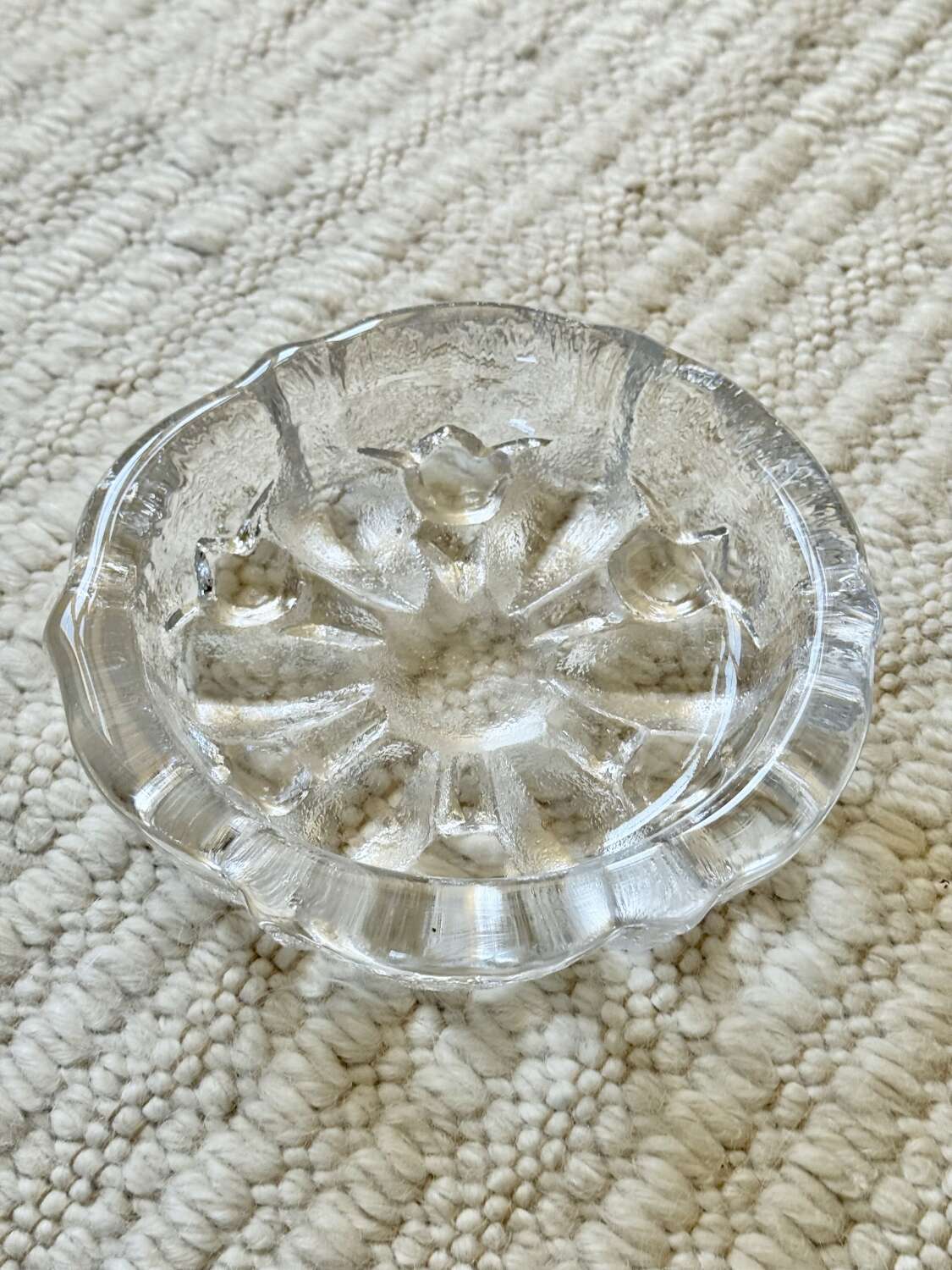 A chunky, solid glass Brutalist design decorative bowl, Circa 1970s. This Scandinavian design, probably by Orrefors, would look splendid used as a paperweight, ashtray or decorative accent.