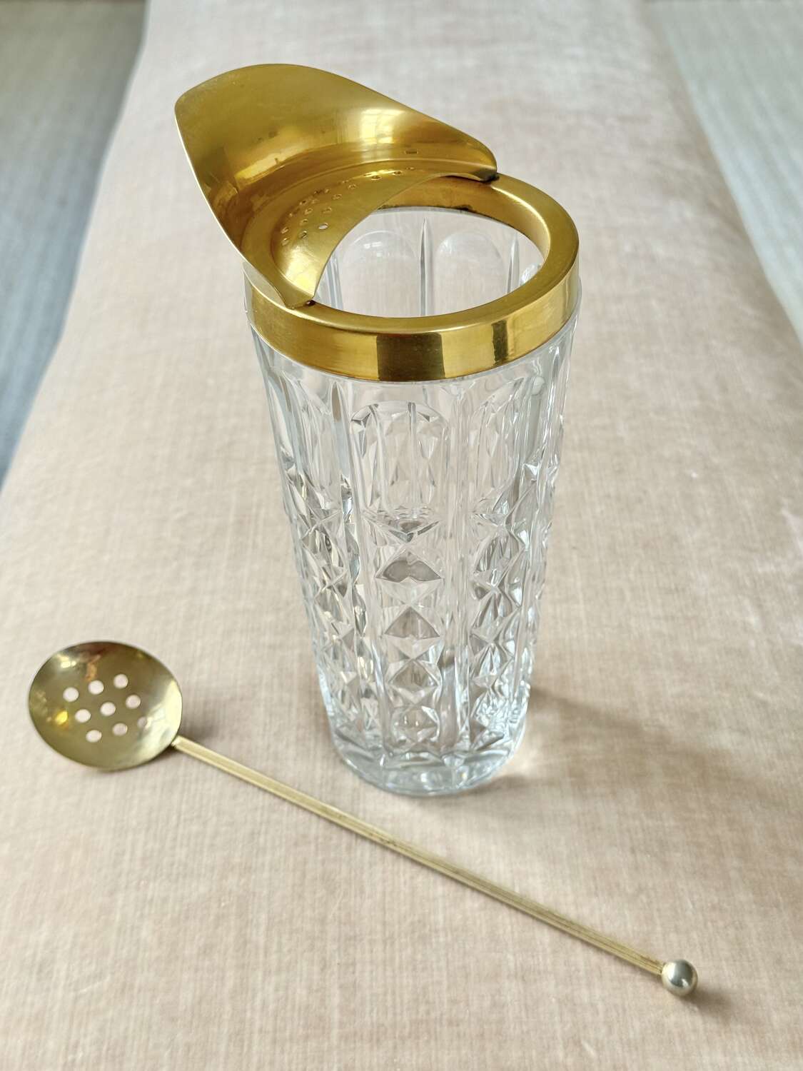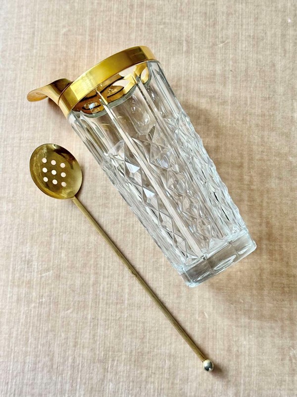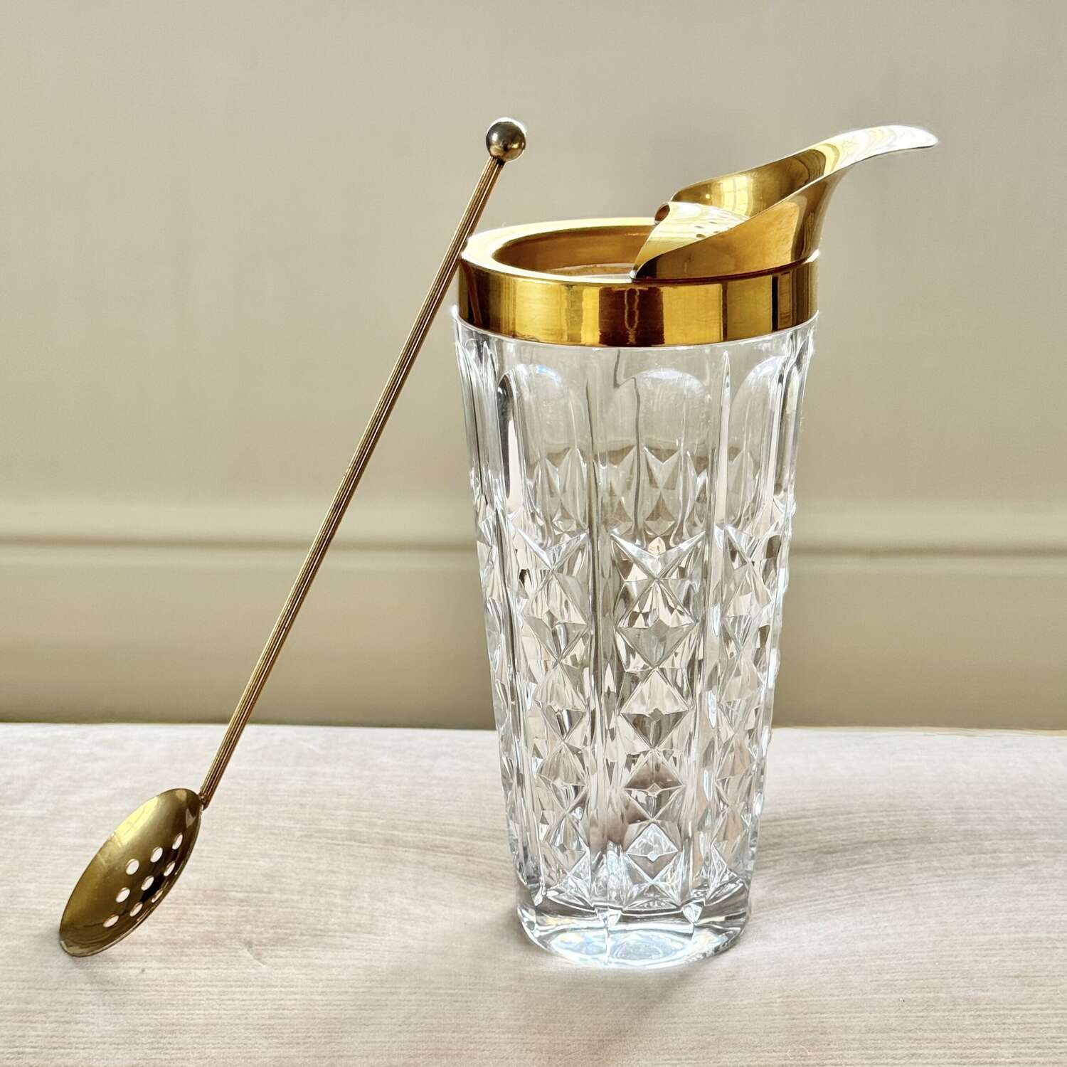 Gold Plated & Crystal Cocktail Mixing Jug By Val Saint Lambert C1950s