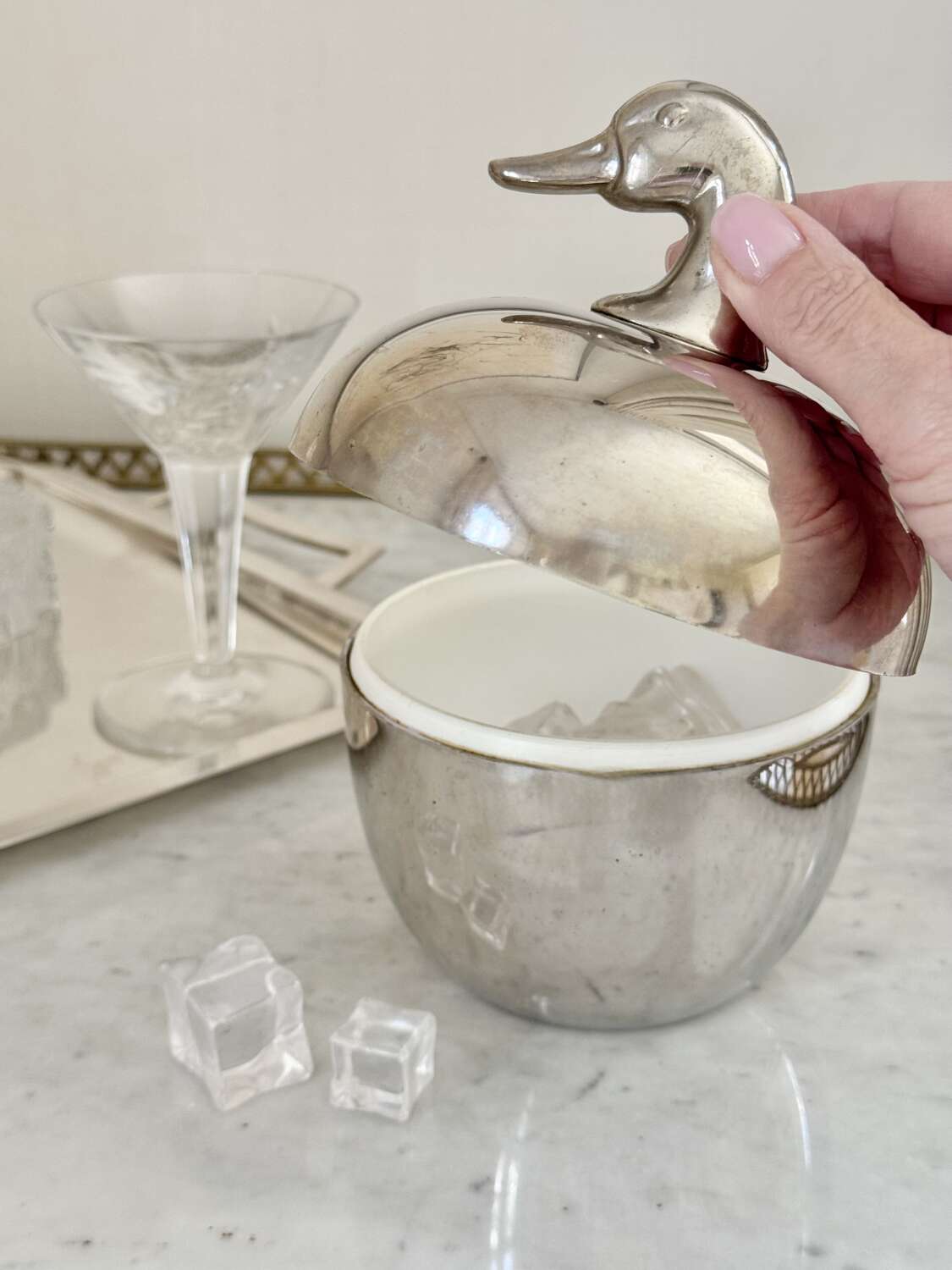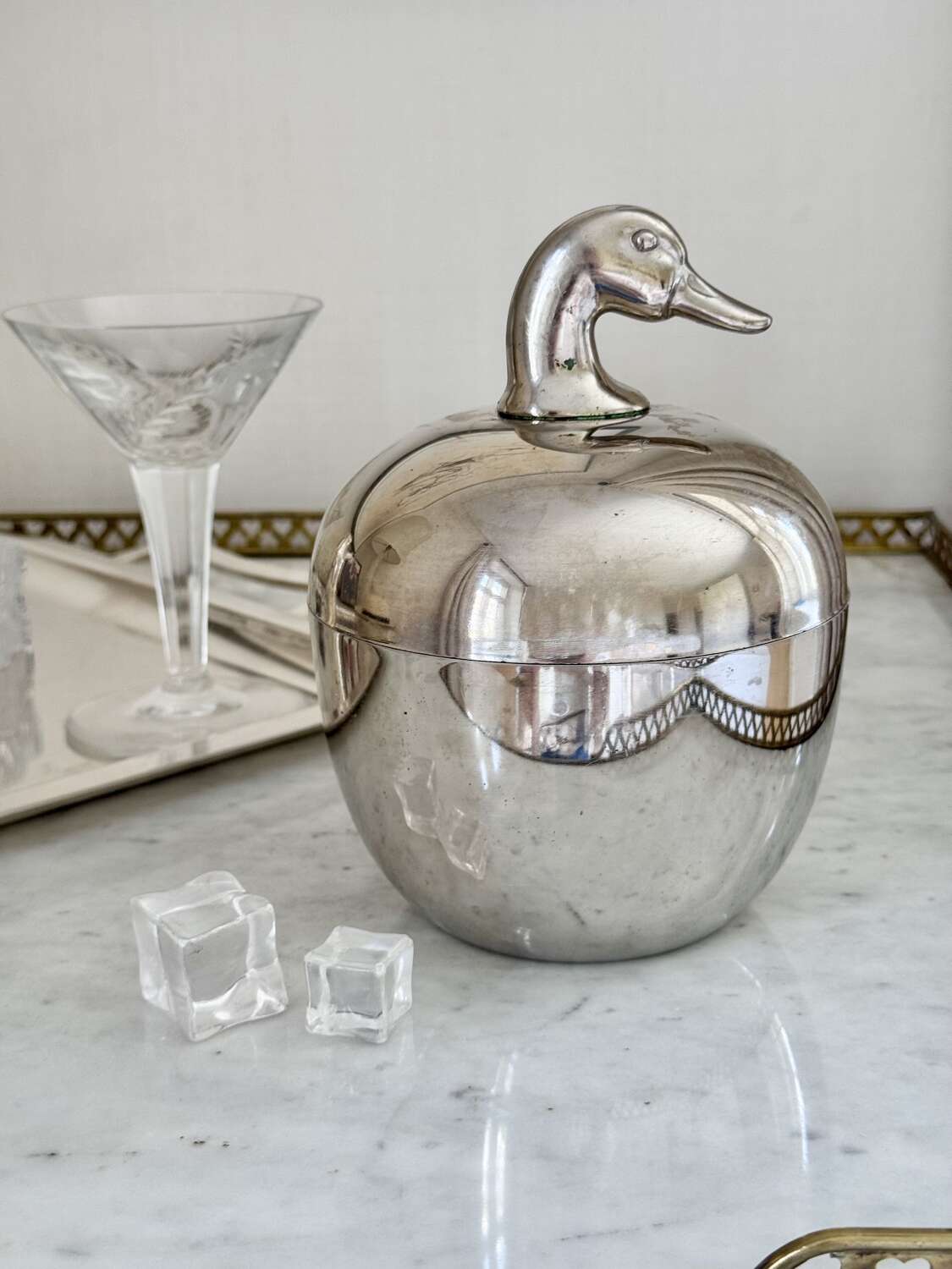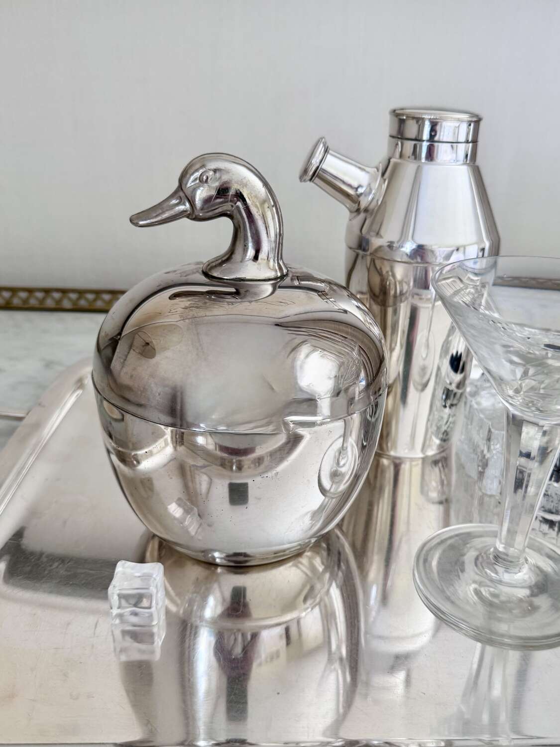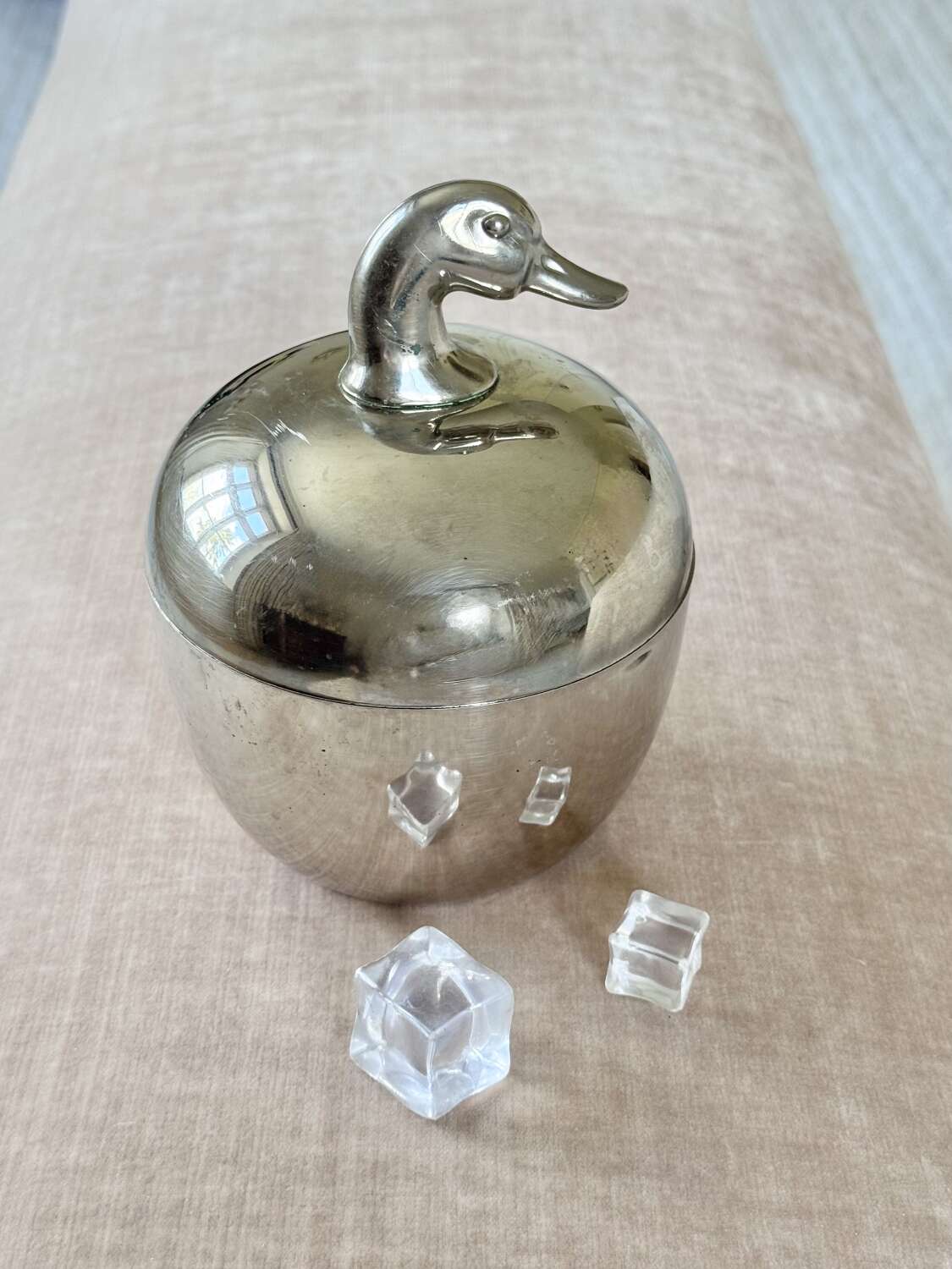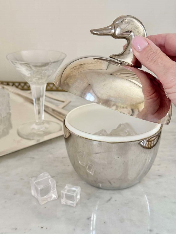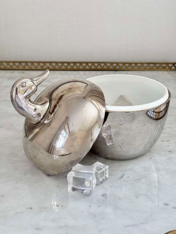 A neat and stylish 1970s silver colourice bucket with duck head top handle, by Hans Turnwald for Freddotherm, Switzerland. A fun addition to the home bar.