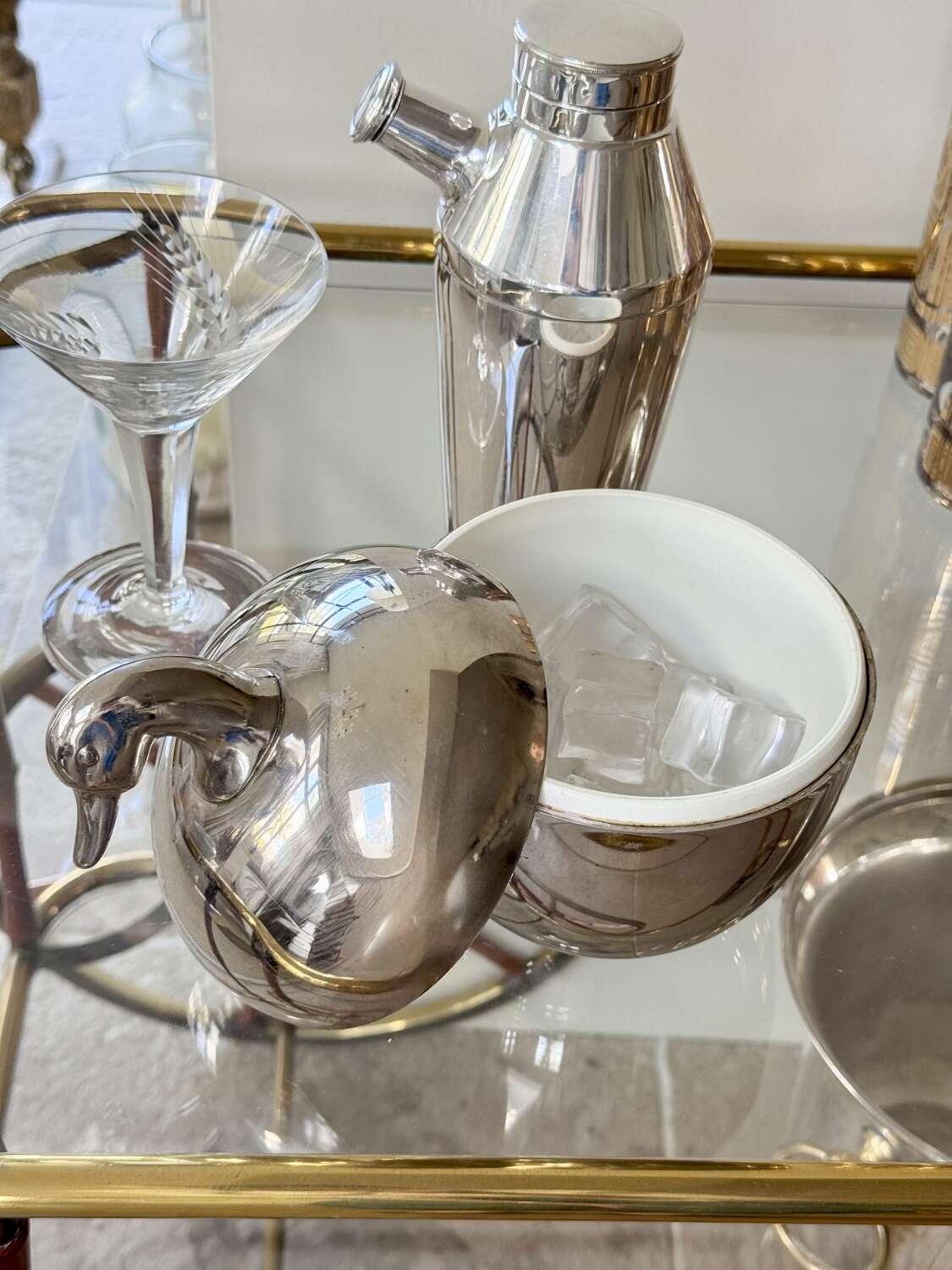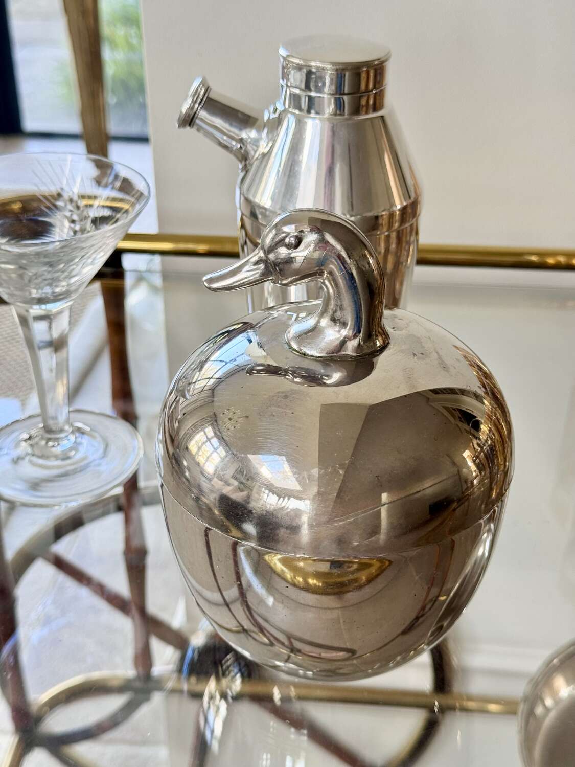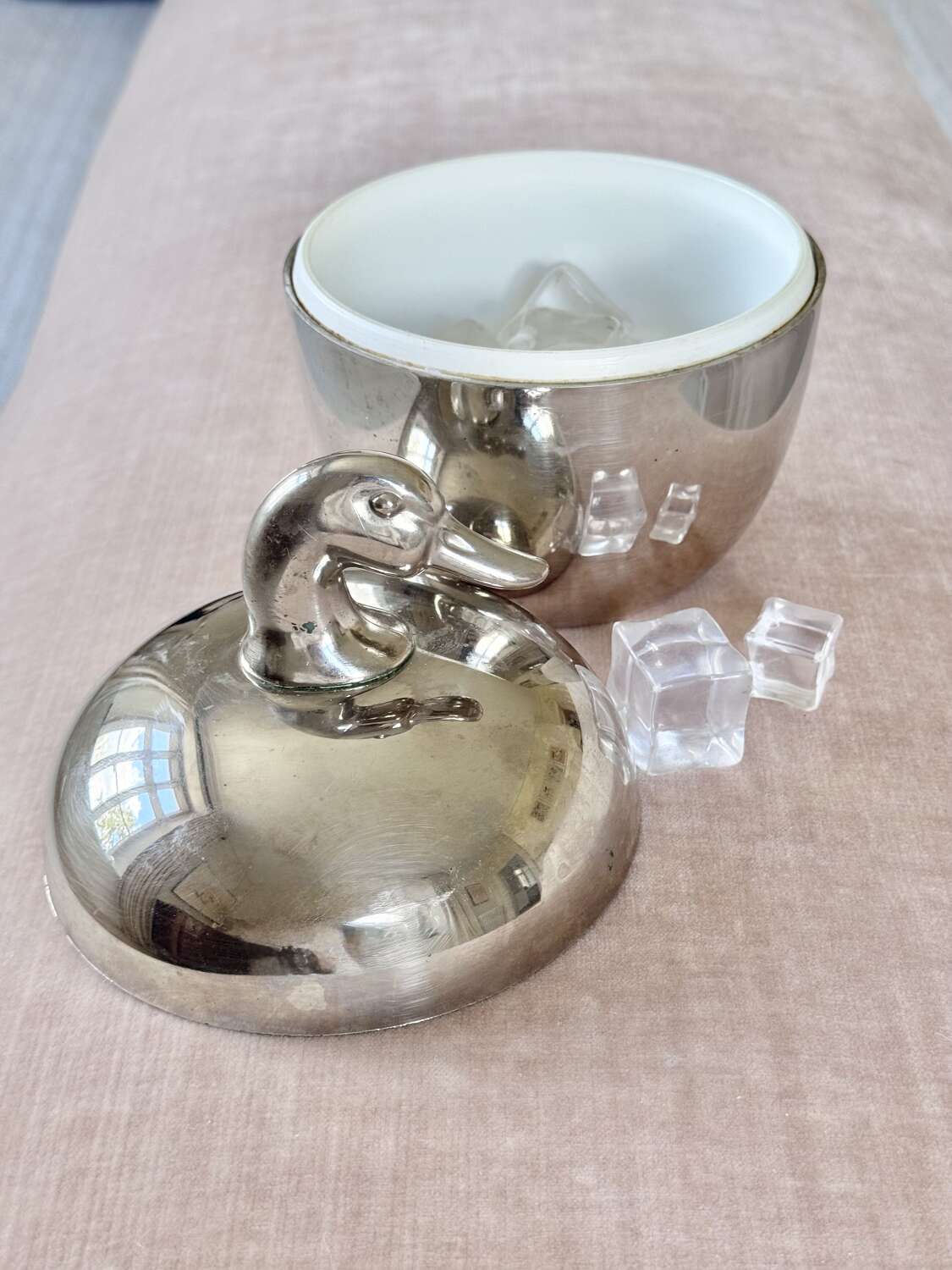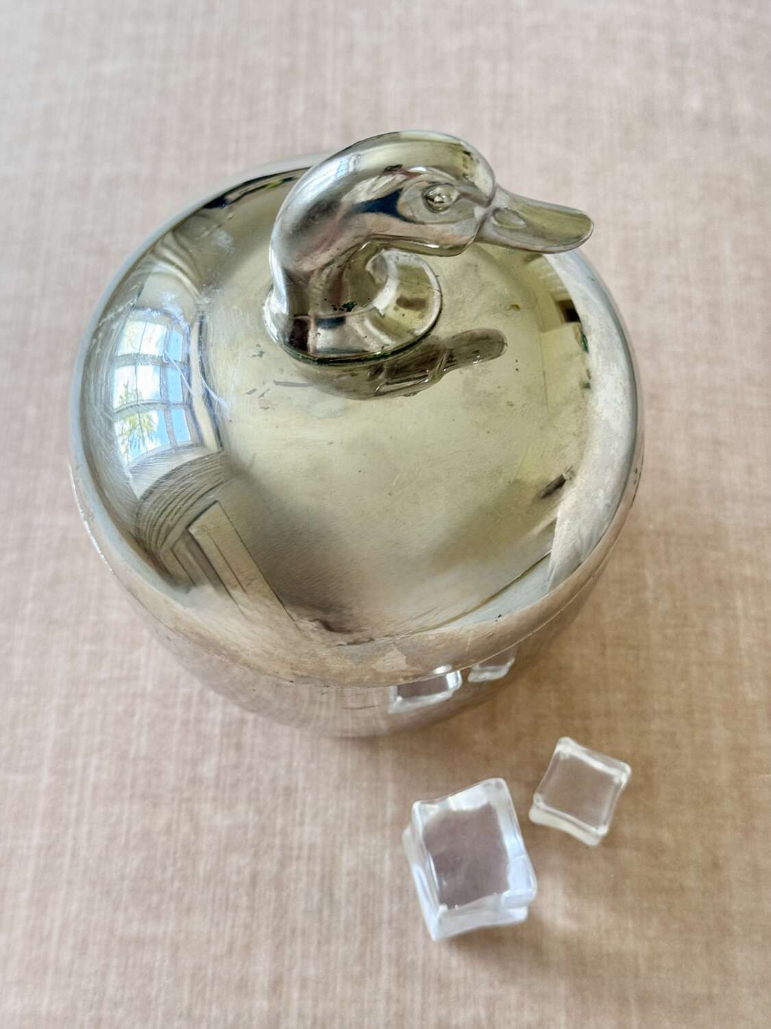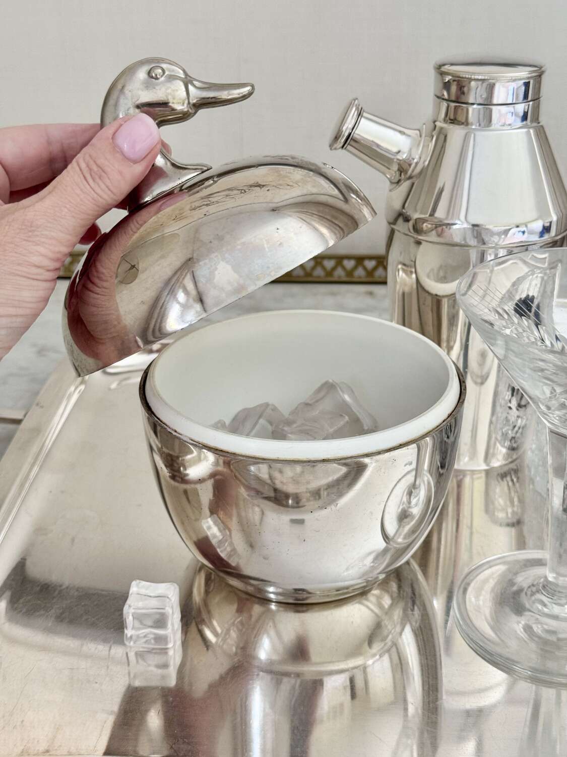 A neat and stylish 1970s silver colourice bucket with duck head top handle, by Hans Turnwald for Freddotherm, Switzerland. A fun addition to the home bar.