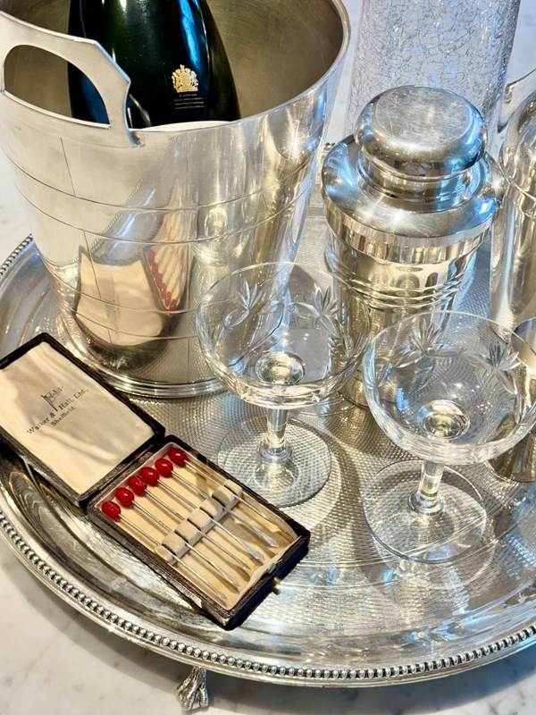 Large Silver Plated Coopered Wine Cooler Ice Bucket C1910